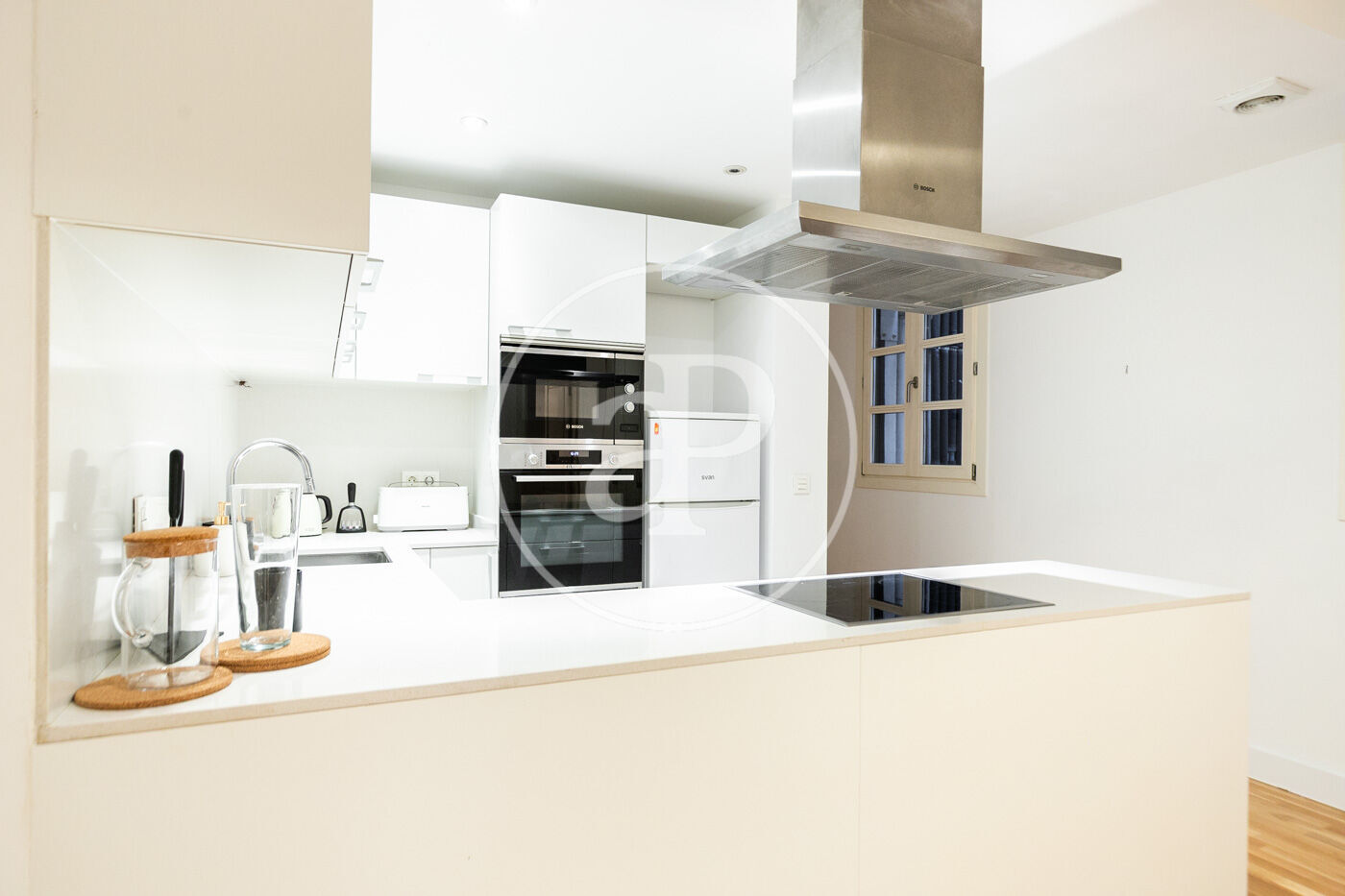 Aquest pis de 2 habitacions combina l’encant de l’arquitectura tradicional amb la comoditat dels acabats moderns. Els terres hidràulics restaurats i les bigues de fusta, juntament amb els sostres alts pintats de blanc, creen un ambient lluminós i ampli. La cuina equipada amb electrodomèstics Bosch i la ceràmica blanca dels banys aporten un toc contemporani. La distribució del pis aprofita al màxim l’espai, creant una llar perfecta per gaudir de la vida a Barcelona amb totes les comoditats modernes.