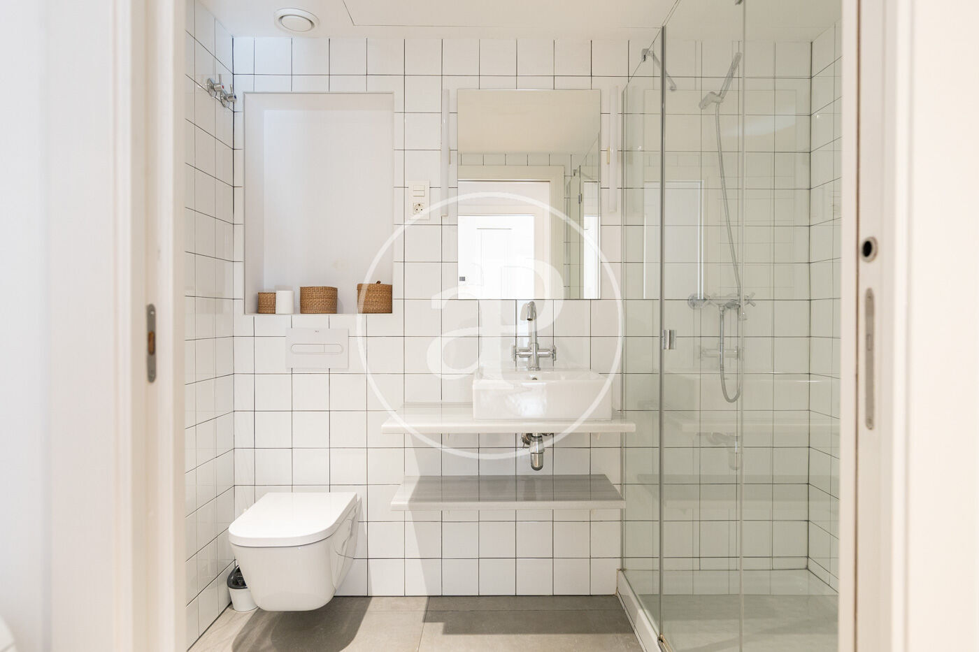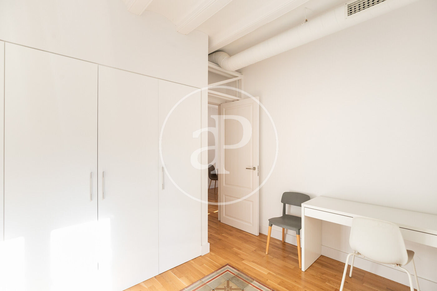 Amb 2 habitacions i un bany, aquest pis destaca pels seus acabats d’alta gamma. La reforma ha tingut cura de cada detall, mantenint l’essència de l’espai original mentre s’hi introdueix un estil contemporani. Els terres hidràulics restaurats i les bigues de fusta vistes aporten una atmosfera càlida i acollidora, mentre que la cuina moderna equipada amb electrodomèstics Bosch i la ceràmica dels banys de disseny proporcionen un confort excepcional. Els sostres alts, pintats de blanc, juntament amb les parets lluminoses, fan que els espais siguin amplis i agradables.