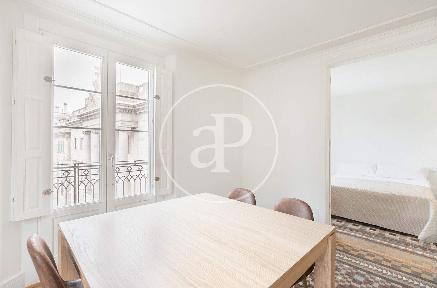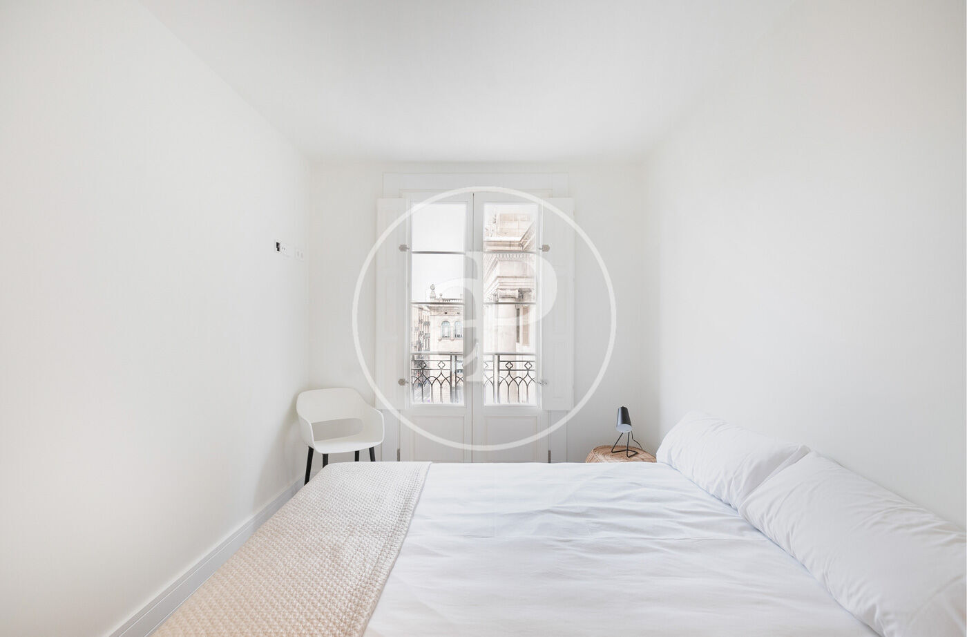 En una preciosa finca règia amb ascensor, trobem aquest pis recentment reformat de 102 m², distribuït de manera molt funcional, al barri Gòtic, a pocs passos de la Catedral de Barcelona, La Rambla i la Via Laietana.