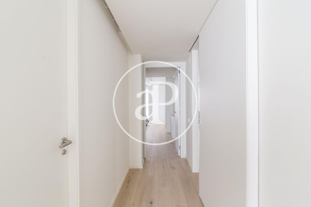 El pis de lliurament totalment equipat i moblat i està compost per un ampli saló de 26m² i cuina totalment equipada amb sortida a una terrassa i dues habitacions, una doble en suite amb vestidor i balcó i una altra doble amb armaris i un segon bany complet. Sòls de parquet i equipat amb aire condicionat. Té un traster i una plaça de pàrquing inclosos en el preu. Es troba disponible immediatament per a lloguer de llarga temporada.