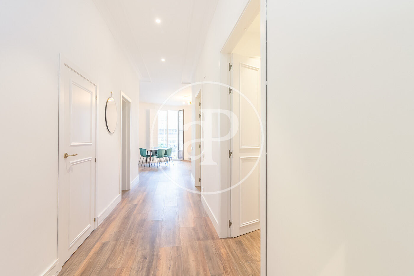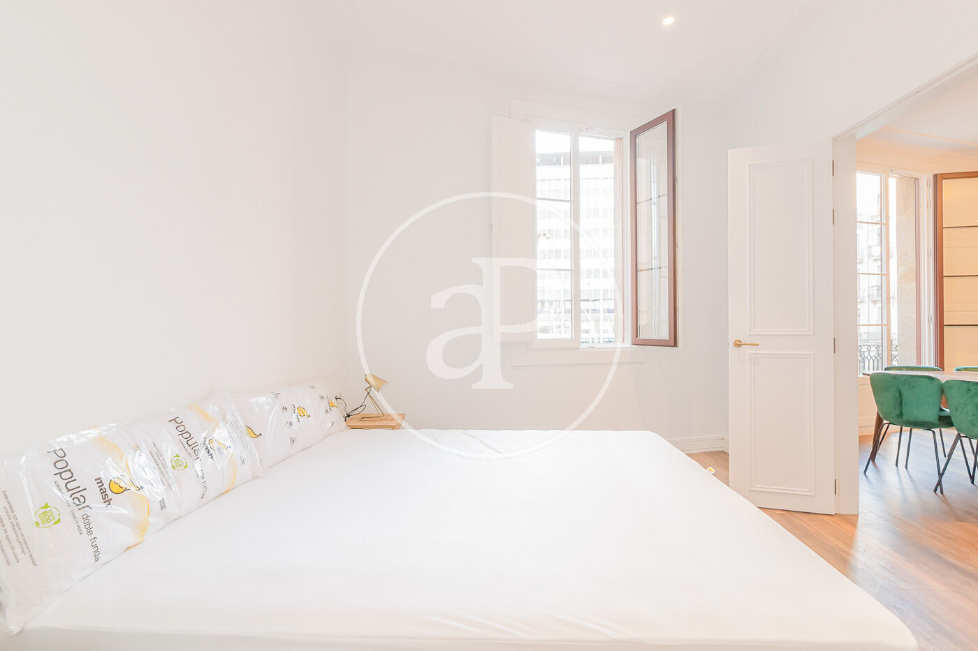Amb 150 m², l’habitatge ofereix una distribució funcional i espais amplis. La zona de dia compta amb un lluminós saló-menjador amb balcó i una cuina americana equipada amb electrodomèstics d’alta gamma.