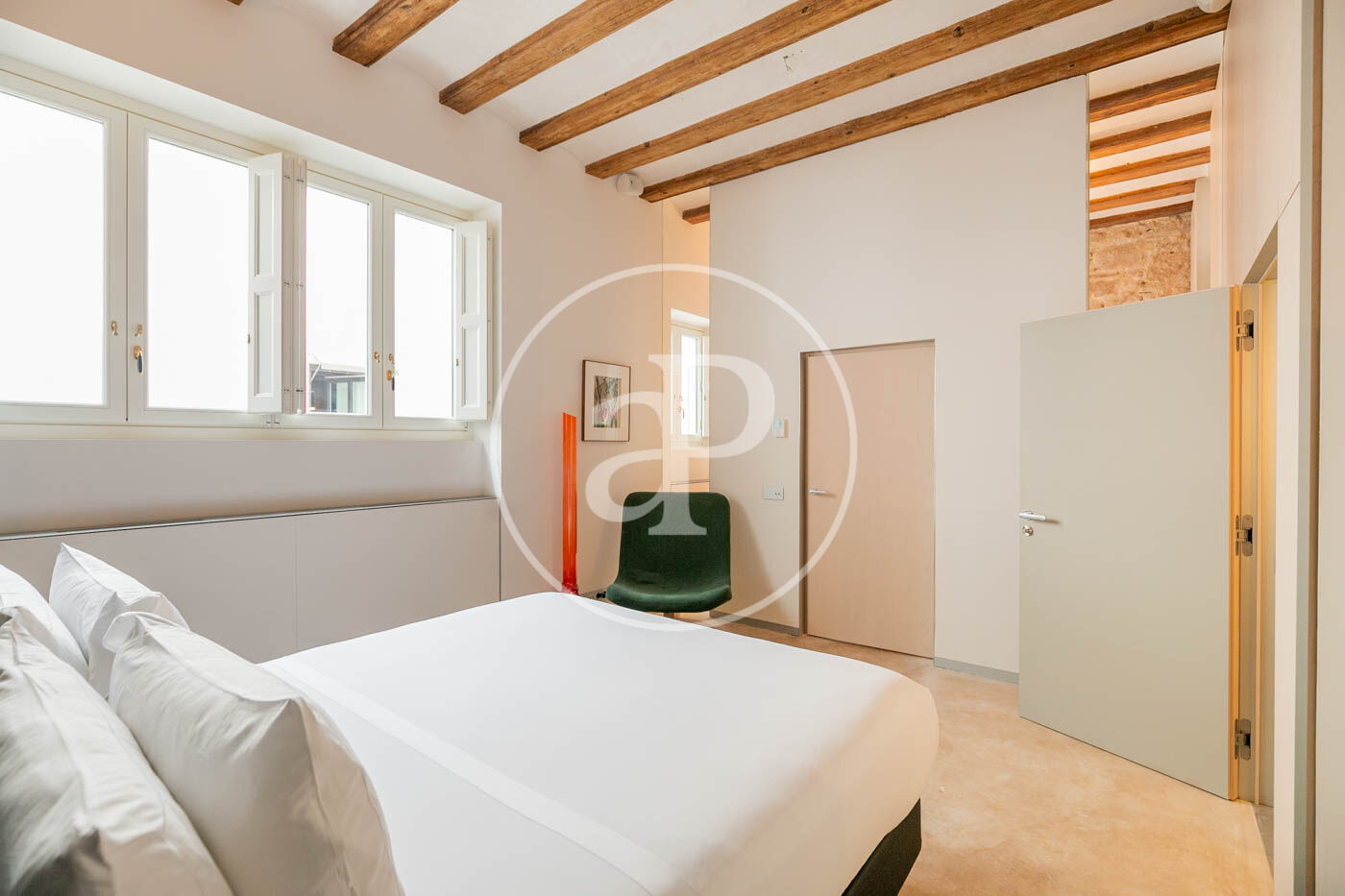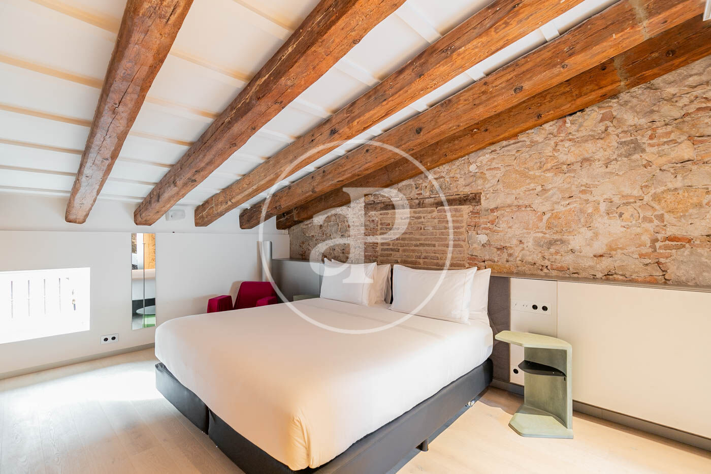 L’edifici ha estat rehabilitat de manera integral, fet que permet oferir una experiència única que fusiona el millor de la història i la modernitat. Els apartaments, disponibles en configuracions de dues i tres habitacions, destaquen per la seva amplitud i disposen d’una terrassa privada exclusiva per a cadascun, proporcionant un espai únic per gaudir de l’aire lliure en ple cor de la ciutat.