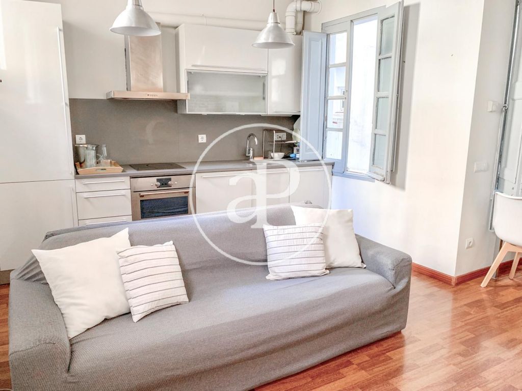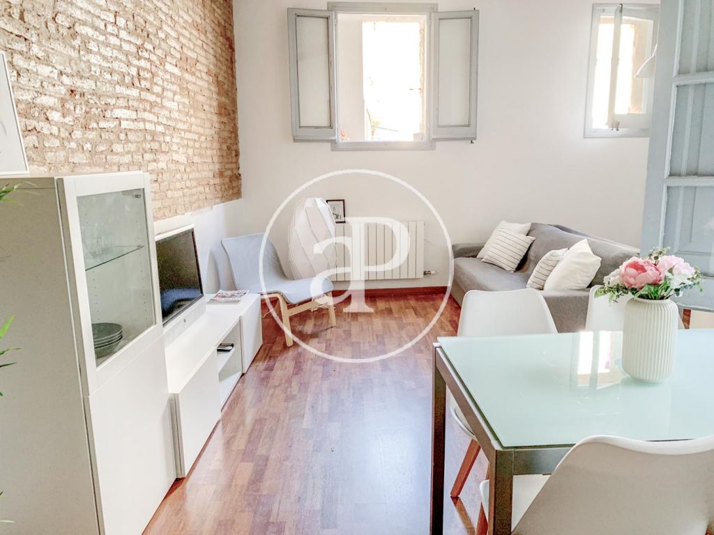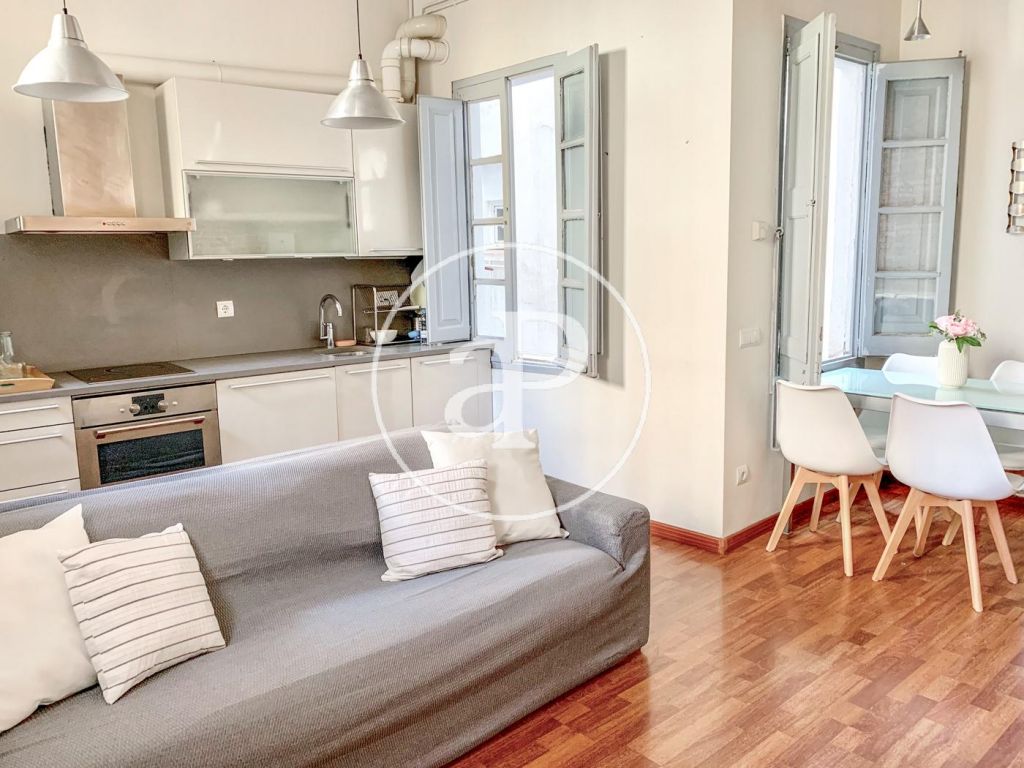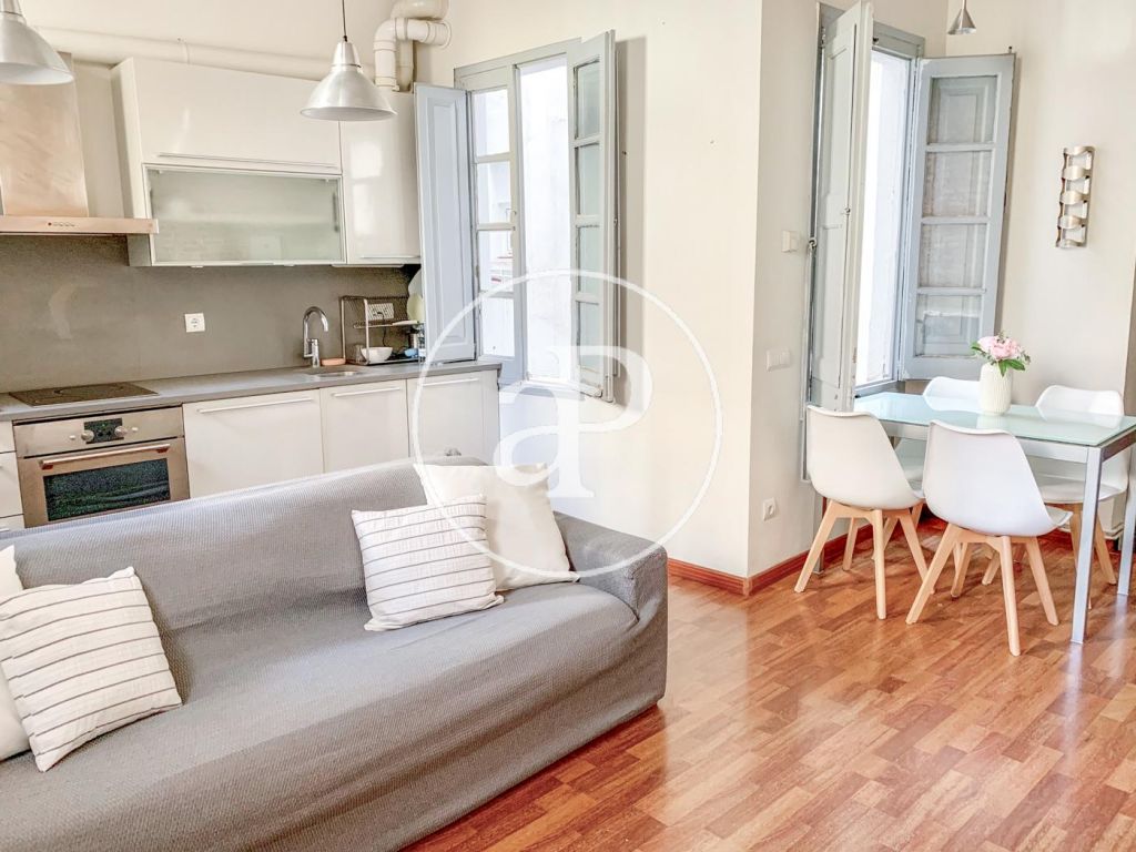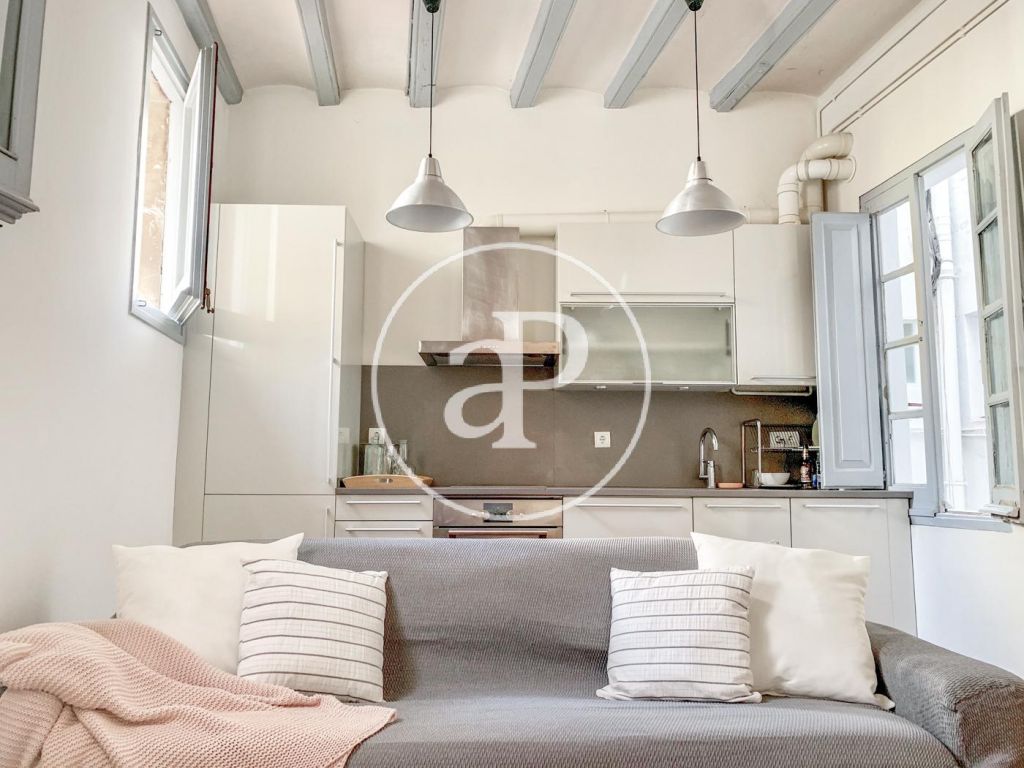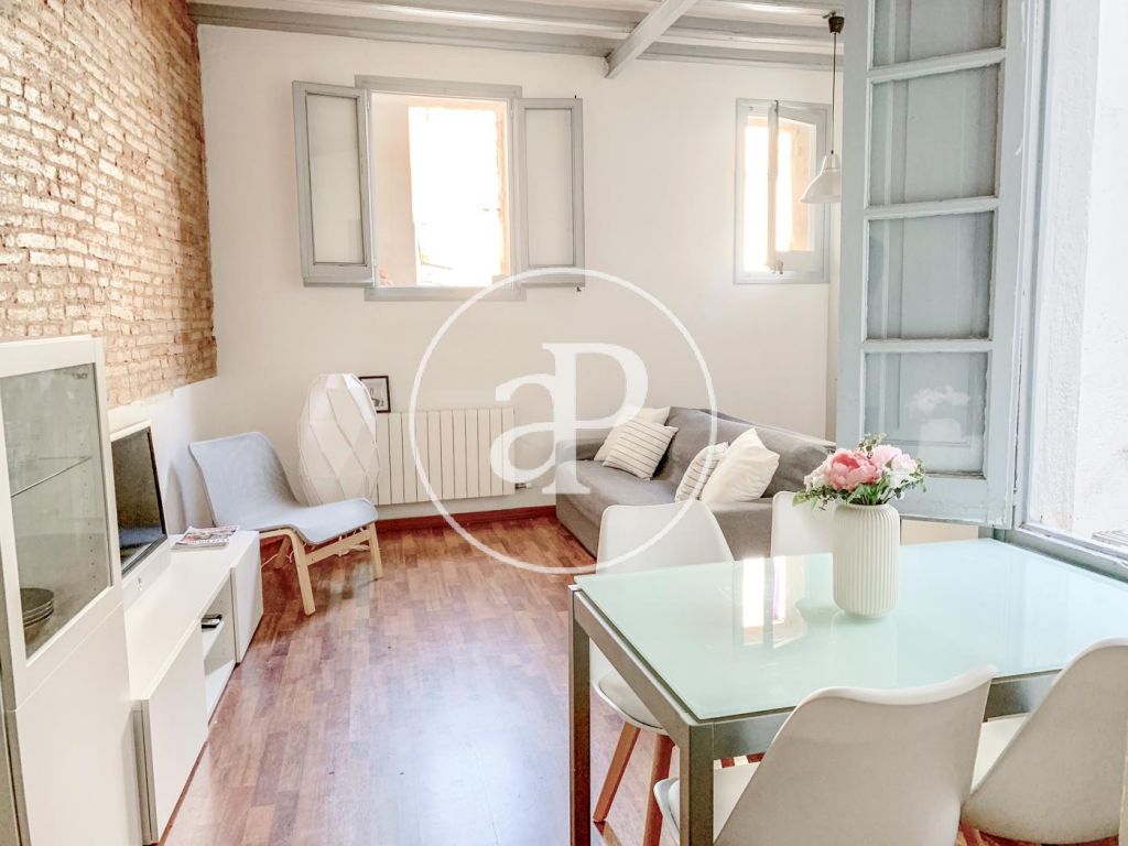 Bonic pis reformat al cor de Ciutat Vella, al barri del Gòtic, molt a prop del Mercat de la Boqueria i de Les Rambles, però al mateix temps en un carrer molt poc transitat i silenciós que assegura una estada tranquil•la. El pis que està totalment moblat i per entrar a viure, disposa de tots els electrodomèstics, així com els estris de cuina, parament, vaixella i coberteria. Consta de saló-menjador amb cuina americana, dos dormitoris dobles amb un bany a compartir, i també una terrassa comunitària molt agradable. Els dos dormitoris estan ben aïllats del saló-menjador, de manera que permet una bona convivència. El pis s'ubica en un segon real, sense ascensor.