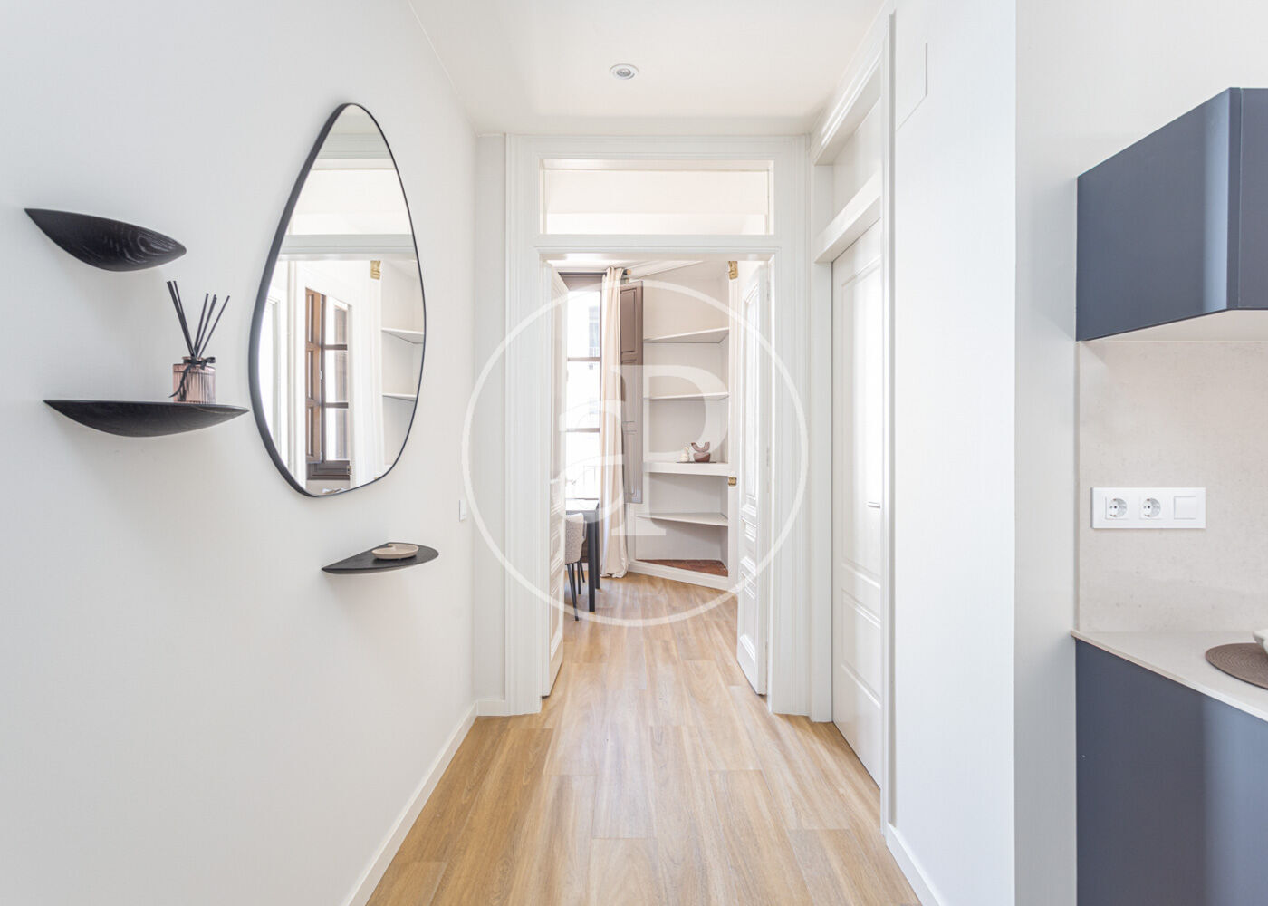 Situat en una de les zones més icòniques de Barcelona, sobre la històrica Via Laietana, aquest elegant pis de 80 m² ha estat completament renovat per oferir un estil de vida contemporani i sofisticat, sense perdre l’encant característic del barri Gòtic. Ubicat en una finca del 1840 totalment rehabilitada, l’immoble destaca per una reforma minuciosa que fusiona a la perfecció l’elegància amb la practicitat. L’habitatge ofereix dos dormitoris dobles, un d’ells amb bany en suite i un ampli vestidor, assegurant comoditat i privacitat. A més, compta amb un segon bany complet, de disseny modern i acabats d’alta qualitat. La cuina, oberta al saló, es presenta com un ambient lluminós i acollidor, equipada amb electrodomèstics d’alta gamma i mobiliari de disseny, ideal per a aquells que gaudeixen de la cuina i del bon gust pels detalls. El pis disposa d’aire condicionat per conductes, garantint una temperatura òptima durant tot l’any. La seva ubicació és excepcional: a pocs metres de la Catedral de Barcelona i molt a prop de la Plaça Catalunya, amb un accés excel·lent al transport públic i als principals atractius del centre històric. Una propietat única que combina història, disseny i confort en un dels enclavaments més desitjats de la ciutat. Existeix la possibilitat d’adquirir-lo completament moblat, fet que permet instal·lar-s’hi i començar a gaudir de la llar des del primer dia.