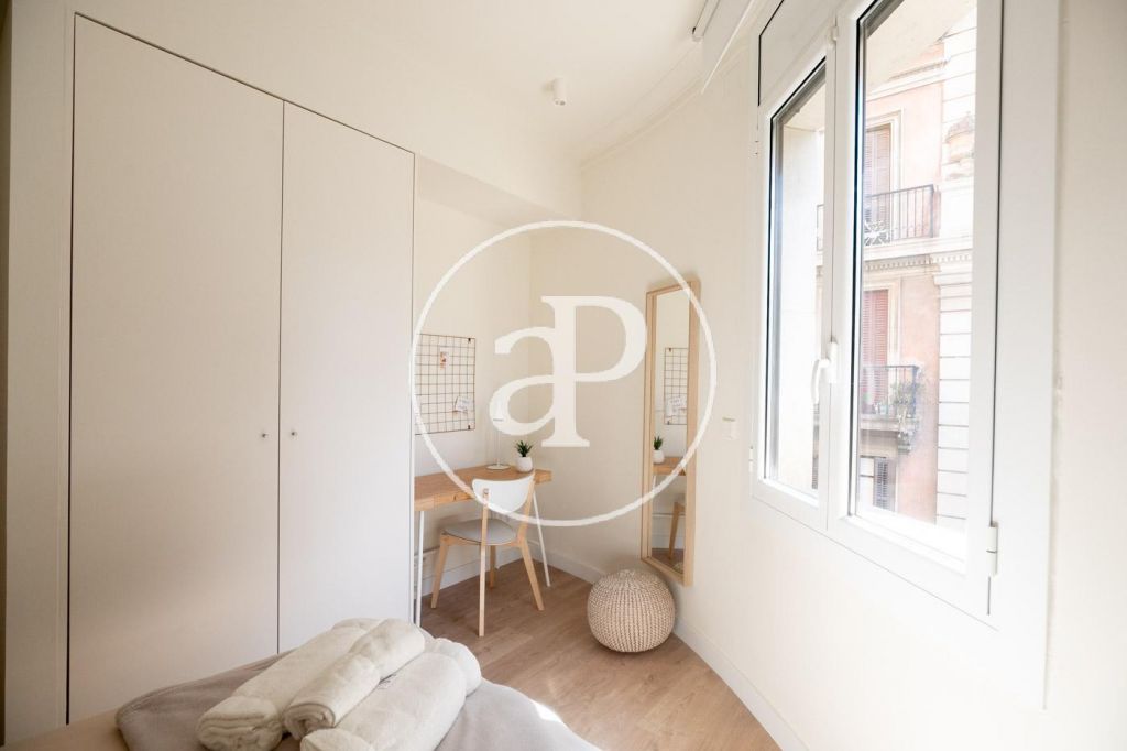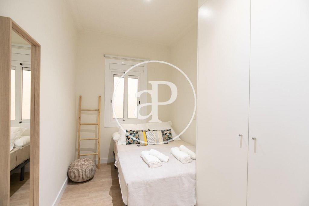 En Plaça de la Vila de Madrid, envoltat de comerços de barri, botigues, serveis, i a un pas de tots els mitjans de transport públic, trobem aquest excel·lent pis, totalment reformat i moblat de manera molt funcional.