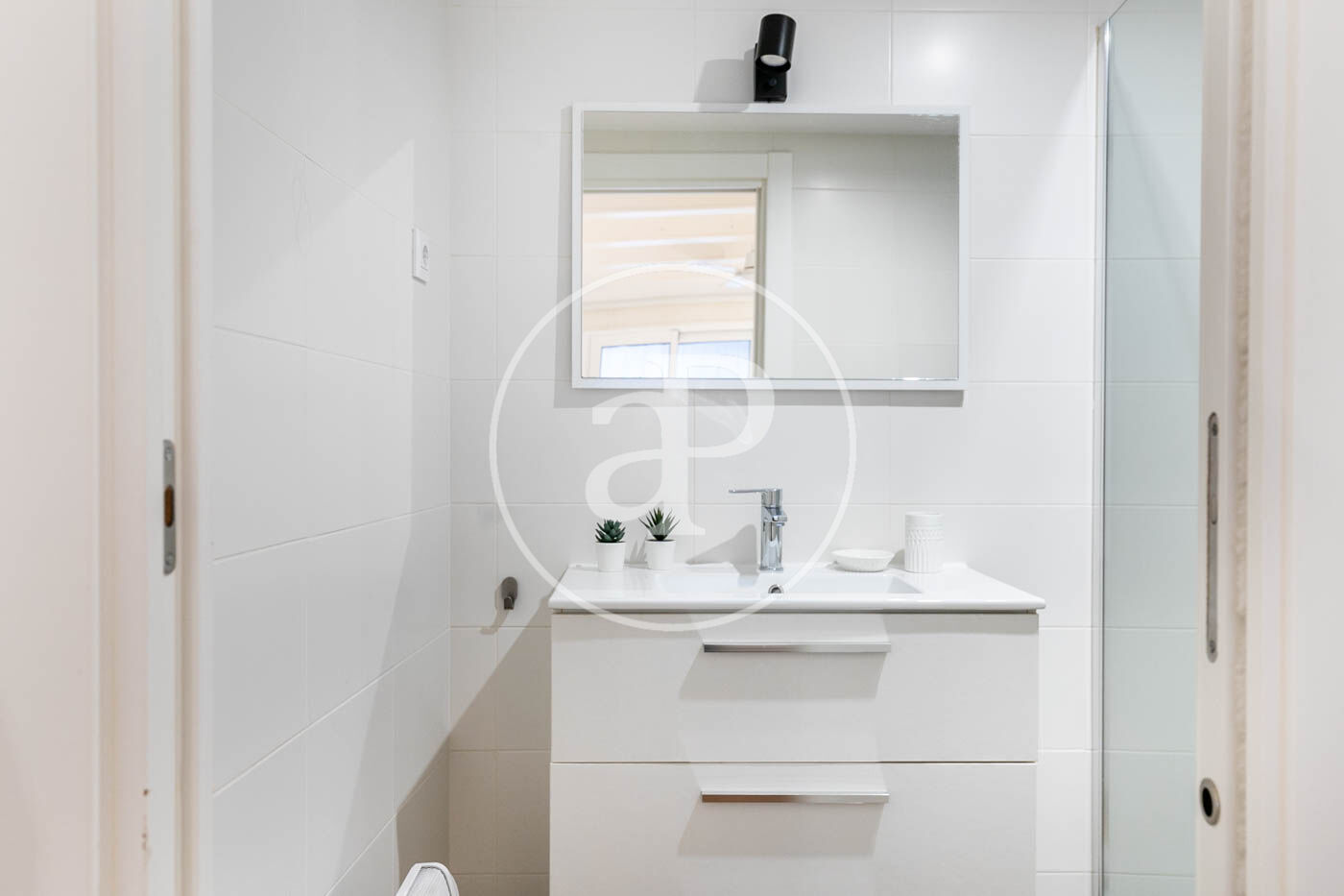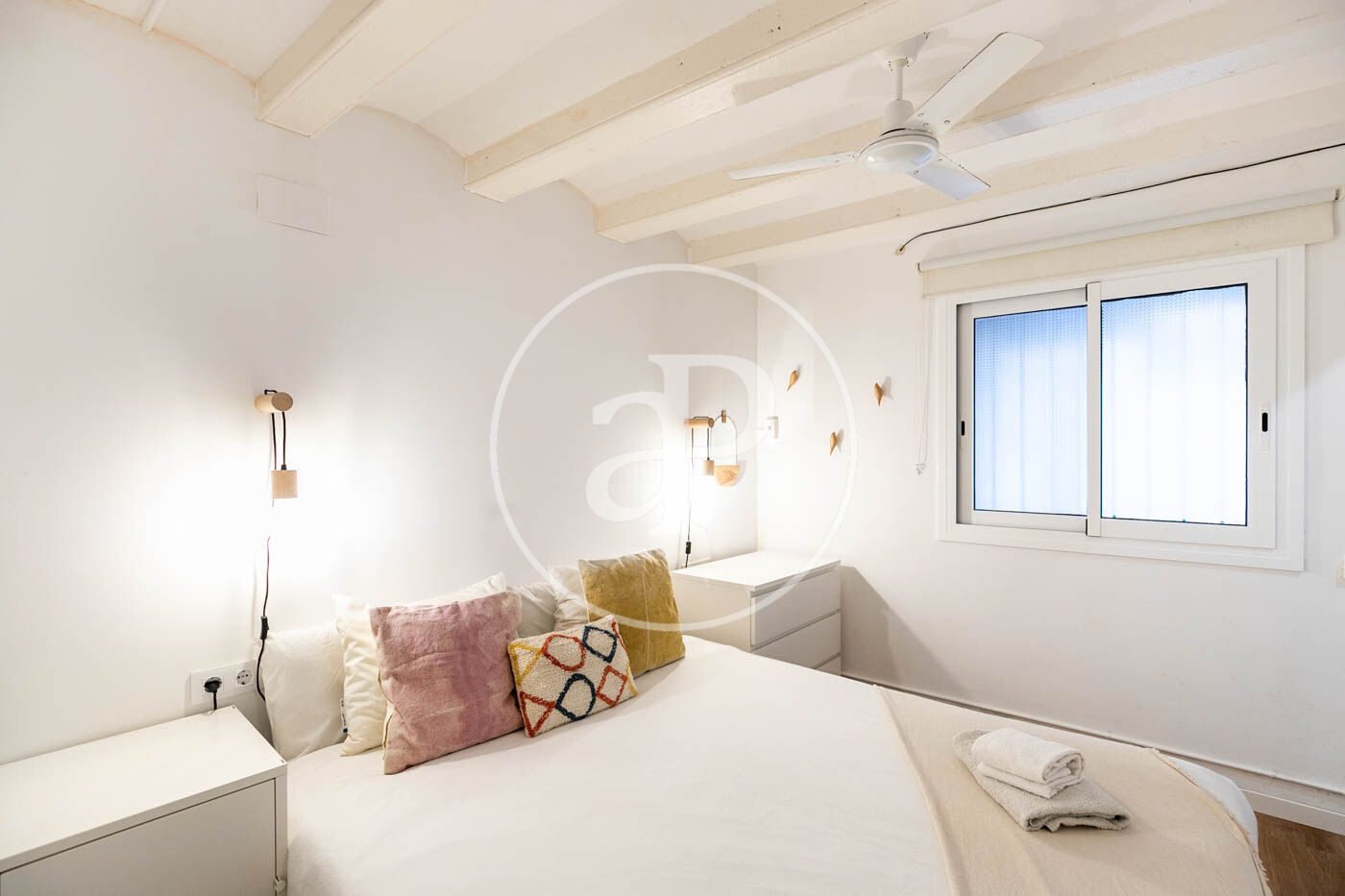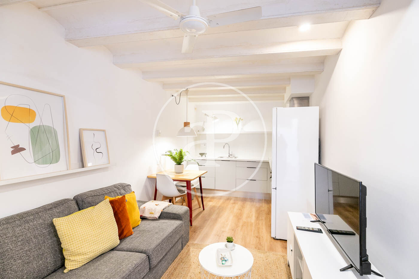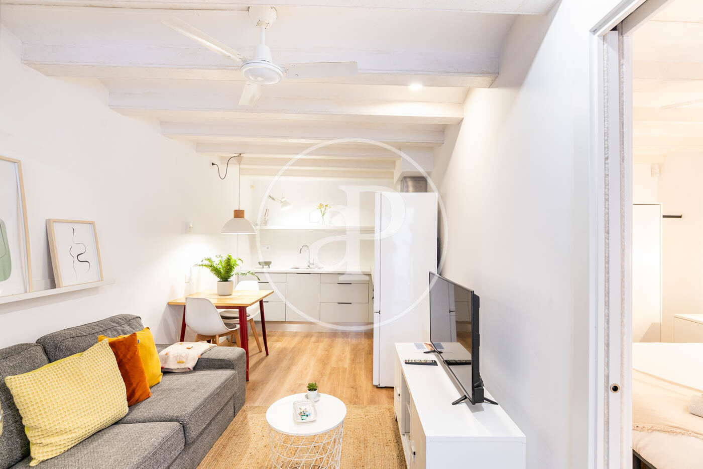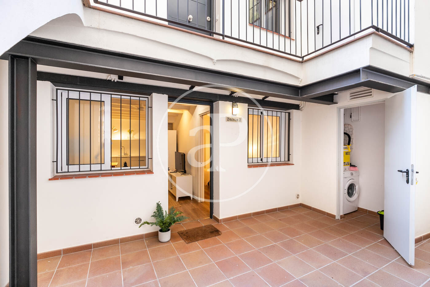 Ubicado a pocos pasos del renombrado Mercat de las Flors y del Institut del Teatre de Barcelona, en la parte más tranquila del histórico barrio del Poble Sec, en una finca clásica en muy buenas condiciones SIN ASCENSOR, encontramos este encantador piso, reformado y completamente amueblado, con una terraza-patio de 11m2.
