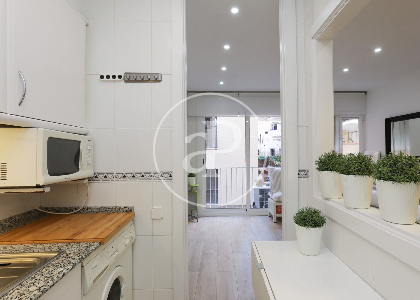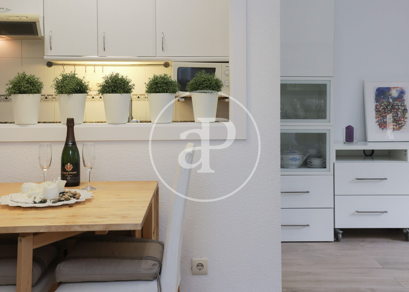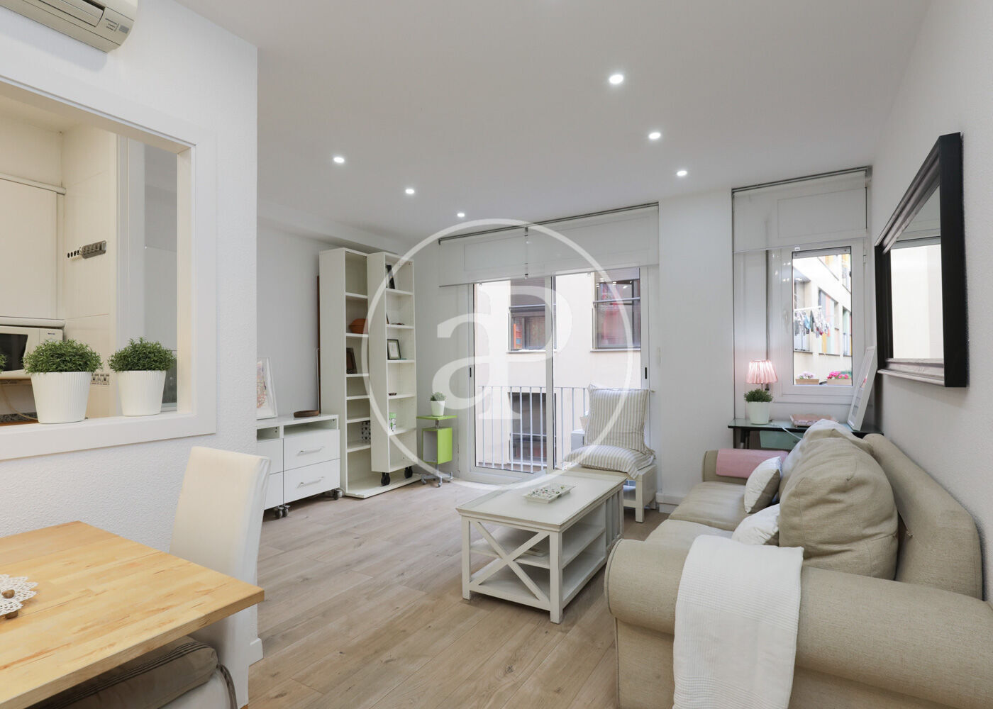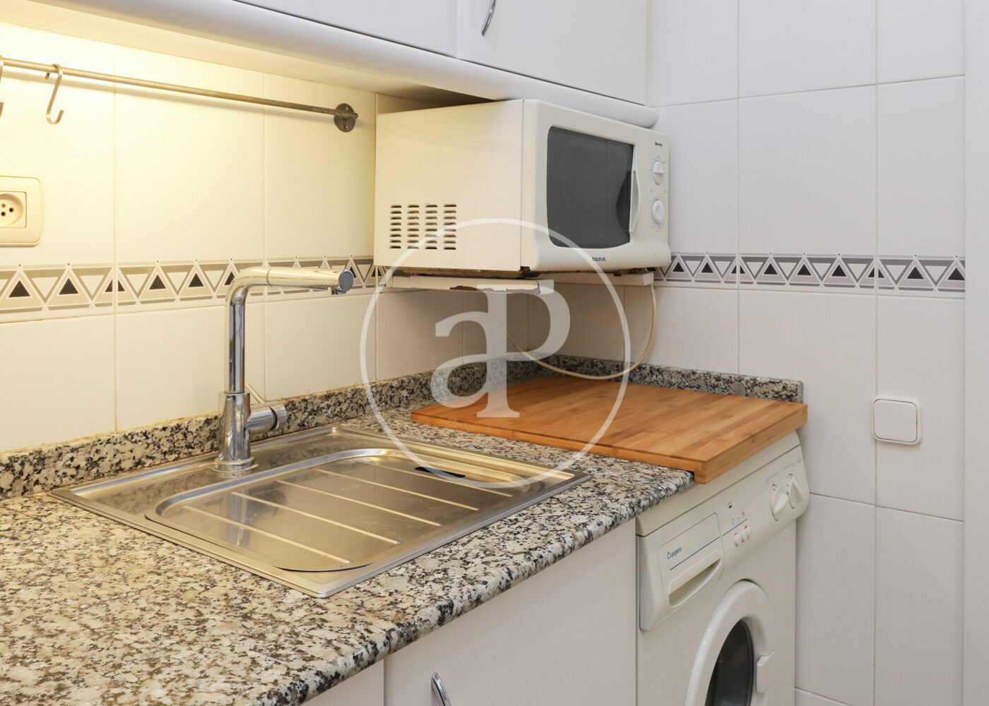 Situat al barri del Poble Sec, a pocs metres de l'Avinguda Paral·lel, envoltat de restaurants, comerços, transport públic i molt ben connectat amb els accessos de la ciutat, hi trobem aquest pis moblat totalment equipat de $58 text{ m}^2$.