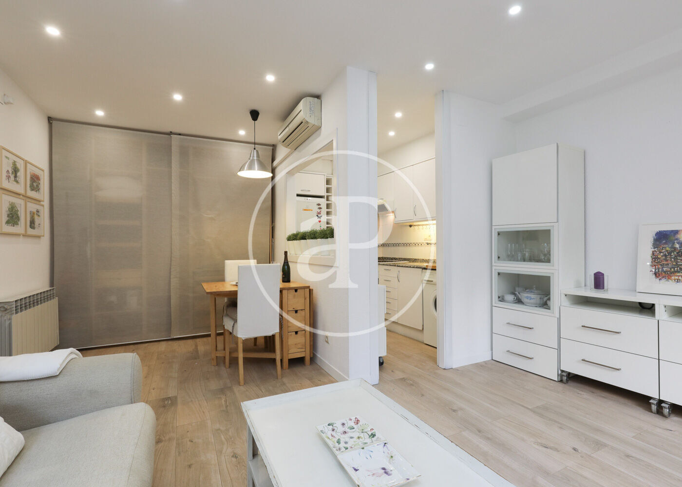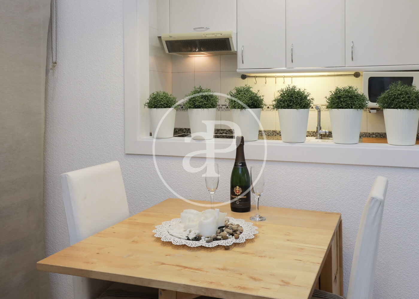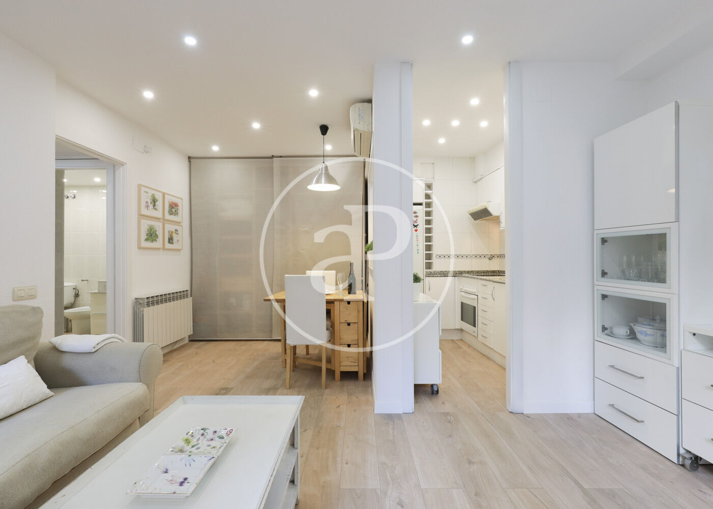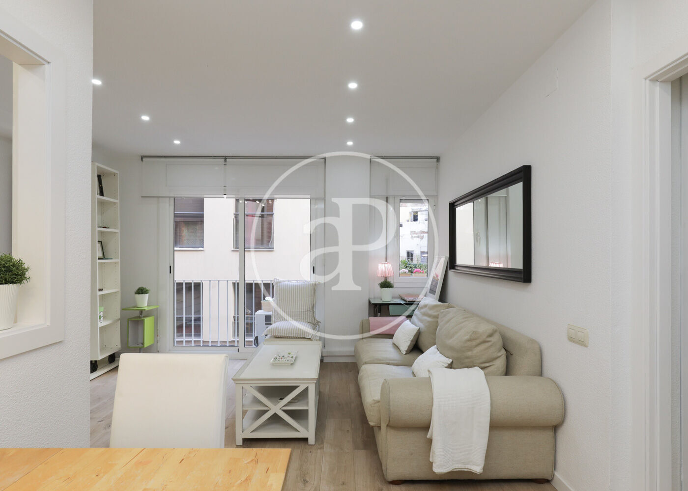Situat al barri del Poble Sec, a pocs metres de l'Avinguda Paral·lel, envoltat de restaurants, comerços, transport públic i molt ben connectat amb els accessos de la ciutat, hi trobem aquest pis moblat totalment equipat de $58 text{ m}^2$.