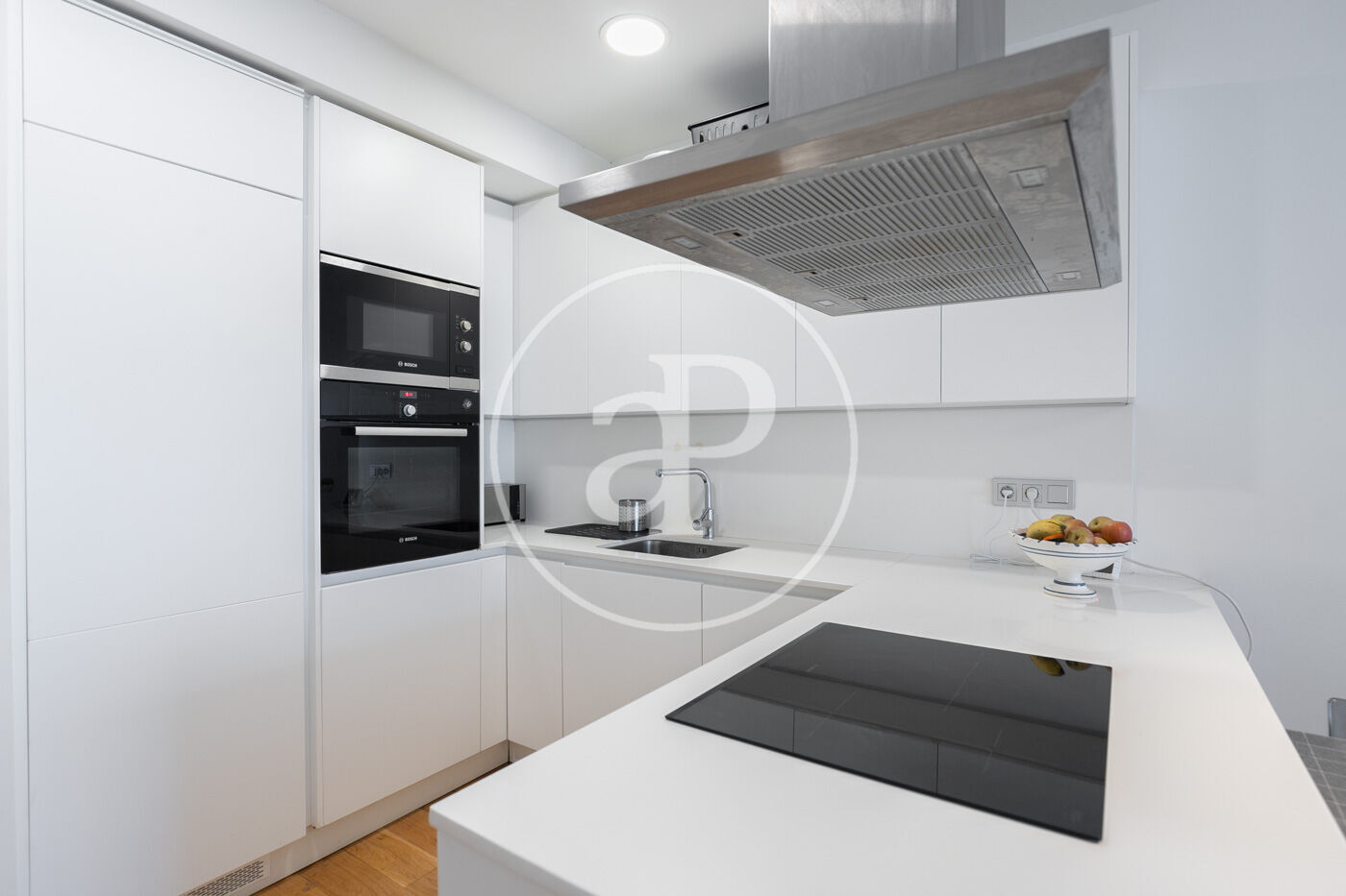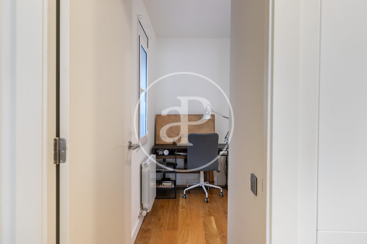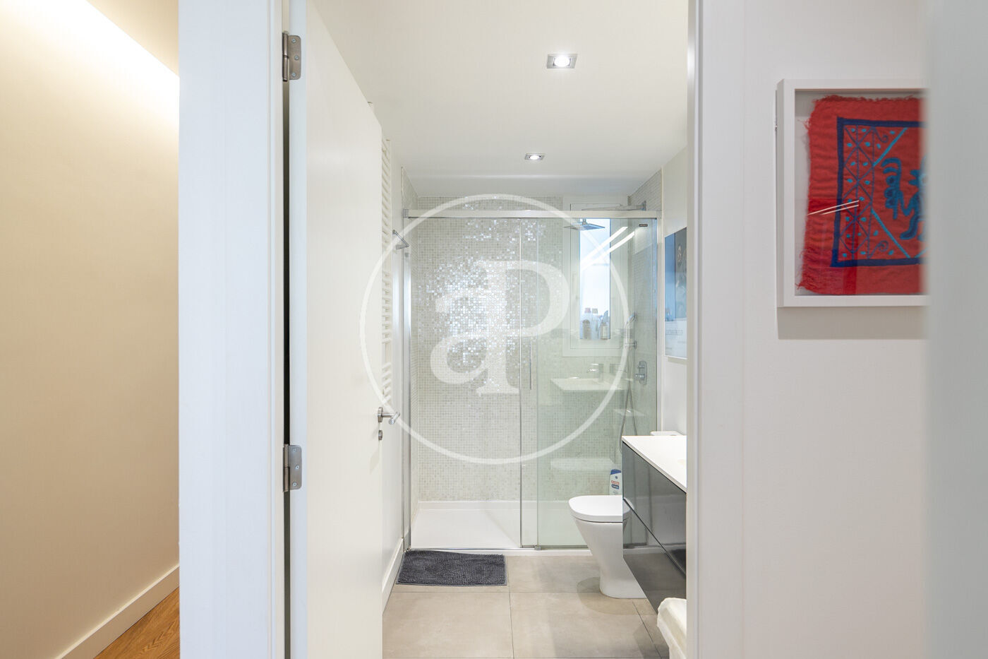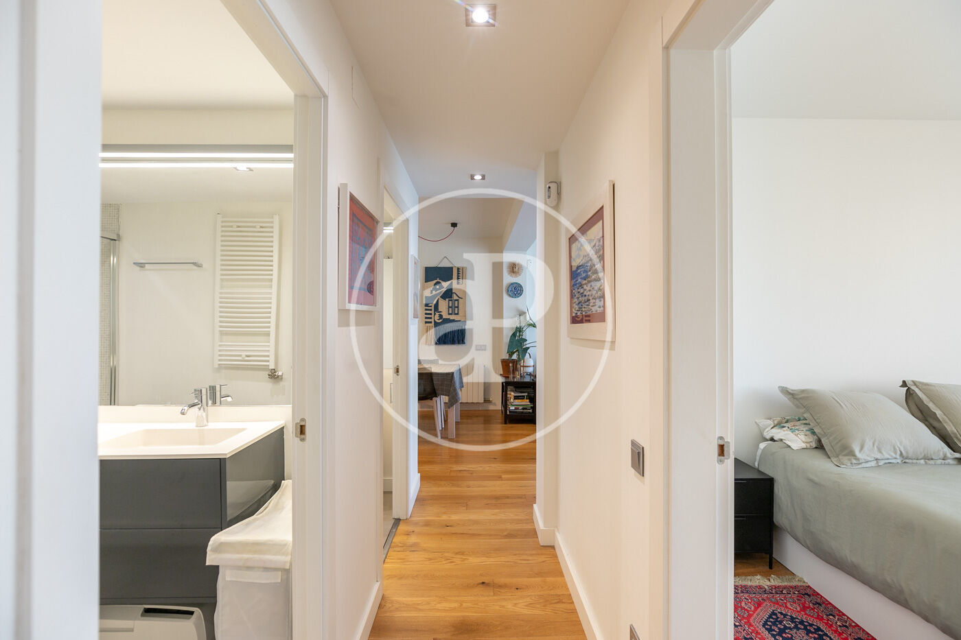 L’habitatge consta d’un lluminós saló-menjador amb sortida a un espaiós balcó amb vistes a Montjuïc, amb cuina oberta equipada amb tots els electrodomèstics.