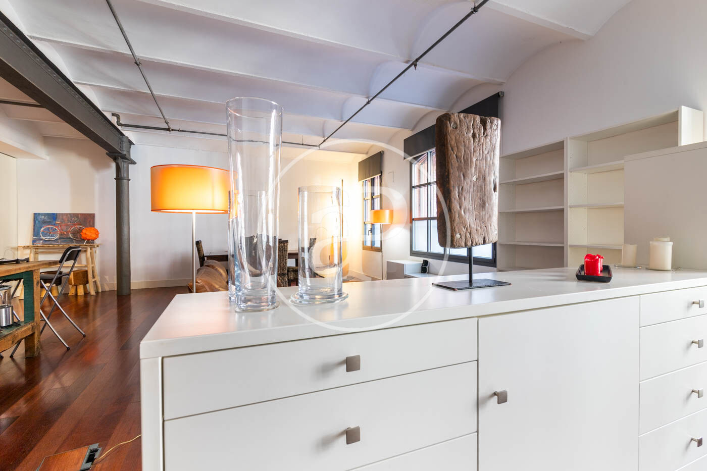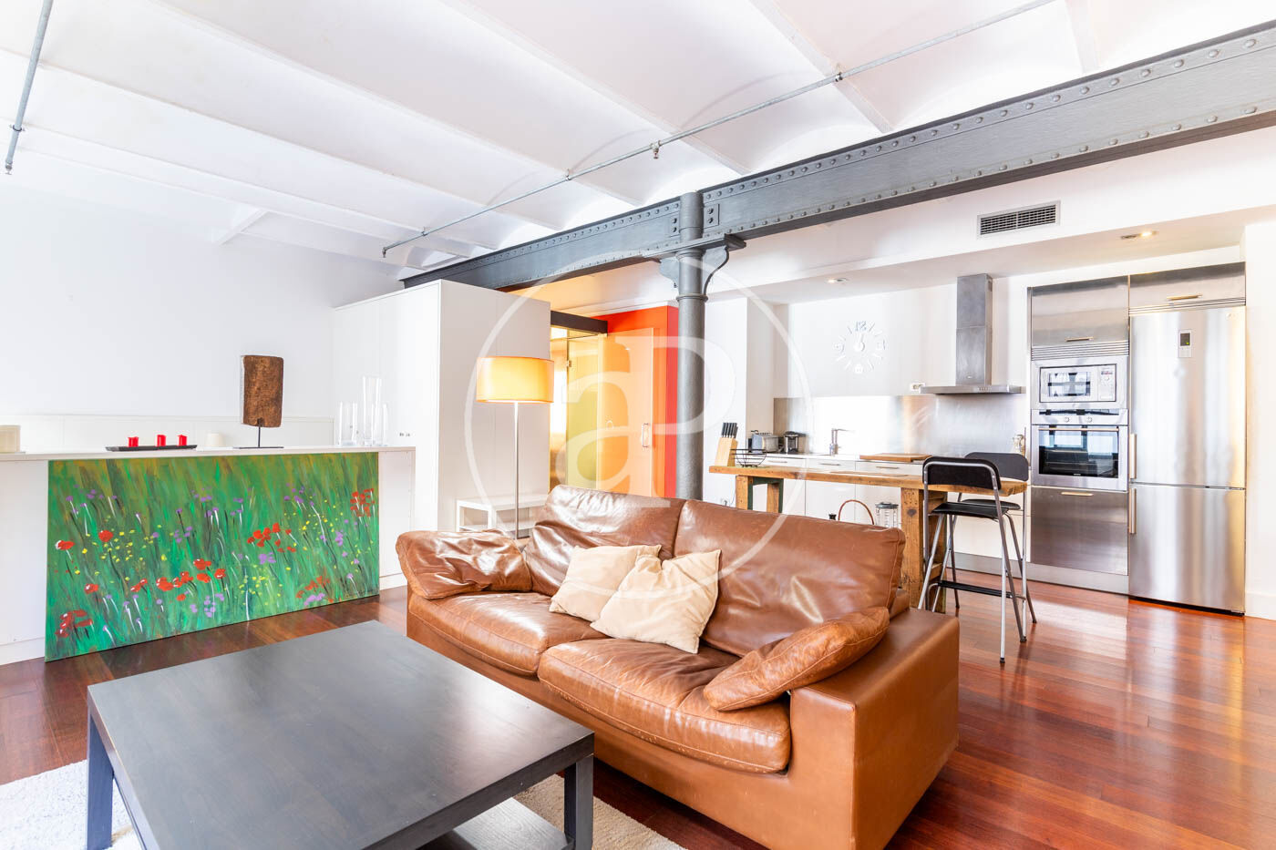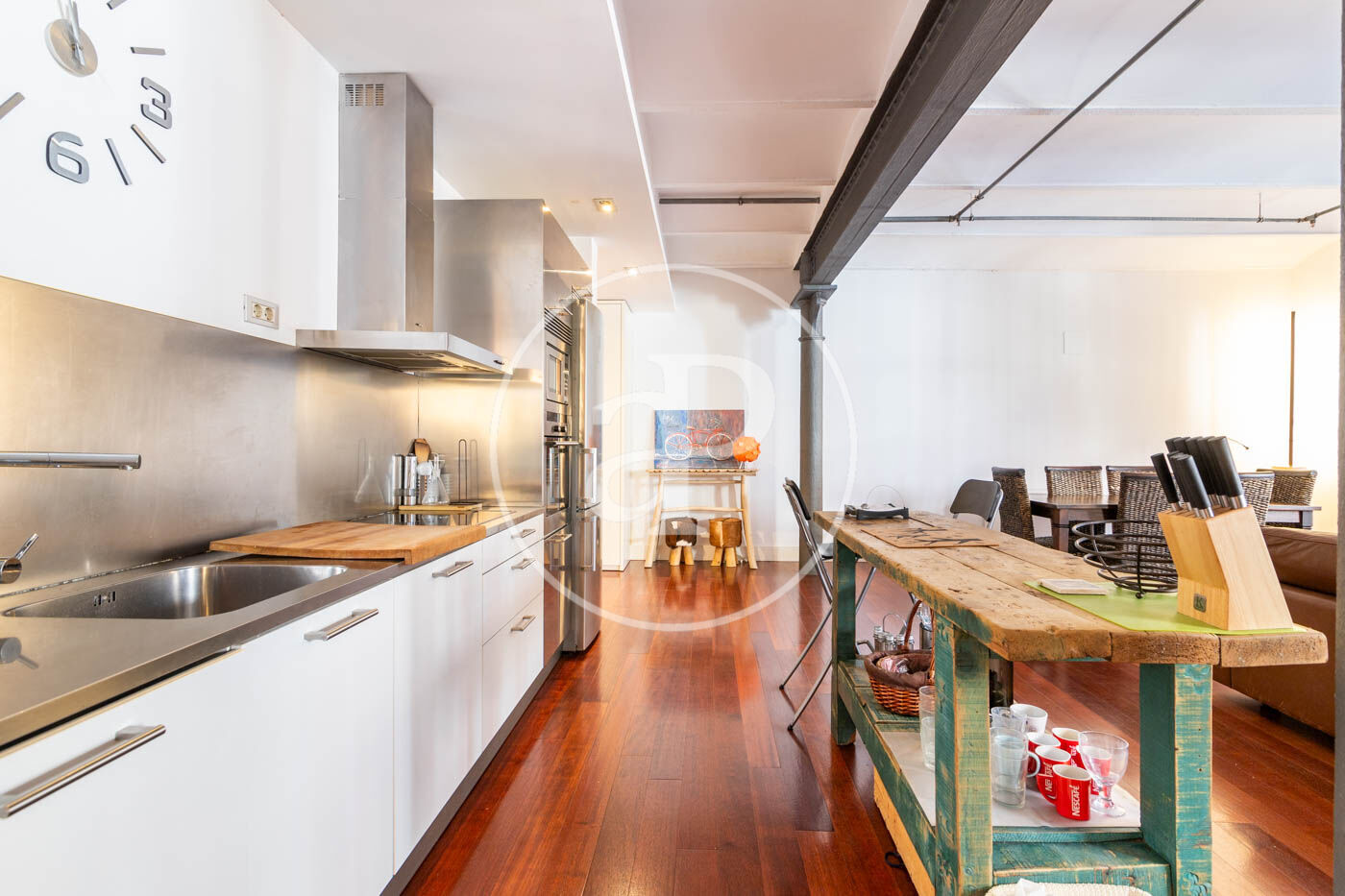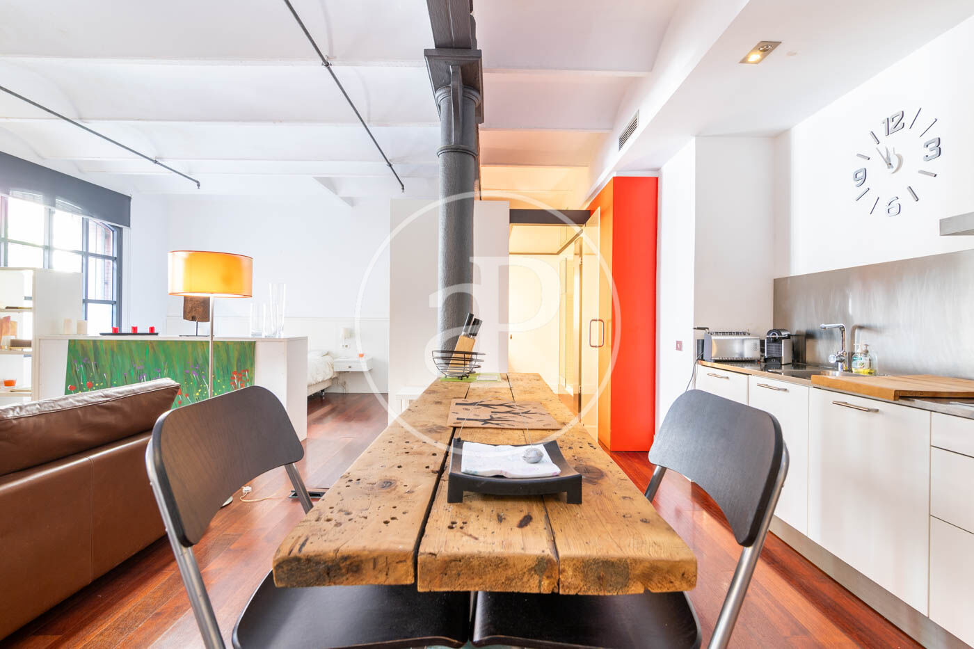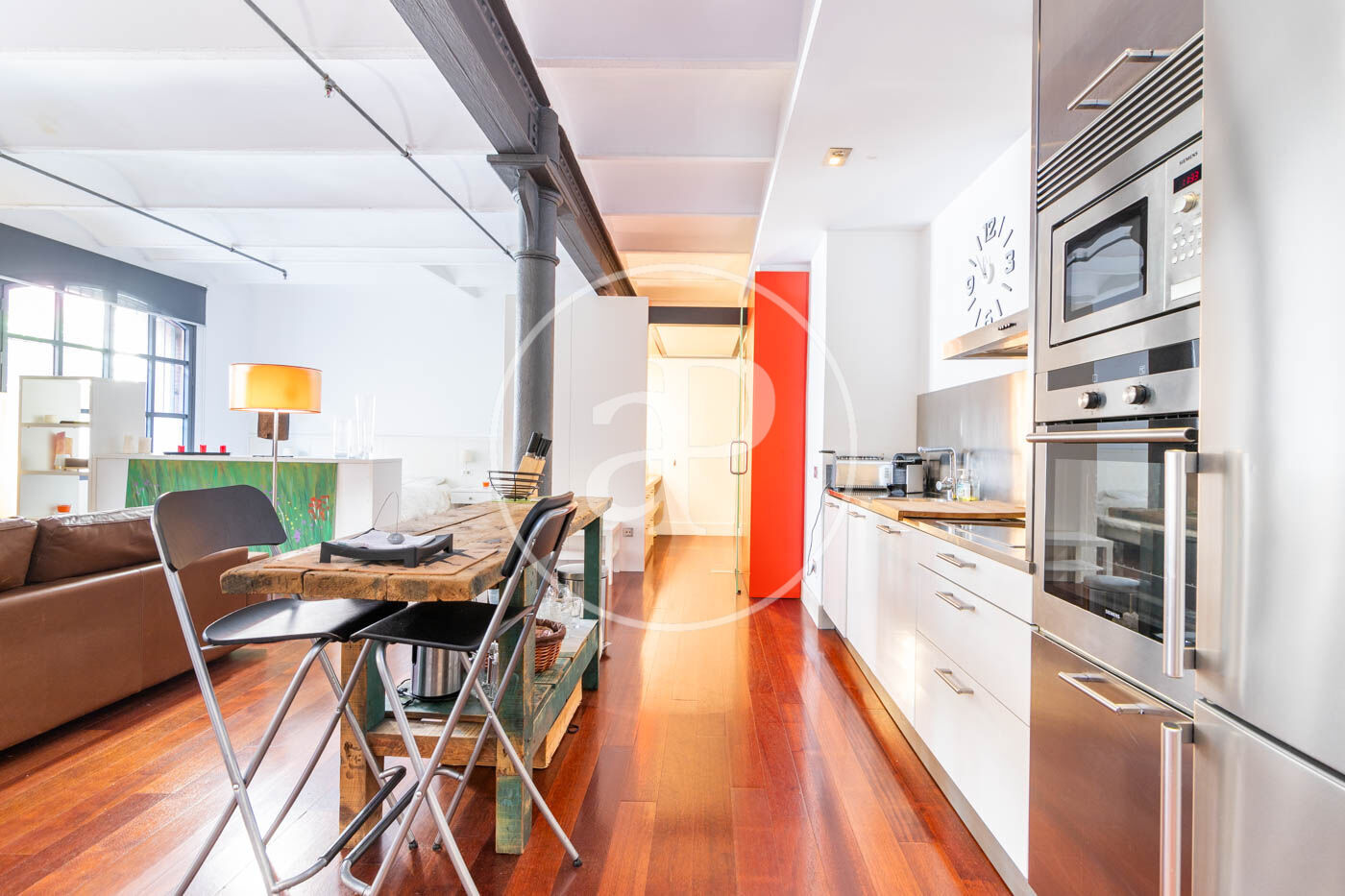 Impressionant loft situat en un antic edifici industrial en 22@. L'edifici, que conserva molts elements del passat, s'ha renovat en 2010 amb un perfecte equipament modern, posant en conjunt l'antic amb el nou i fent d'aquest edifici un lloc immillorable per viure. Situat en el nou districte anomenat 22@, on neixen multitud de Start-ups i se celebren molts esdeveniments avantguardistes, però també immillorablement situat a pocs minuts de la platja de Bogatell. El pis està totalment moblat i equipat, llest a entrar a viure. Es compon d'un gran espai de saló-menjador amb una cuina totalment equipada i oberta, amb tots els electrodomèstics, zona de nit separada per armaris i bany amb dutxa. El lloguer inclou una plaça de pàrquing àmplia on pot aparcar un cotxe i dues o tres motos, a més de pàrquing per a dues bicicletes.