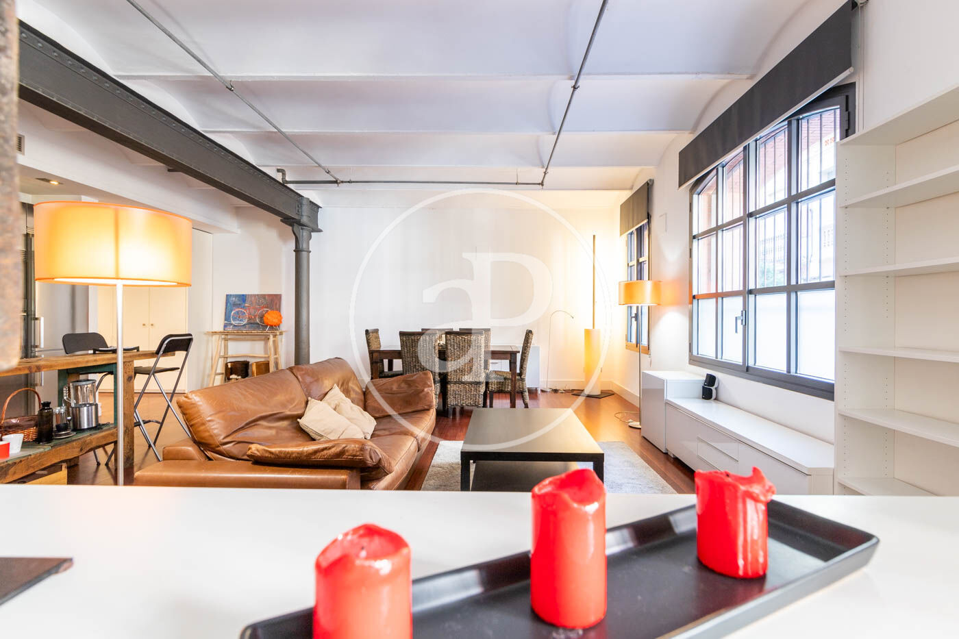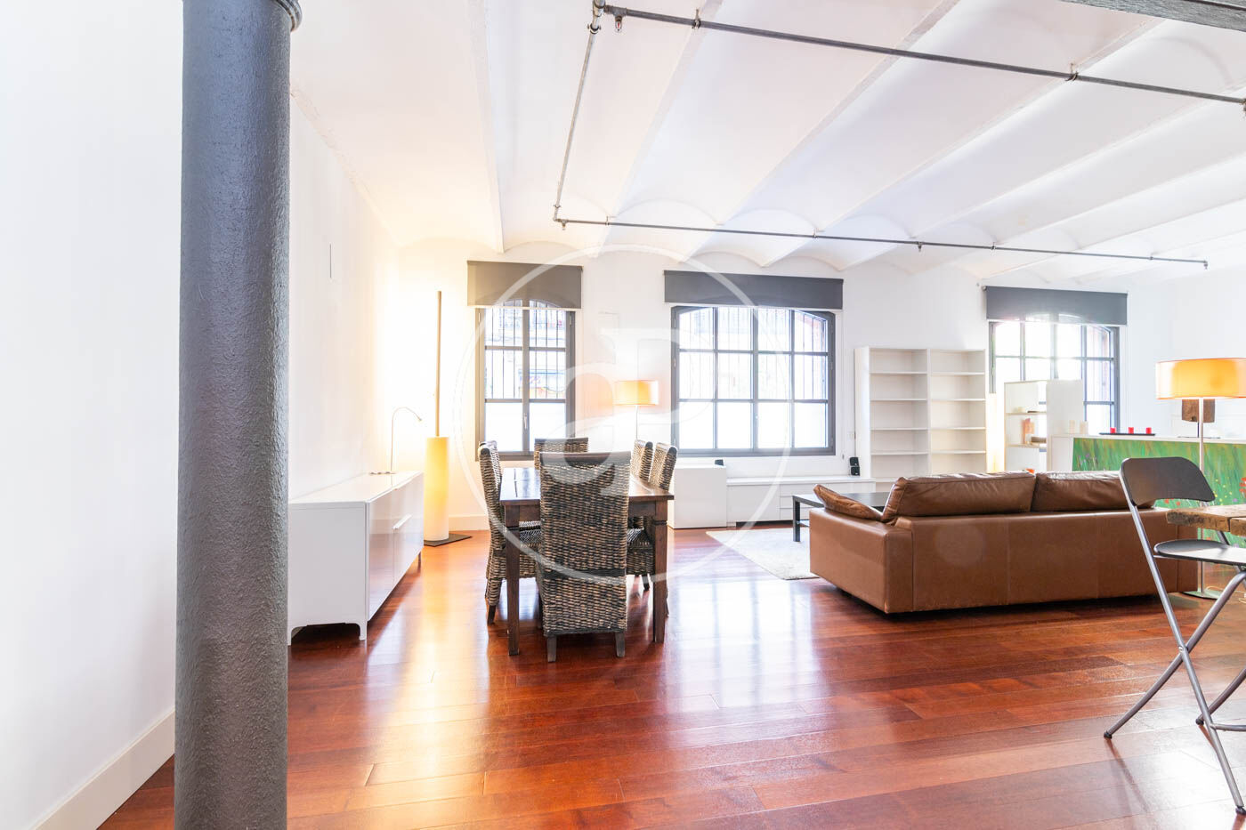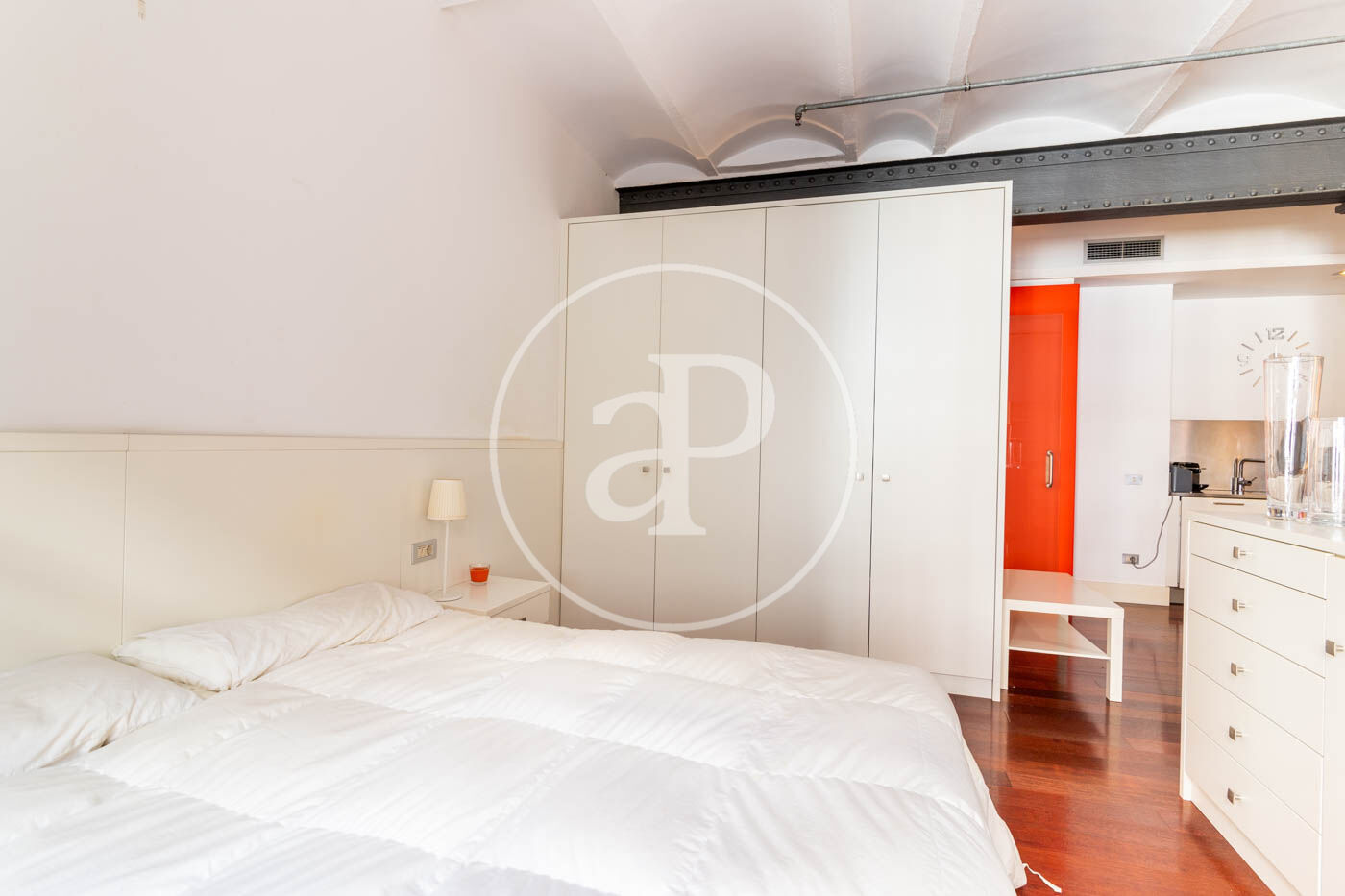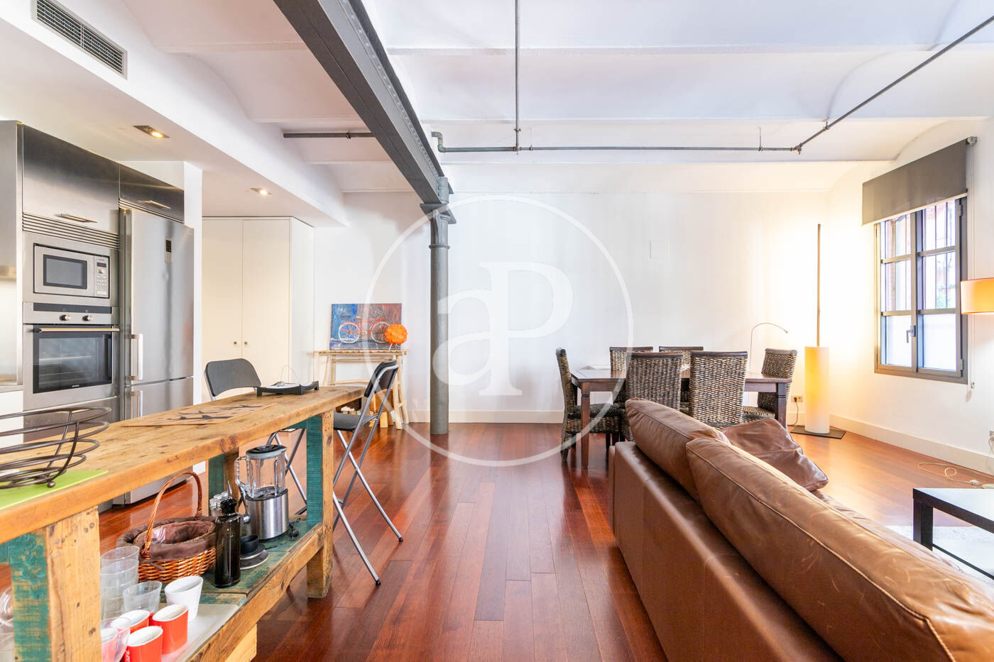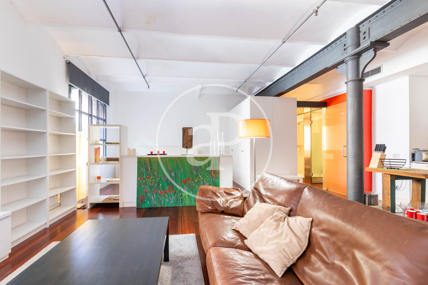 Impressionant loft situat en un antic edifici industrial en 22@. L'edifici, que conserva molts elements del passat, s'ha renovat en 2010 amb un perfecte equipament modern, posant en conjunt l'antic amb el nou i fent d'aquest edifici un lloc immillorable per viure. Situat en el nou districte anomenat 22@, on neixen multitud de Start-ups i se celebren molts esdeveniments avantguardistes, però també immillorablement situat a pocs minuts de la platja de Bogatell. El pis està totalment moblat i equipat, llest a entrar a viure. Es compon d'un gran espai de saló-menjador amb una cuina totalment equipada i oberta, amb tots els electrodomèstics, zona de nit separada per armaris i bany amb dutxa. El lloguer inclou una plaça de pàrquing àmplia on pot aparcar un cotxe i dues o tres motos, a més de pàrquing per a dues bicicletes.