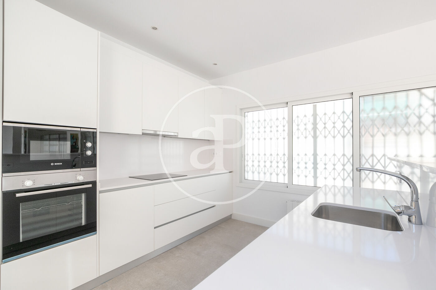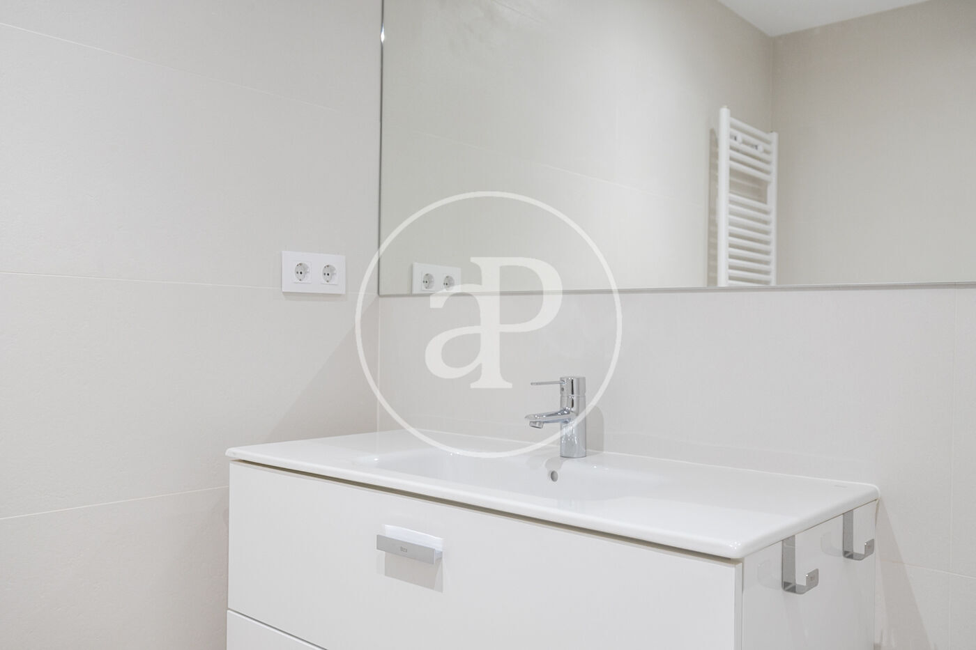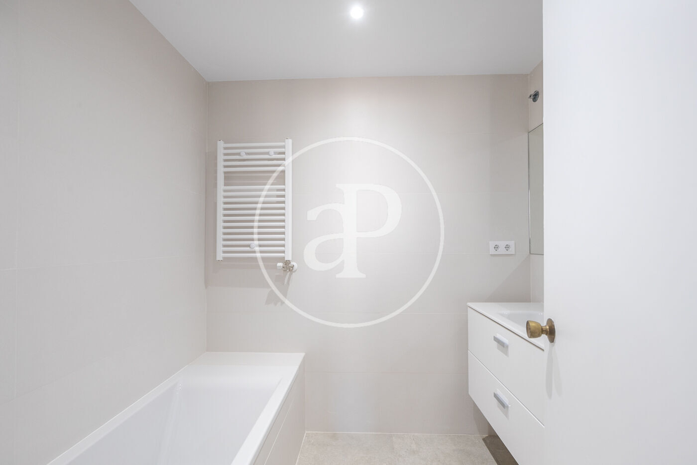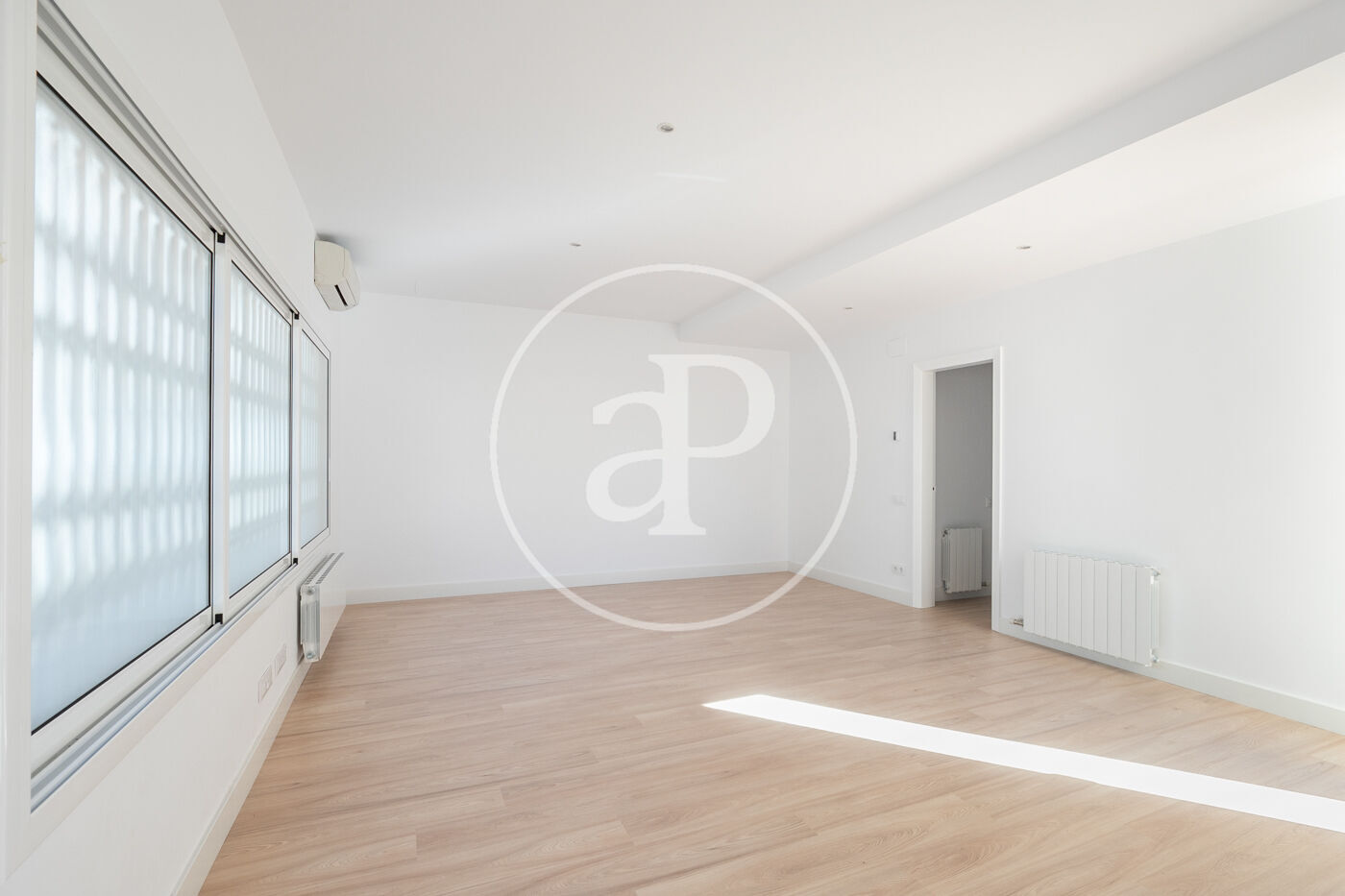 Aire condicionat per splits i calefacció per radiadors de gas natural. Tot l’habitatge és exterior, assolellat durant tot el dia i molt lluminós. A més, és molt tranquil, ja que es troba en un carrer amb poc trànsit i les terrasses estan orientades cap a un ampli pati d’illa.