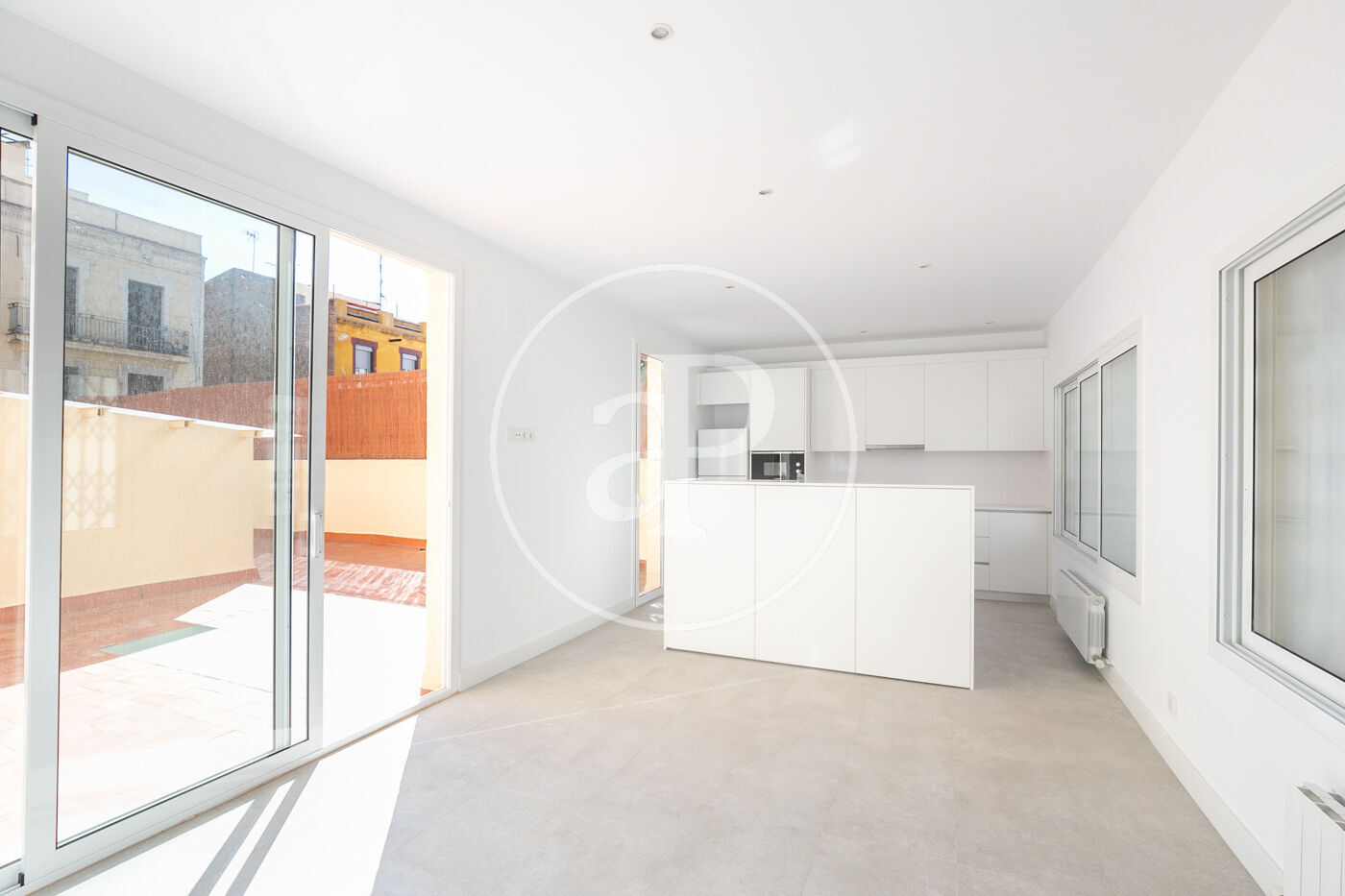 Fantàstic habitatge situat al cor del barri del Poblenou. Al costat de la Rambla del Poblenou, a només 15 minuts caminant de la platja, molt ben comunicat i molt a prop dels centres comercials Glòries i Diagonal Mar.