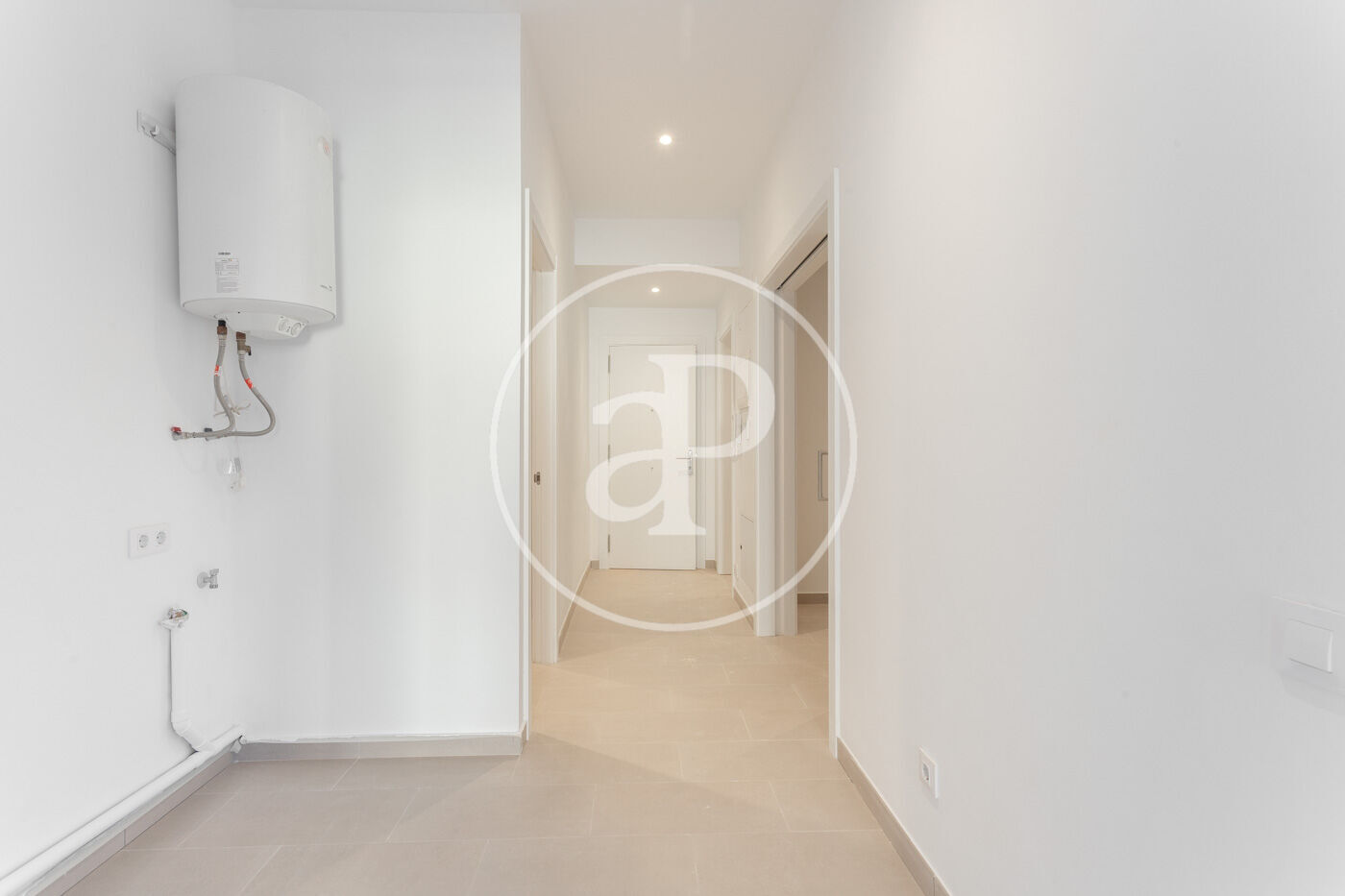 En accedir a l’habitatge, trobem a través d’un passadís un lluminós saló-menjador amb cuina oberta, dissenyat per oferir comoditat i funcionalitat. Des del saló s’accedeix directament a una impressionant terrassa de 30 m², un espai perfecte per gaudir de l’aire lliure, relaxar-se o socialitzar en un entorn privat.