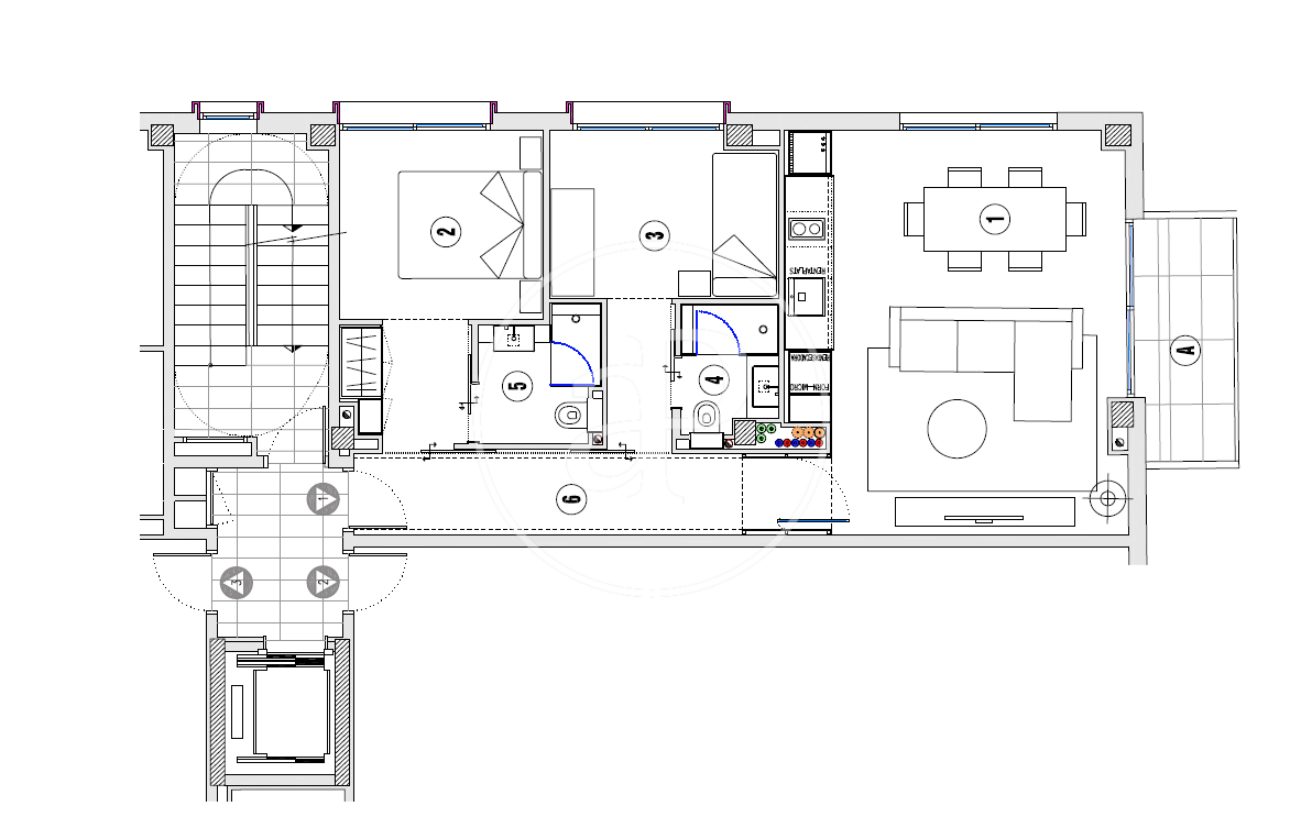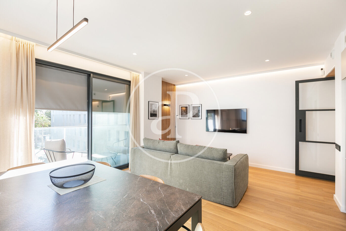 Entrant a la zona de dia, des de la tercera planta trobem una lluminosa cuina equipada. Seguidament, passem al ampli saló menjador amb pantalla de televisió Smart TV, sofàs i tot el necessari per a una estada agradable, a més d’un lavabo de cortesia.
