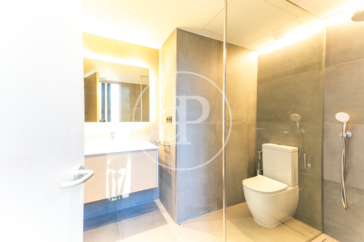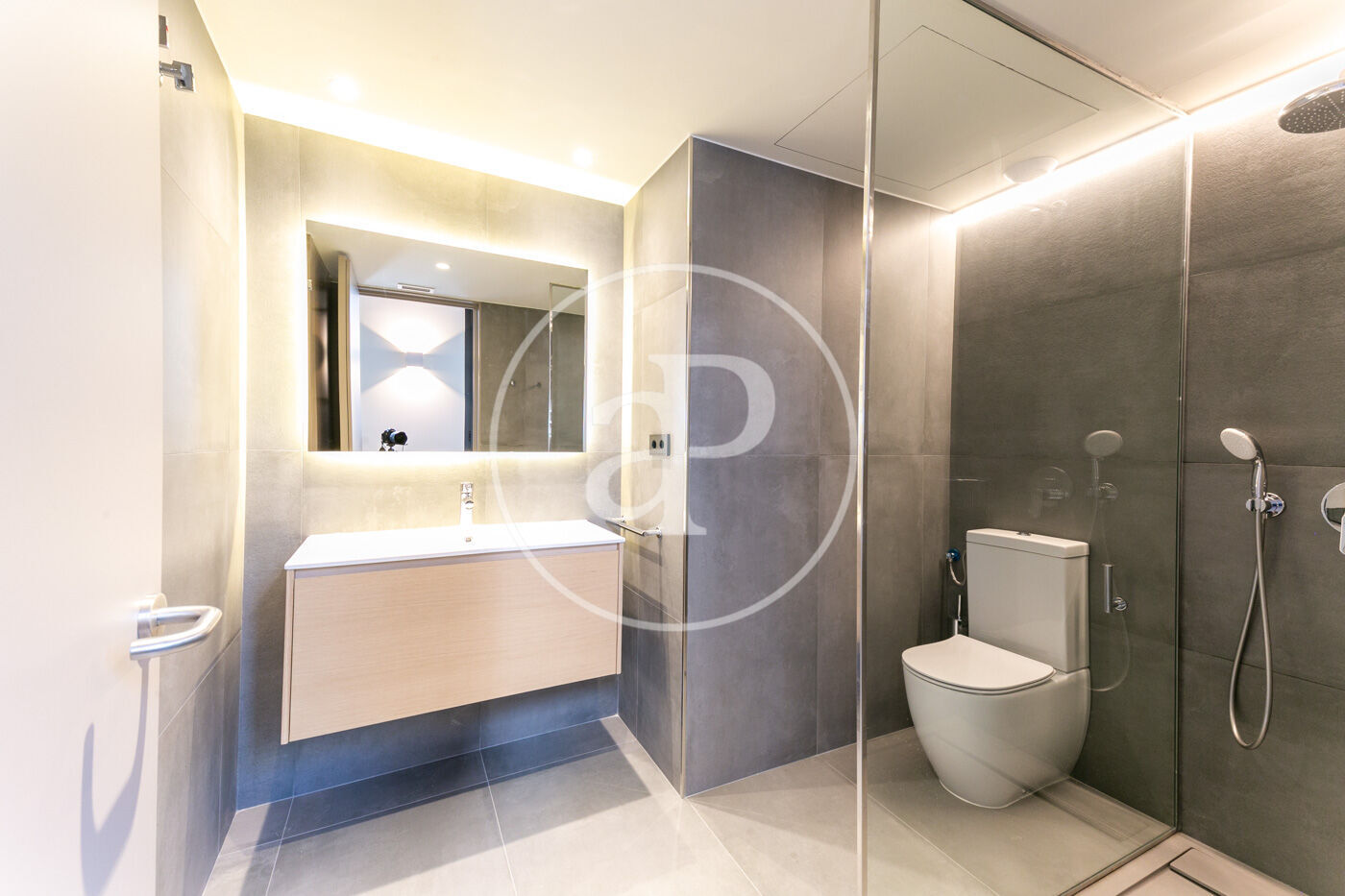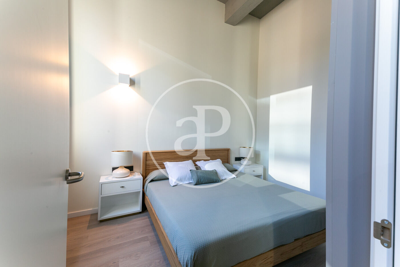 L’habitatge es lliura moblat i disposa d’una superfície de 109 m², on trobem un ampli saló menjador amb cuina oberta, a més de 2 habitacions dobles i 2 banys. L’habitació principal està equipada amb llit de matrimoni i pensada com a dormitori principal amb armaris encastats, i l’altra habitació, també doble, pot destinar-se tant a despatx com a dormitori.