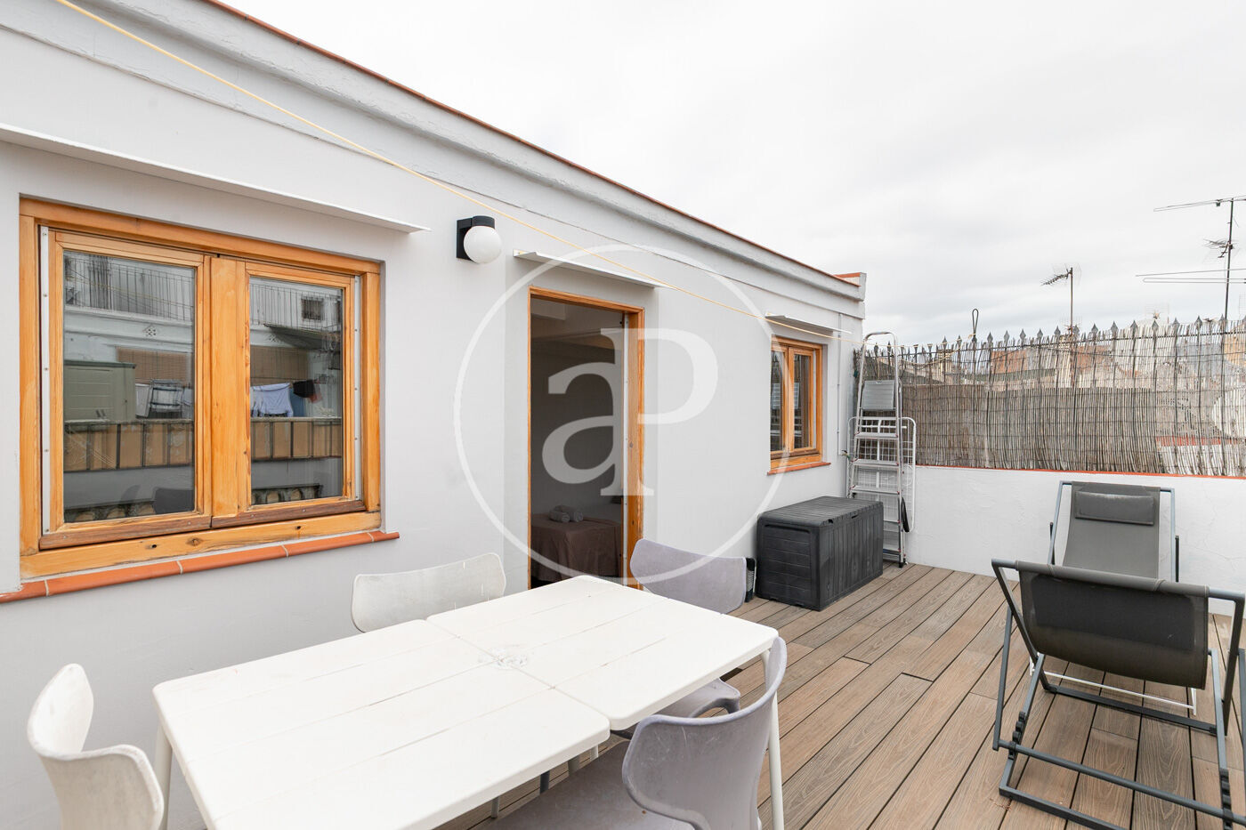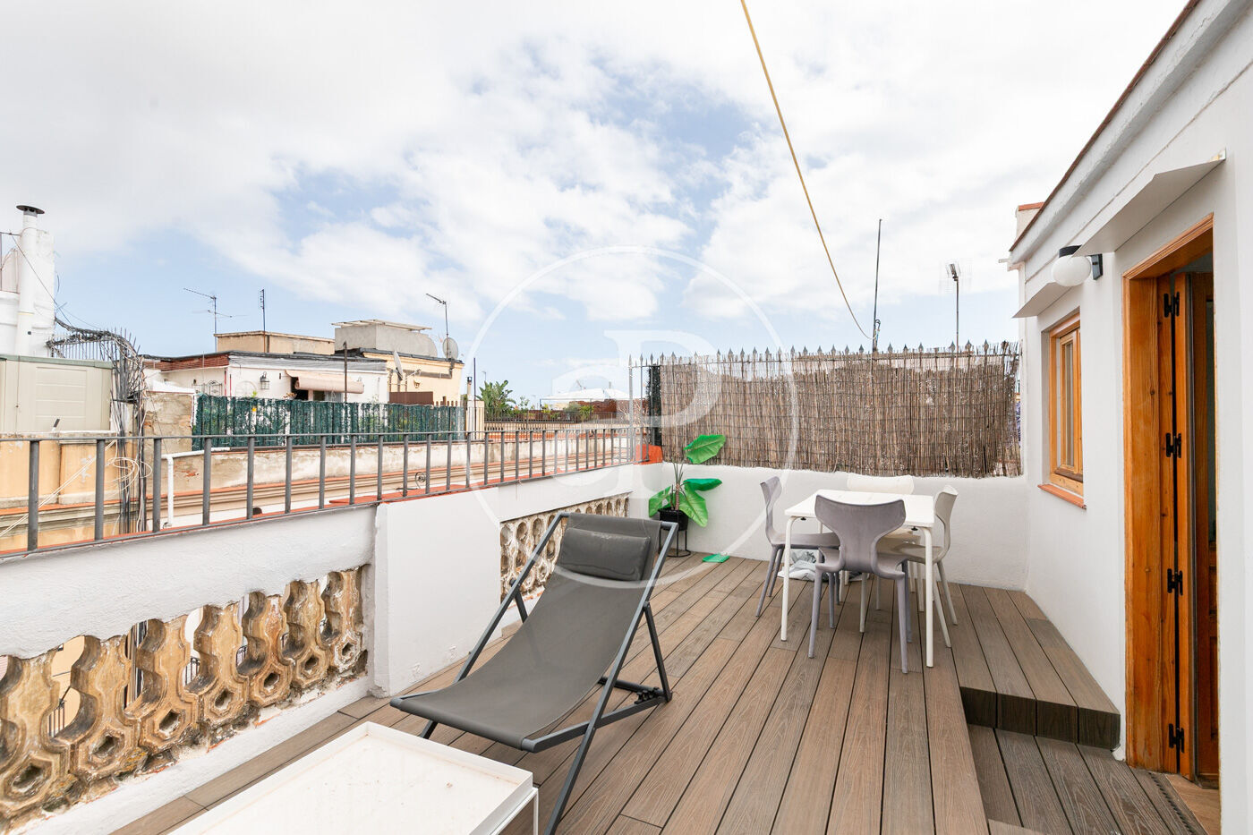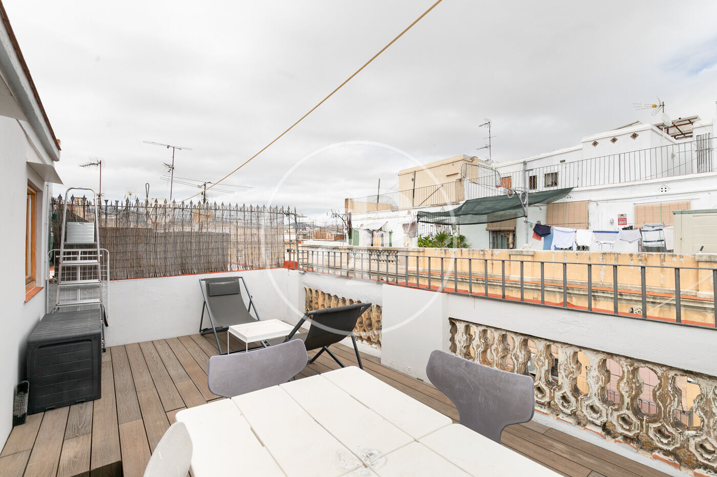 Entre la recentment reformada Ronda de Sant Antoni i la plaça del MACBA, al bohemi carrer Lluna, et presentem aquest bonic àtic situat en una sisena planta real d’una finca clàssica sense ascensor. Amb una superfície construïda de 53 m² i una terrassa de 15 m², es troba en molt bon estat de conservació i es ven completament moblat per entrar-hi a viure.