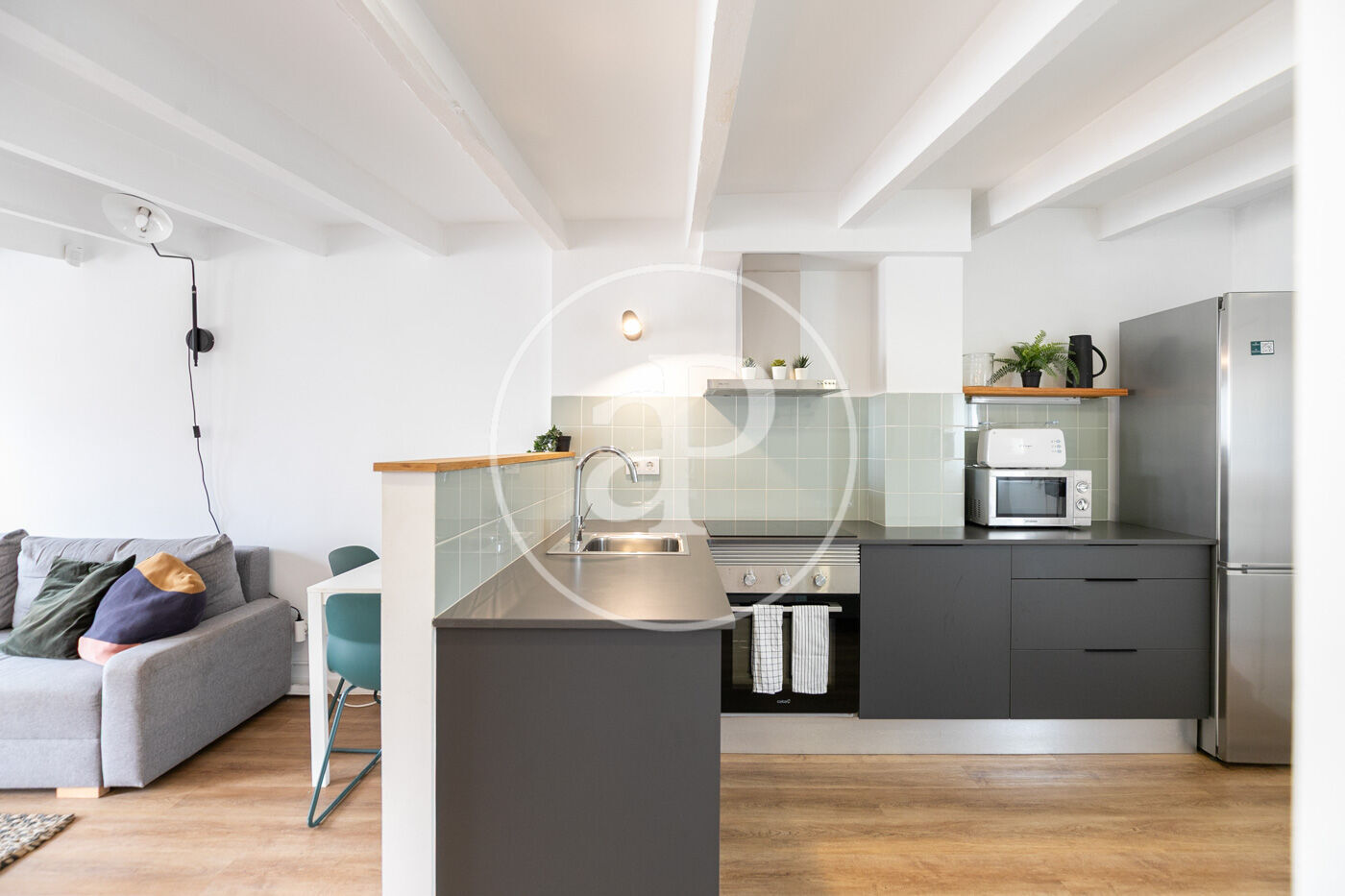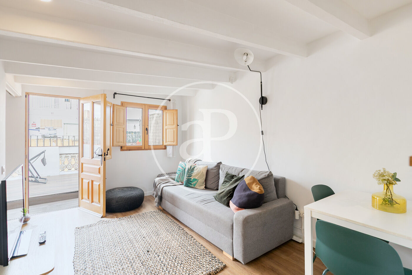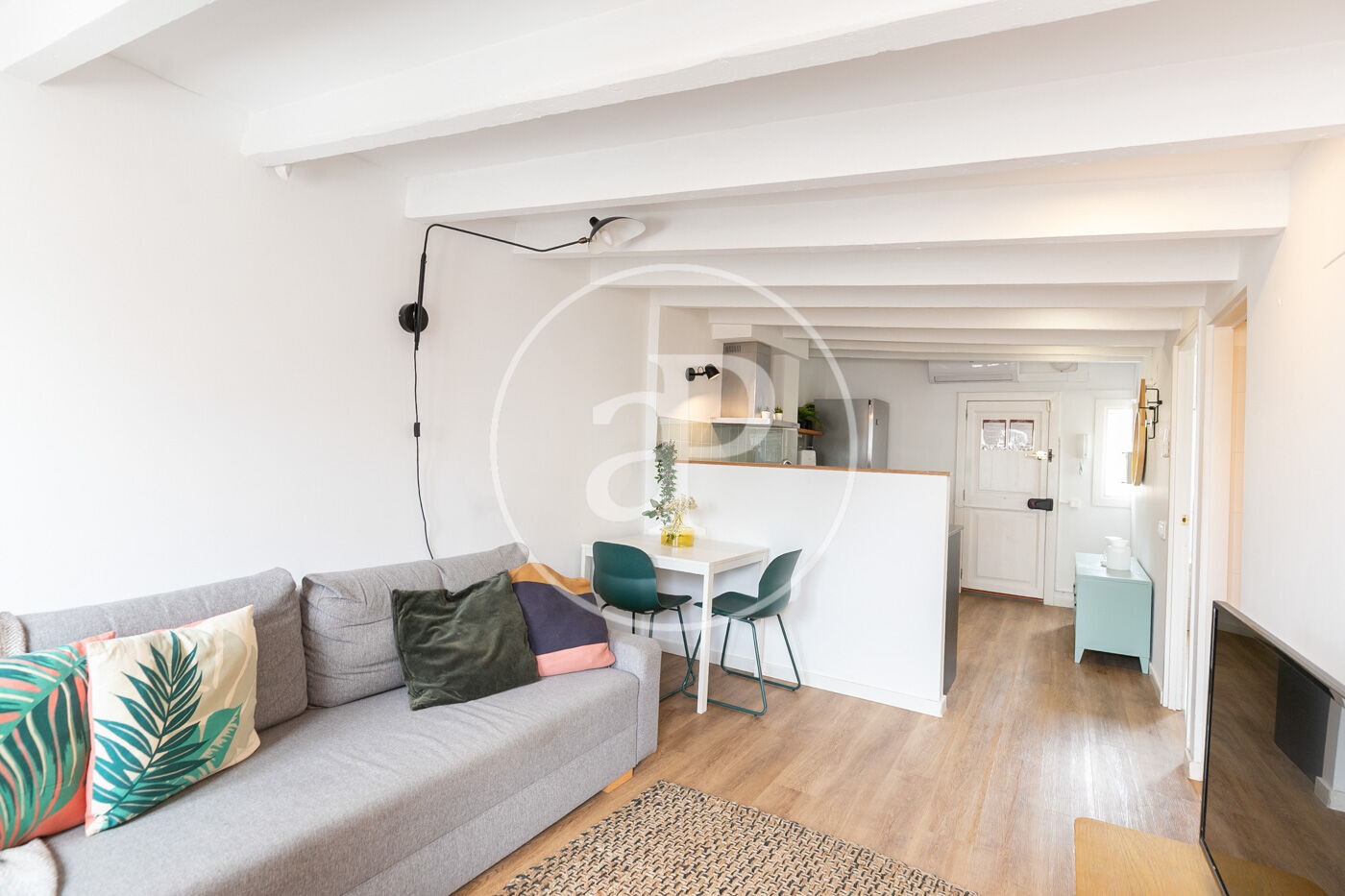 Entre la recentment reformada Ronda de Sant Antoni i la plaça del MACBA, al bohemi carrer Lluna, et presentem aquest bonic àtic situat en una sisena planta real d’una finca clàssica sense ascensor. Amb una superfície construïda de 53 m² i una terrassa de 15 m², es troba en molt bon estat de conservació i es ven completament moblat per entrar-hi a viure.