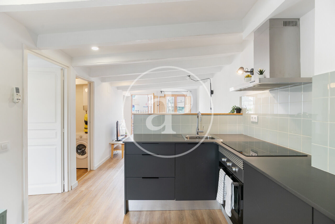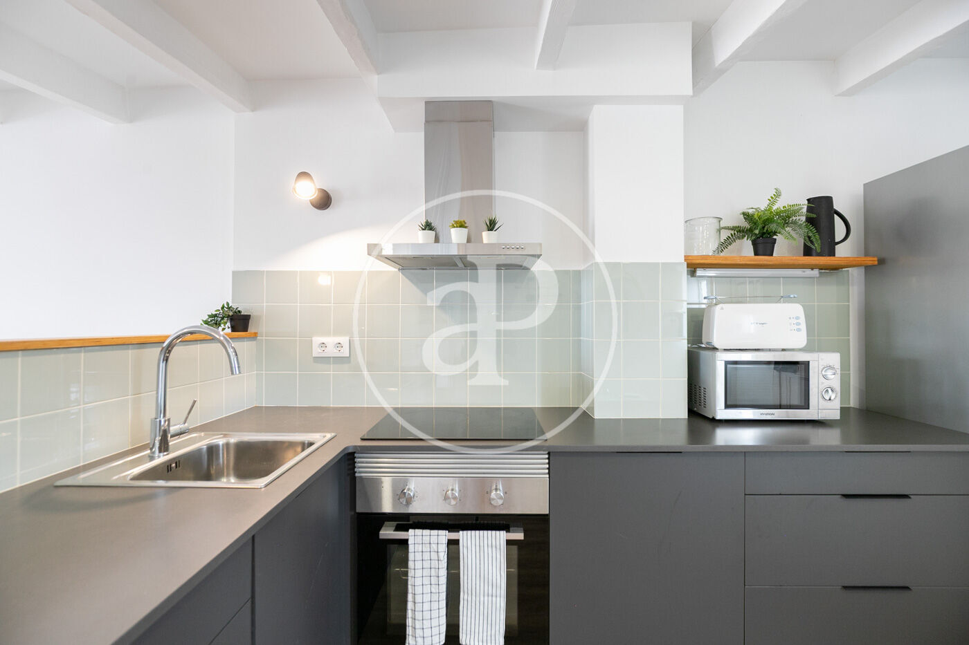 El pis està equipat amb mobiliari complet i tot tipus de detalls pensats per oferir un confort total. Les bigues de fusta vista confereixen un caràcter especialment acollidor a totes les estances.