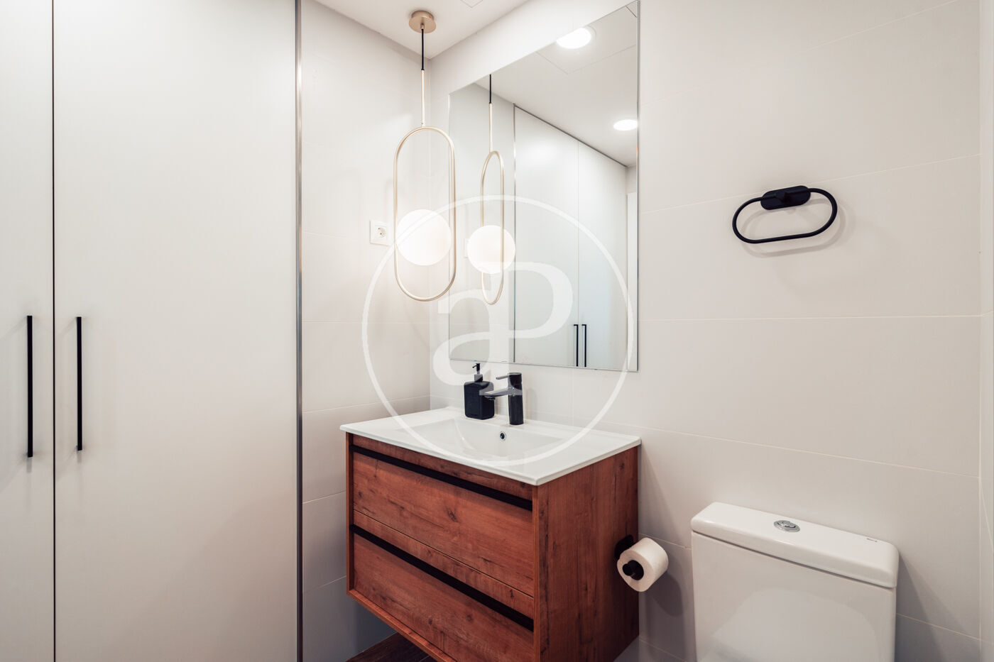 Situat al barri del Raval, molt a prop de Plaça Catalunya i de la Rambla, envoltat de comerços, restaurants i molt ben connectat amb el transport públic i els accessos a la ciutat, trobem aquest pis de 55 m² totalment moblat i equipat.