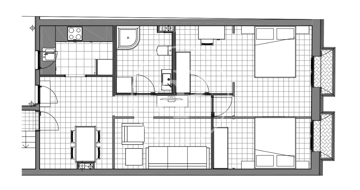 En entrar-hi, ens rep una gran sala d’estar, des de la qual accedim a la cuina independent i a la zona de nit. La zona de nit compta amb un bany complet i dues habitacions, ambdues dobles i amb sortida a balcó exterior al carrer.