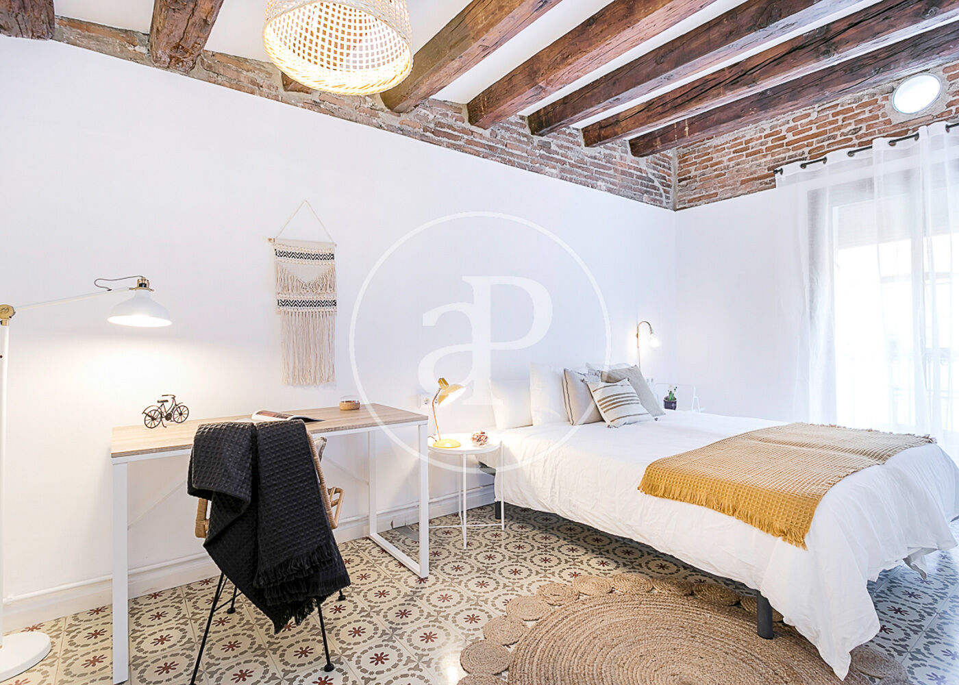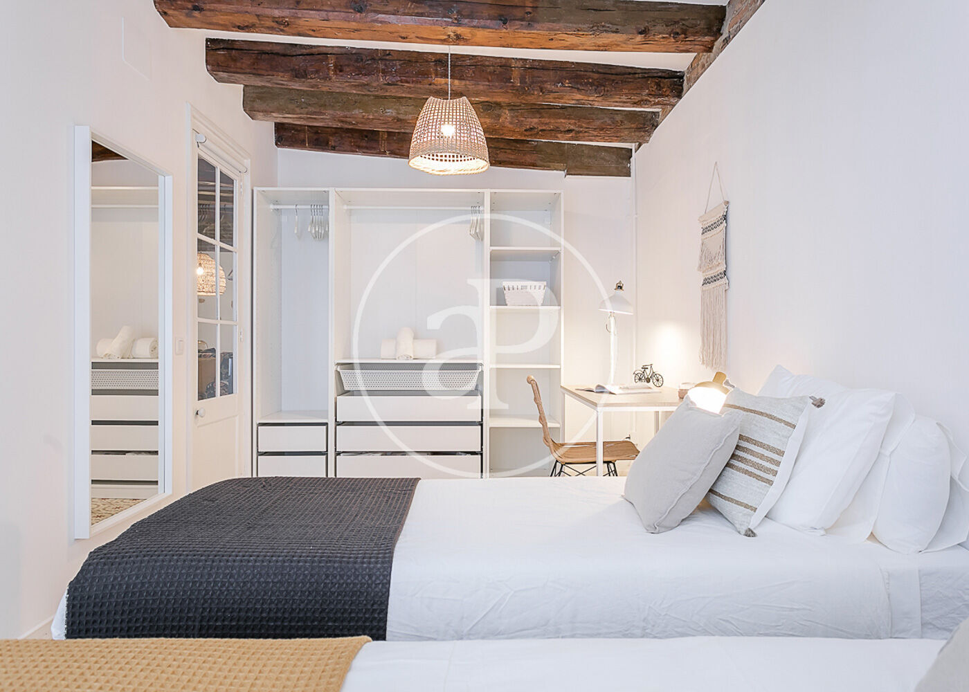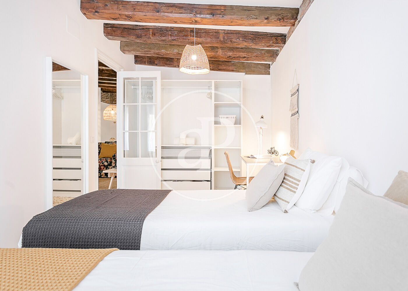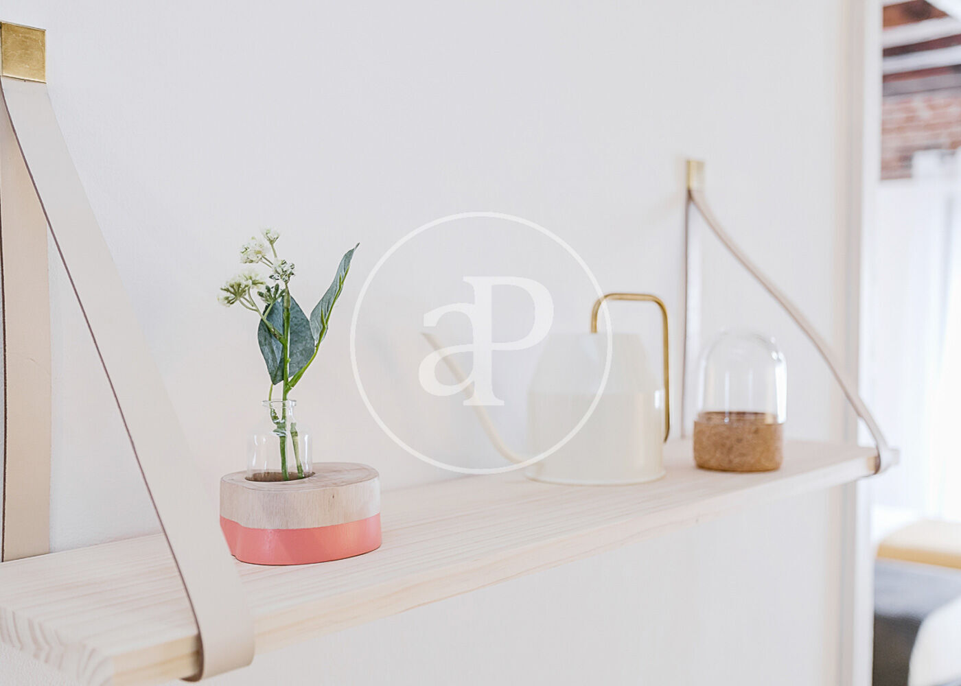 El pis està equipat amb aire condicionat, mobiliari complet i tot tipus de detalls pensats per oferir un confort total. Els terres hidràulics i les bigues de fusta vista dels sostres confereixen un caràcter especialment acollidor a aquestes estances.