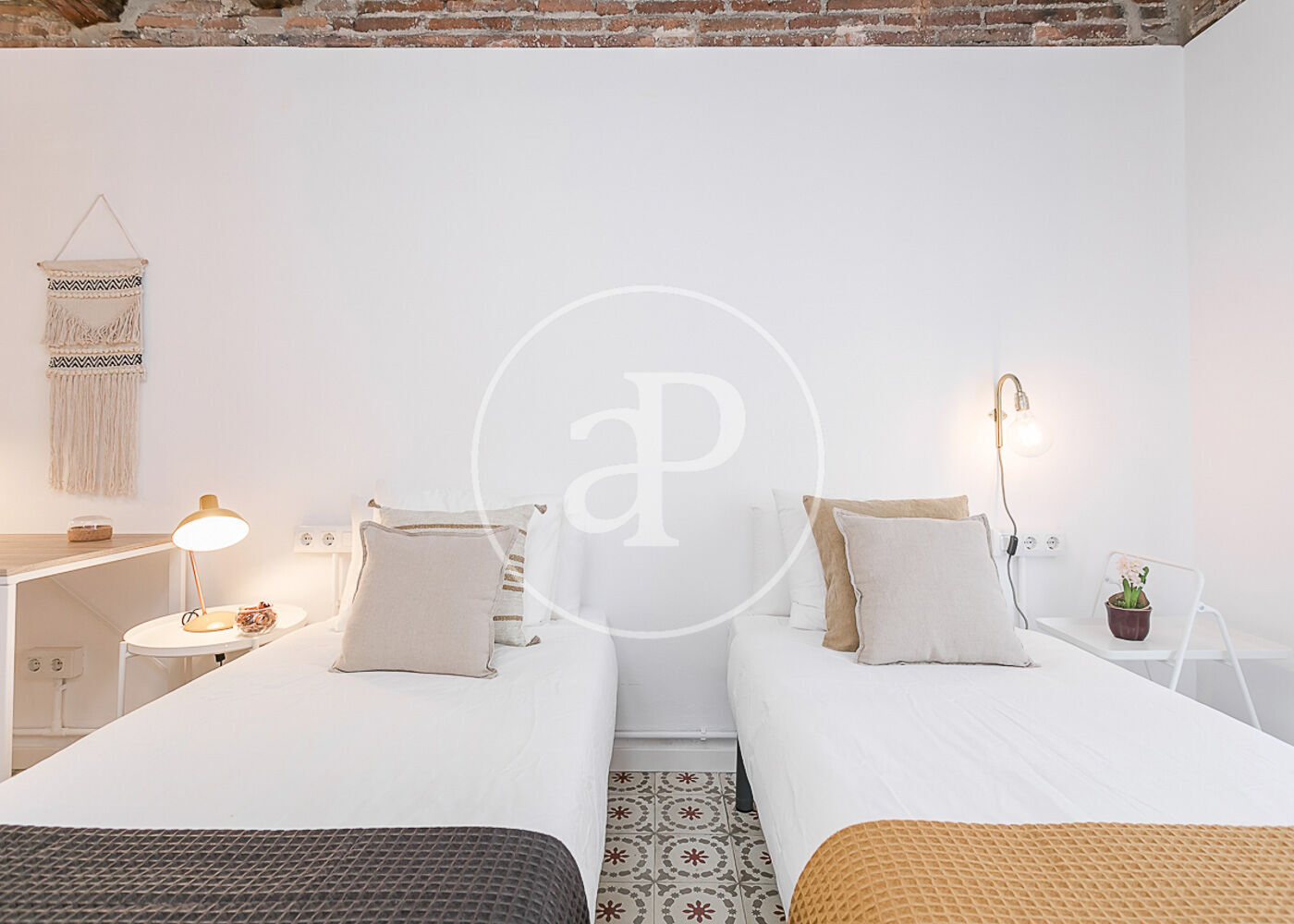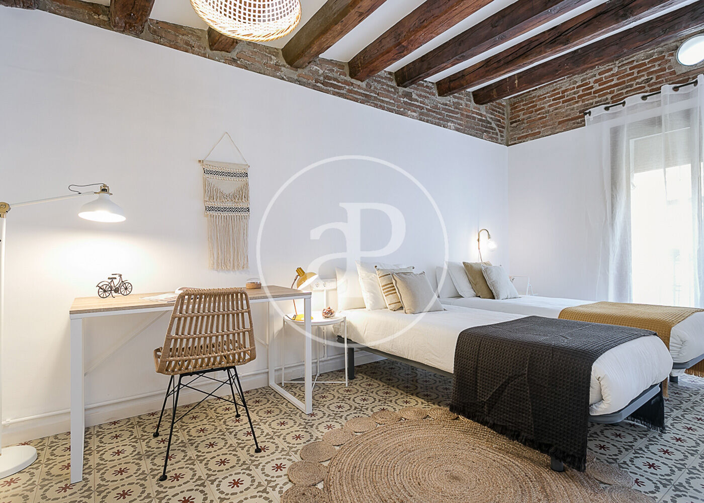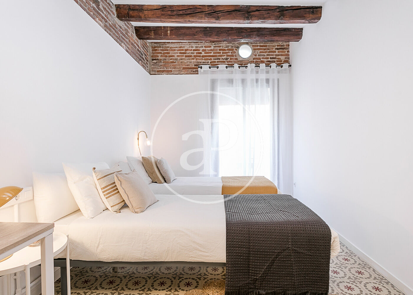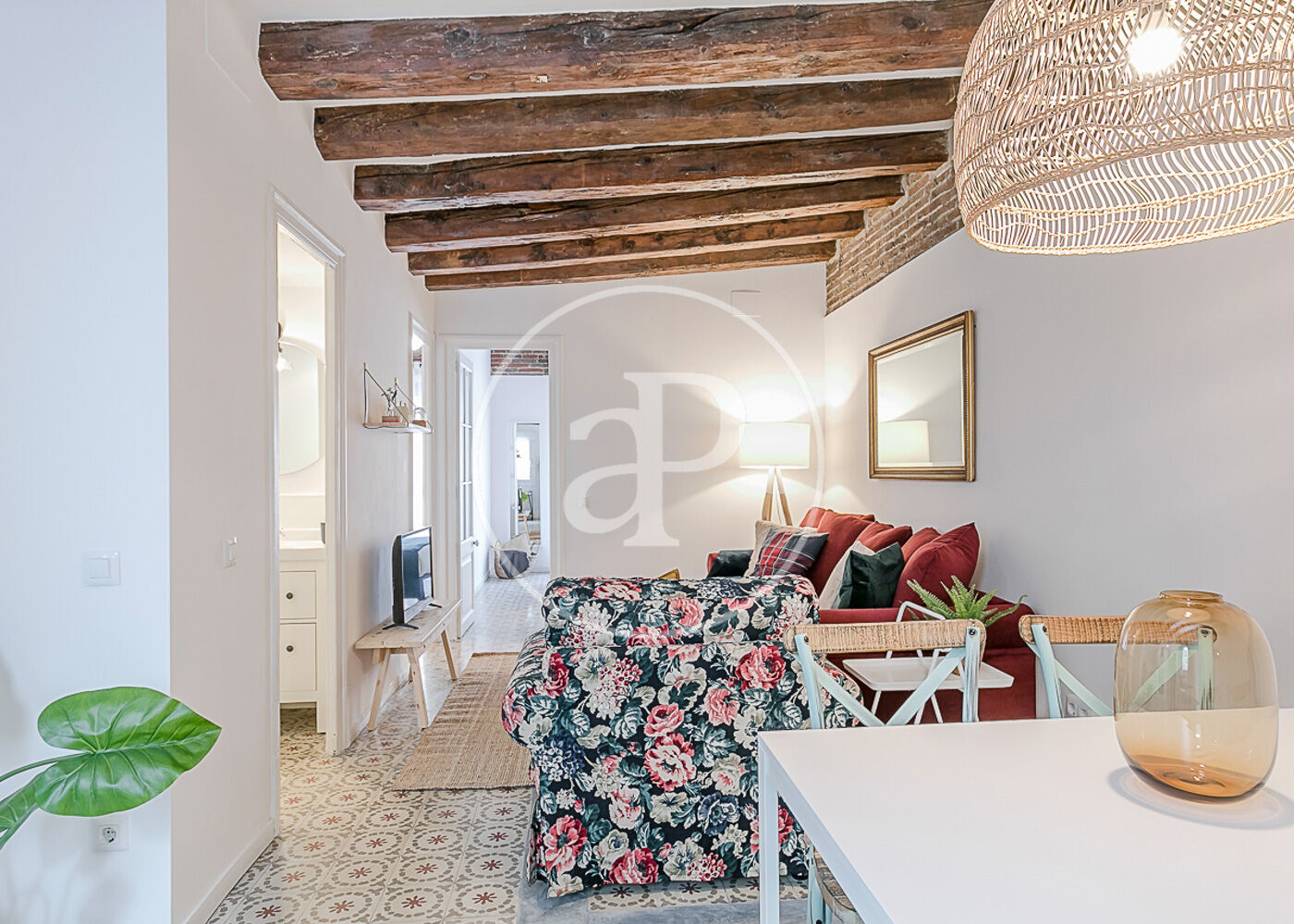 El pis està equipat amb aire condicionat, mobiliari complet i tot tipus de detalls pensats per oferir un confort total. Els terres hidràulics i les bigues de fusta vista dels sostres confereixen un caràcter especialment acollidor a aquestes estances.