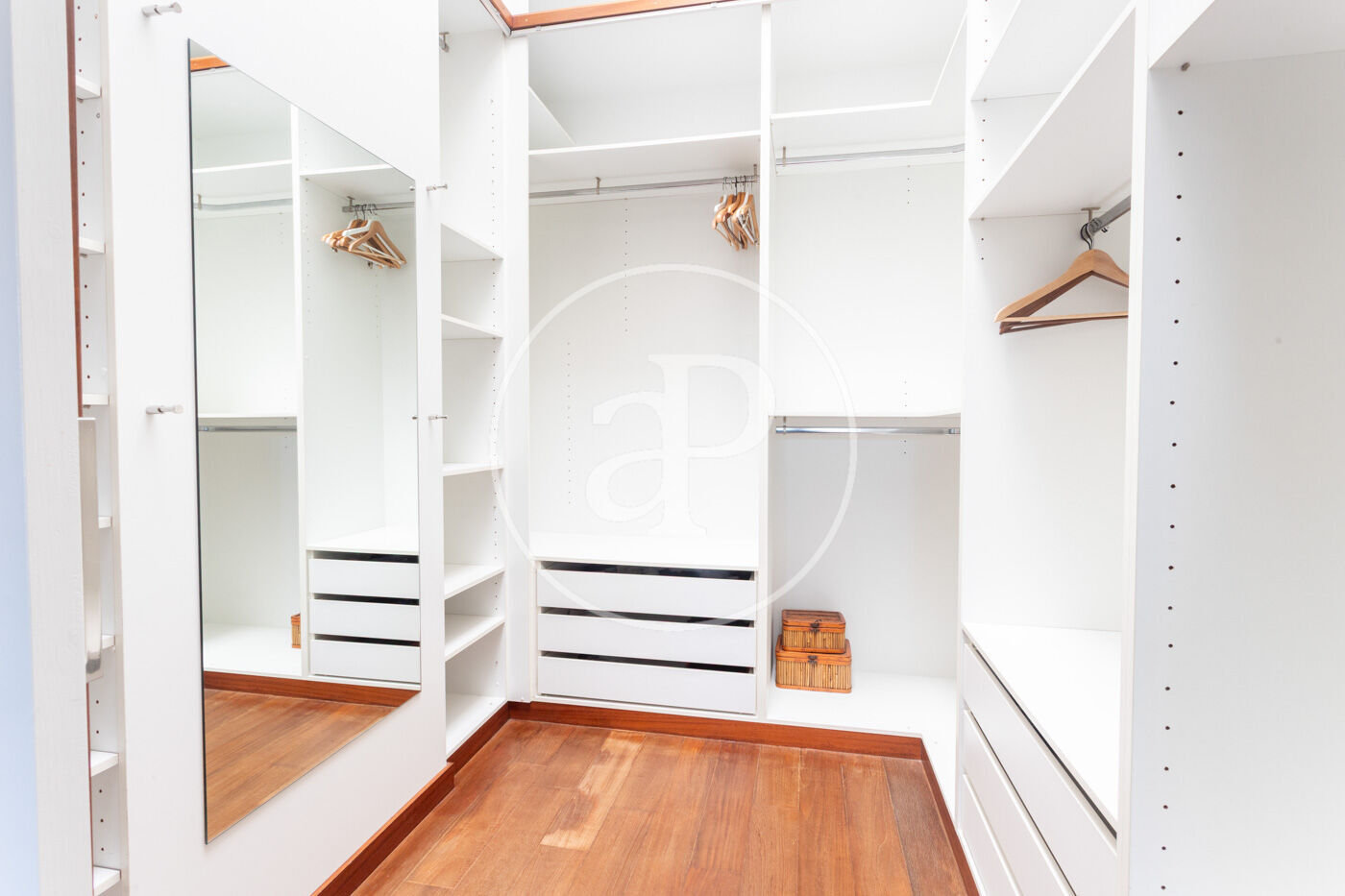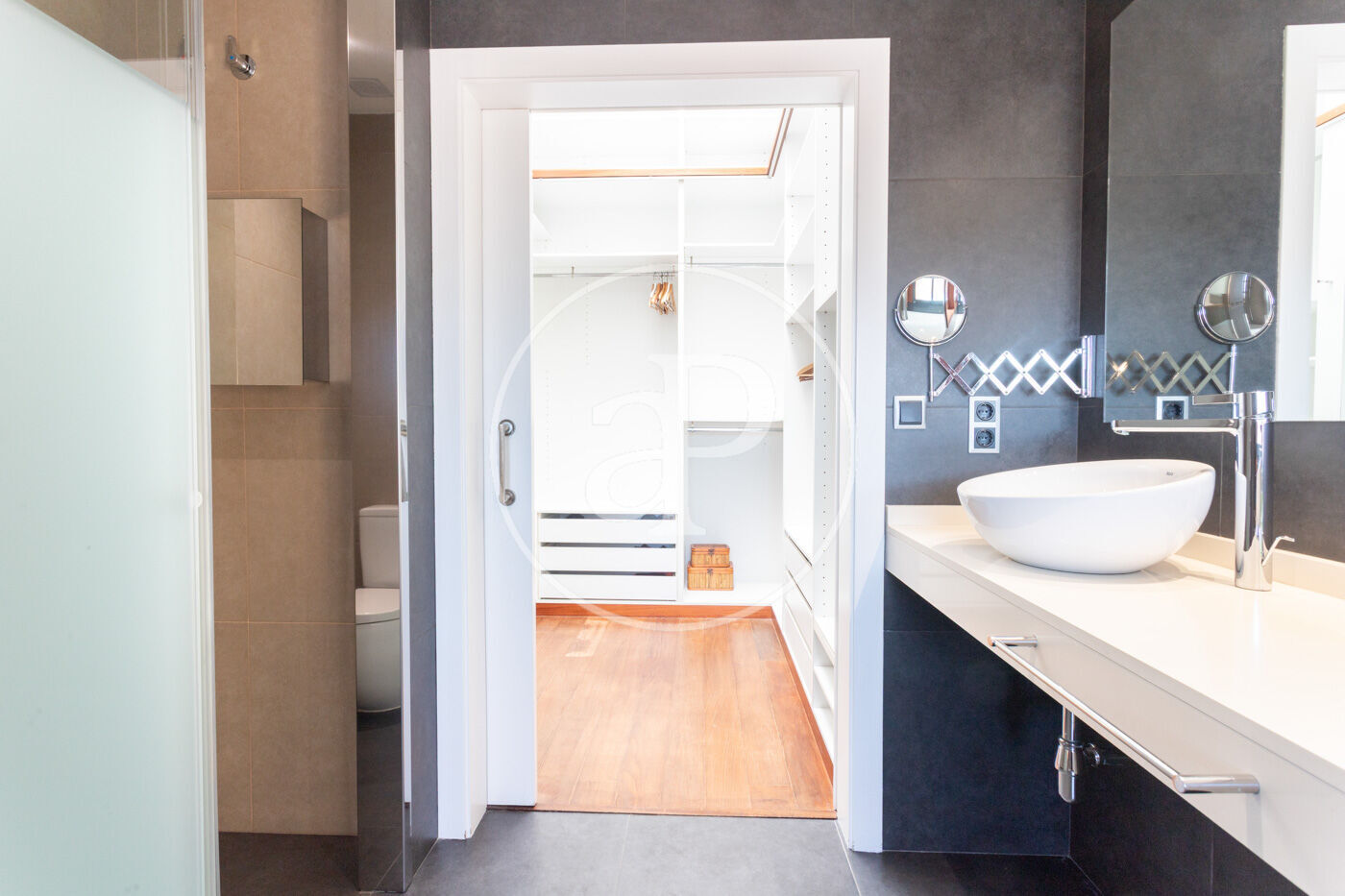 A la tercera i última planta, trobem un ampli despatx i la màster en suite, ambdues estances amb sostres dobles. El bany en suite compta amb una banyera, una dutxa i doble pica. Connectat amb aquest, hi ha un ampli vestidor.