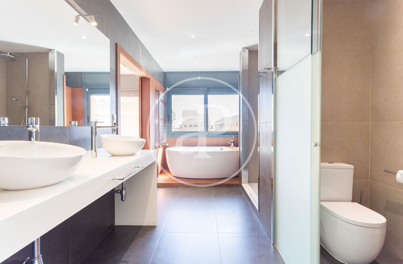 A la primera planta hi trobem una habitació àmplia habilitada com a zona d’estudi, 1 habitació en suite amb un bany amb dutxa, dues habitacions dobles i un bany independent complet amb banyera. Els dos banys compten amb llum natural.