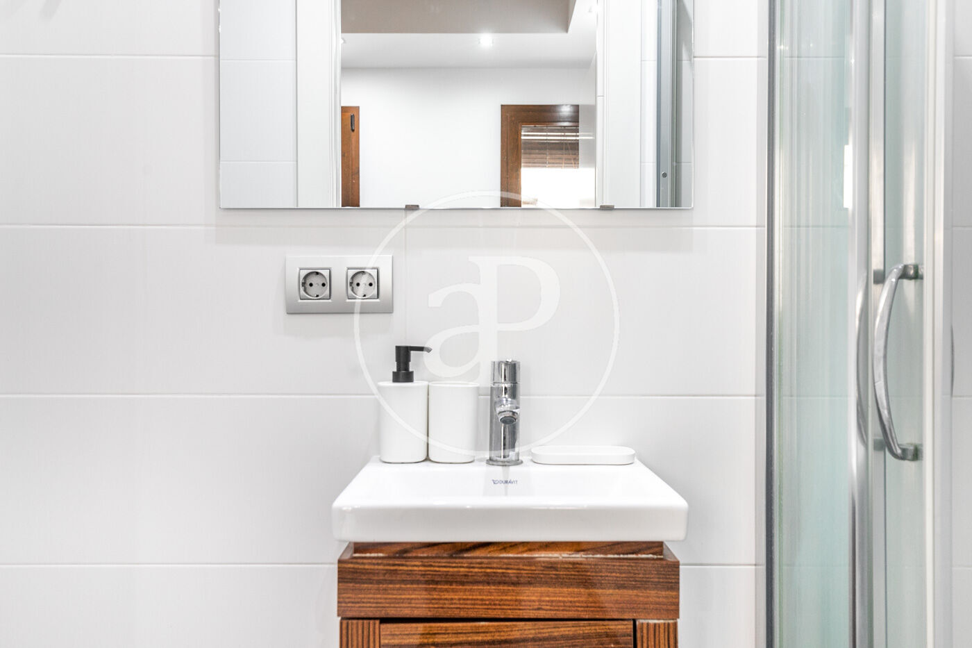 El dormitori disposa d’armaris encastats i un llit de matrimoni. El bany és complet amb dutxa.