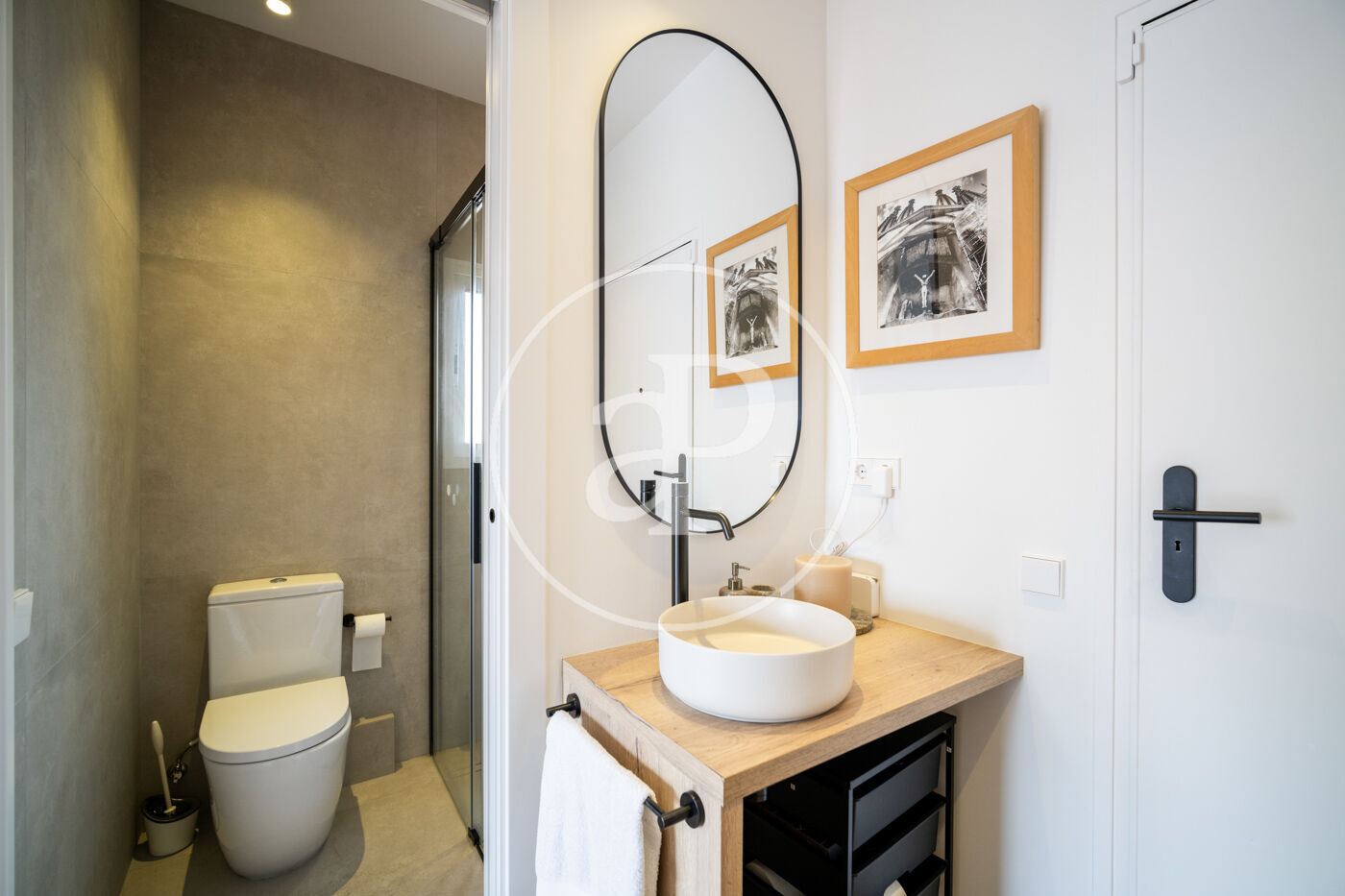 L’habitatge s’organitza a partir d’una entrada ben resolta que condueix de manera natural cap a la resta dels espais. En aquesta zona s’accedeix a un bany independent d’estil contemporani, equipat amb plat de dutxa i acabats sobris que aporten una agradable sensació d’ordre i netedat visual.