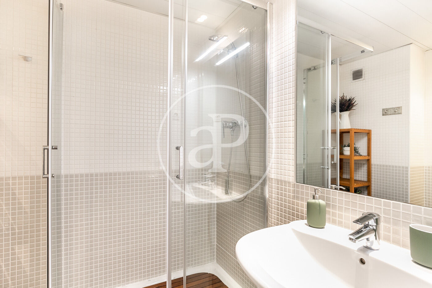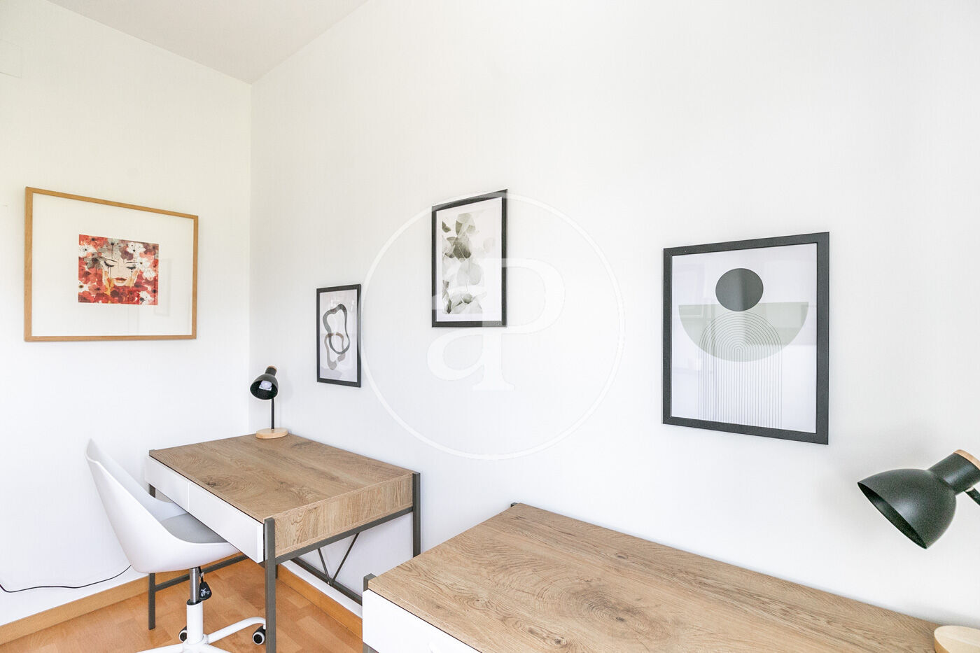 L'àrea de descans consta de 3 habitacions, 2 dobles, una en suite. I la tercera habitació, individual, actualment equipada amb 2 taules descriptori. Tots dos dormitoris compten amb armari encastat perquè puguis guardar tot el que necessites. En total, el pis té 2 banys, un compta amb banyera i l'altre amb dutxa.