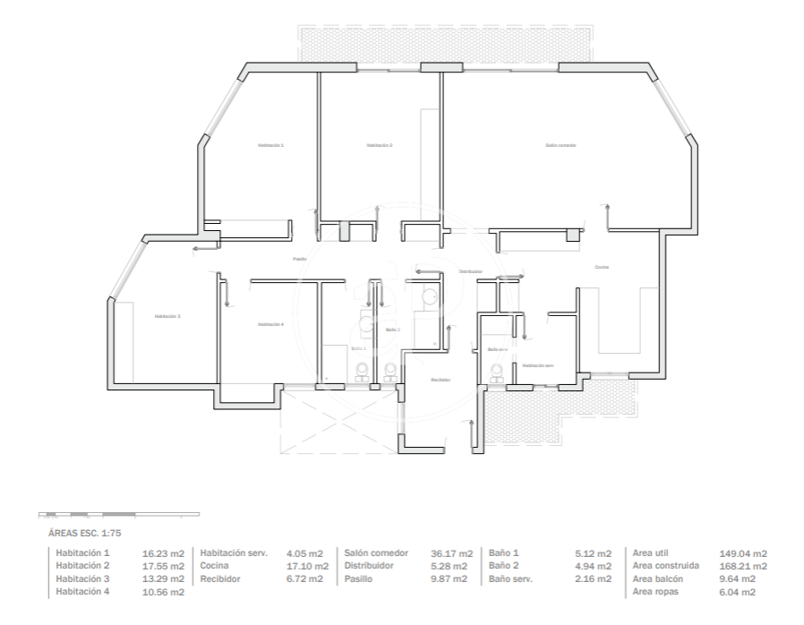 Amb una superfície de 174 m², la zona de dia acull un ampli saló-menjador amb sortida a un balcó/terrassa de 10 m², una cuina independent amb zona office, safareig i una habitació de servei amb lavabo. La zona de nit es compon de quatre dormitoris, un d’ells amb accés directe al balcó. L’habitatge compta, a més, amb dos banys complets.
