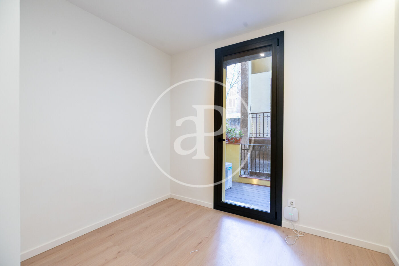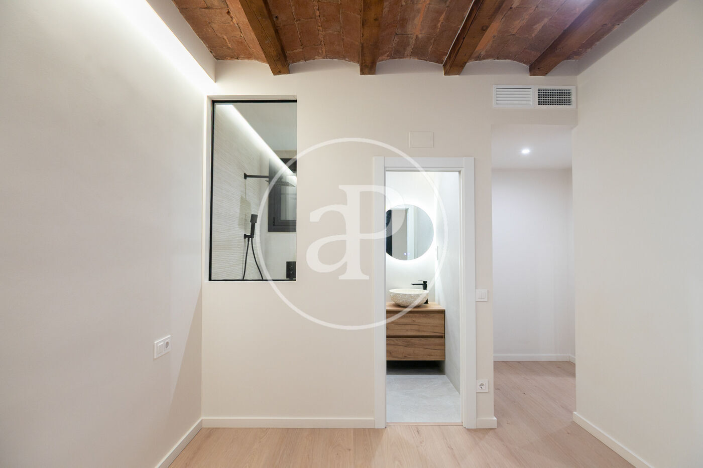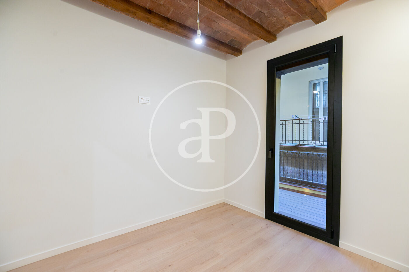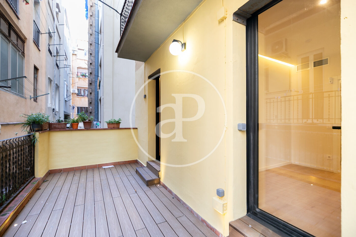El pis ha estat completament reformat amb materials i acabats d’alta qualitat, cuidant cada detall. El seu disseny modern i funcional s’integra harmoniosament amb el caràcter original de l’habitatge, destacant els sostres alts amb volta catalana. Té una superfície de 71 m², a més d’una agradable terrassa interior d’aproximadament 15 m².