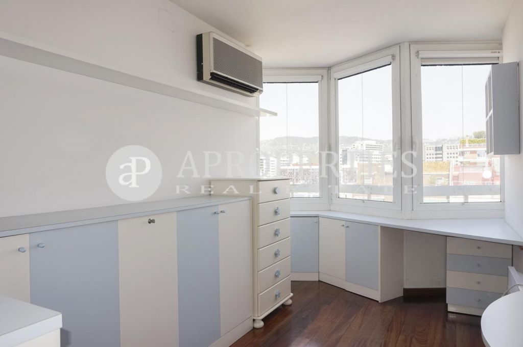Gran casa àmplia i molt lluminosa, amb espectaculars vistes de la ciutat, situada al barri de Les Corts, amb facilitats de transport i accés a múltiples comerços de la zona, compta amb 135m². La zona de dia disposa de rebedor, ampli saló menjador amb sortida a la terrassa de 12m² amb excel·lent orientació, cuina equipada amb office i zona d'aigües. La zona de nit consta de tres dormitoris i dos banys complets. L'habitatge compta amb terres de parquet, calefacció i aire condicionat, servei de conserge i una plaça de pàrquing a la mateixa finca. Es lloga amb o sense mobles. disponibilitat immediata