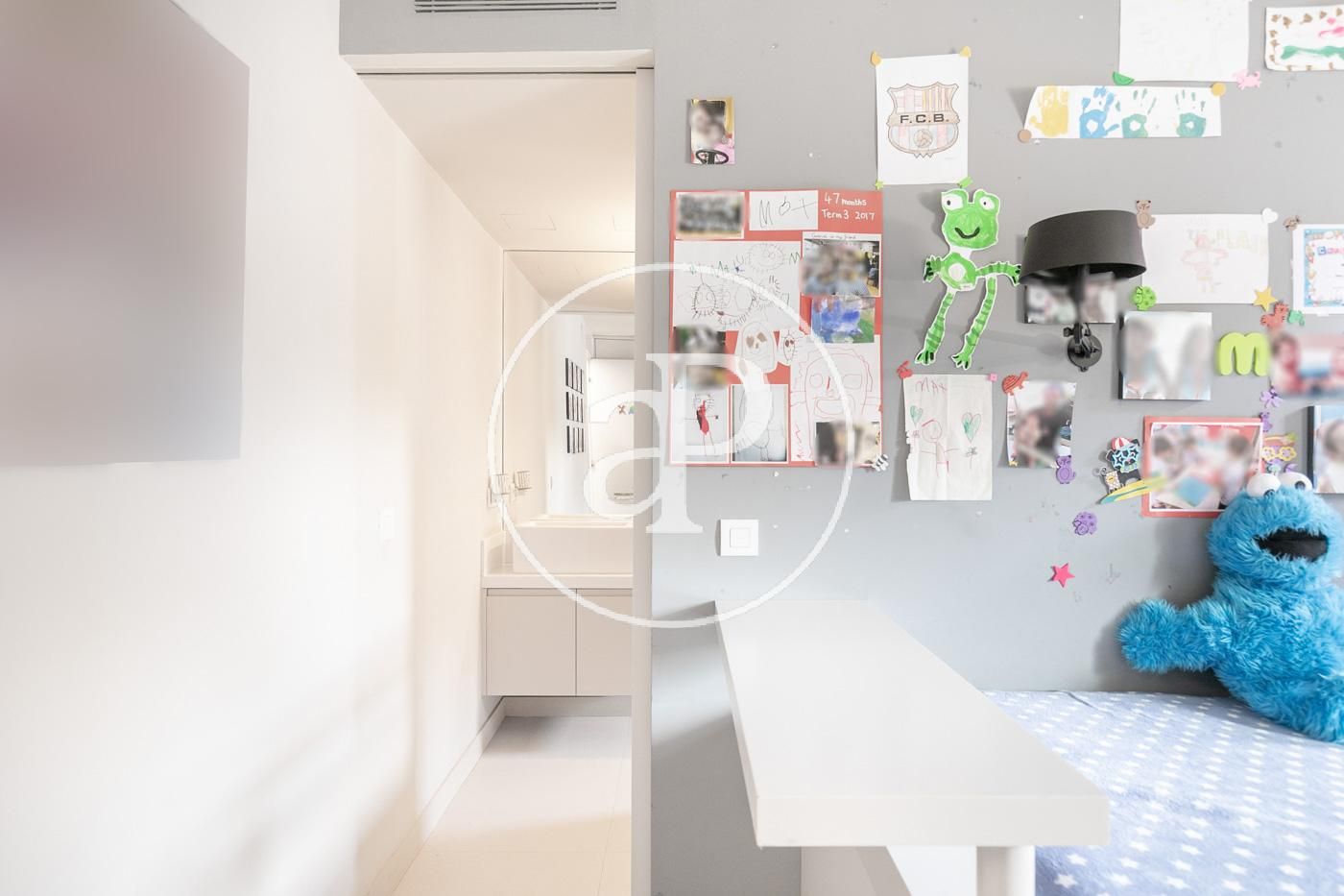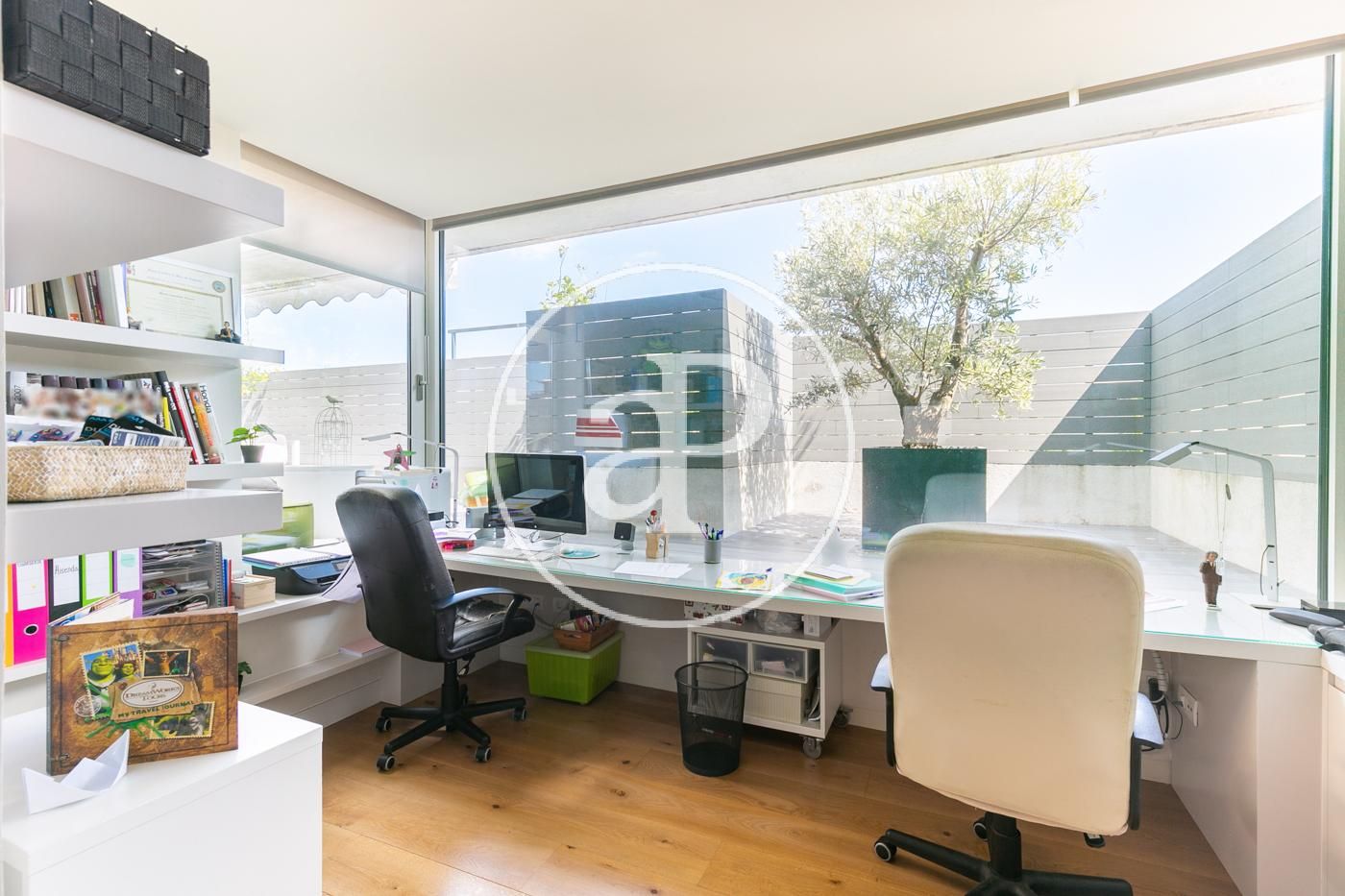 Espectacular àtic dúplex amb piscina particular i vistes al mar i al Tibidabo. Situat al barri de Tres Torres/Bonanova, consta de 278 m² d’habitatge i 190 m² de terrassa. Reformada íntegrament el 2015 amb acabats d’alta gamma i control per domòtica de tots els mecanismes.