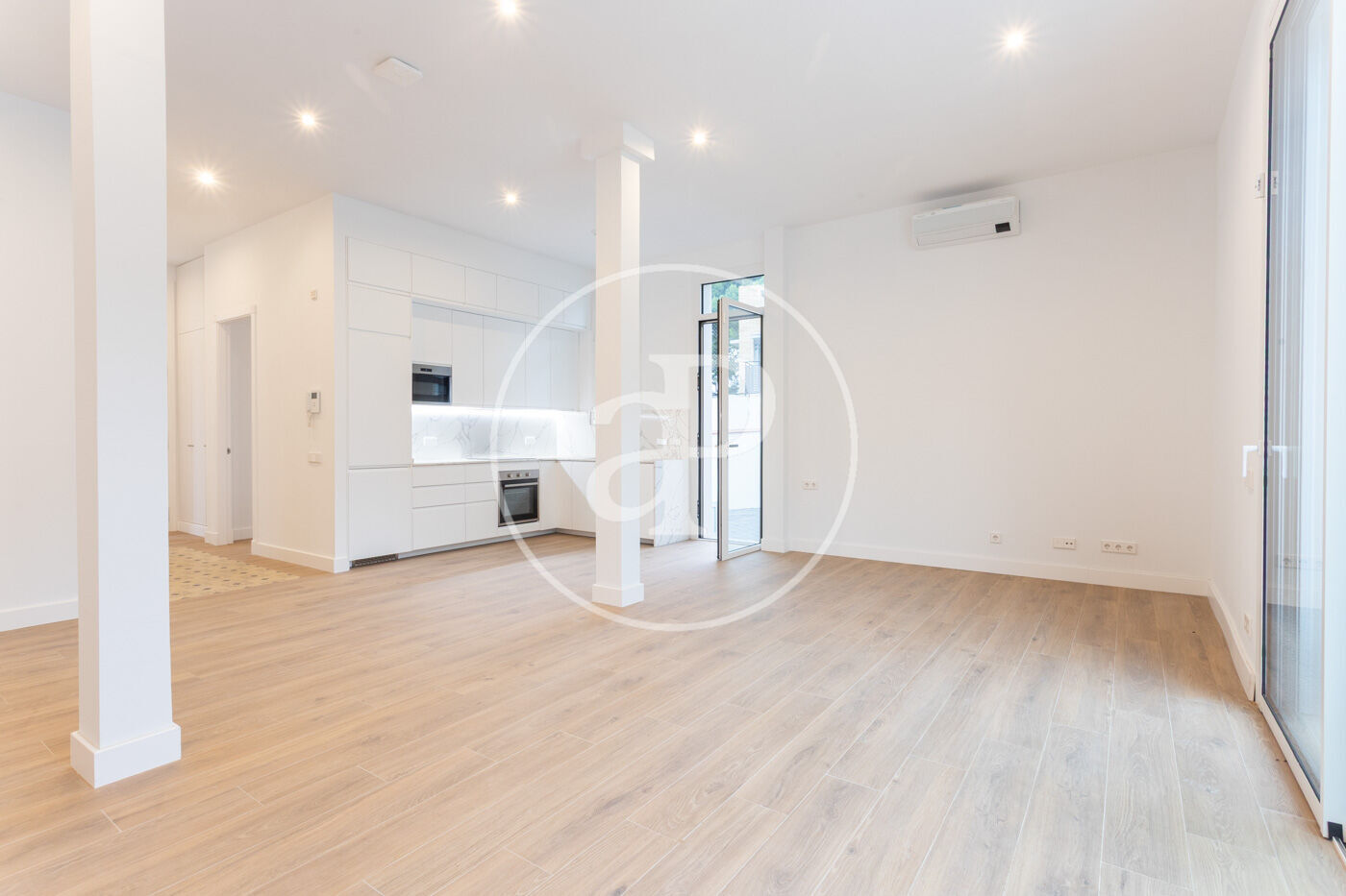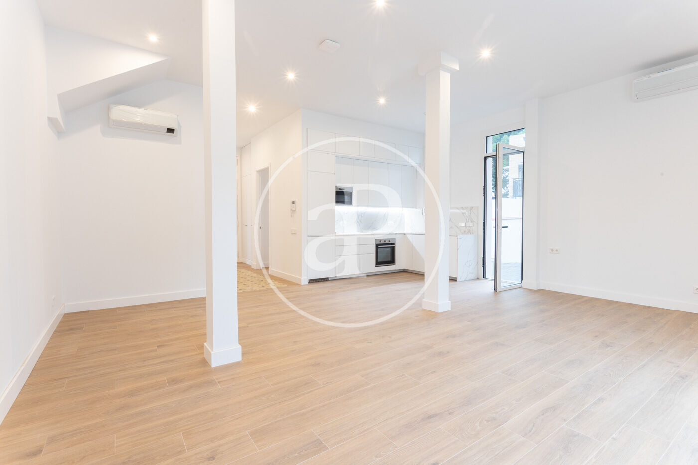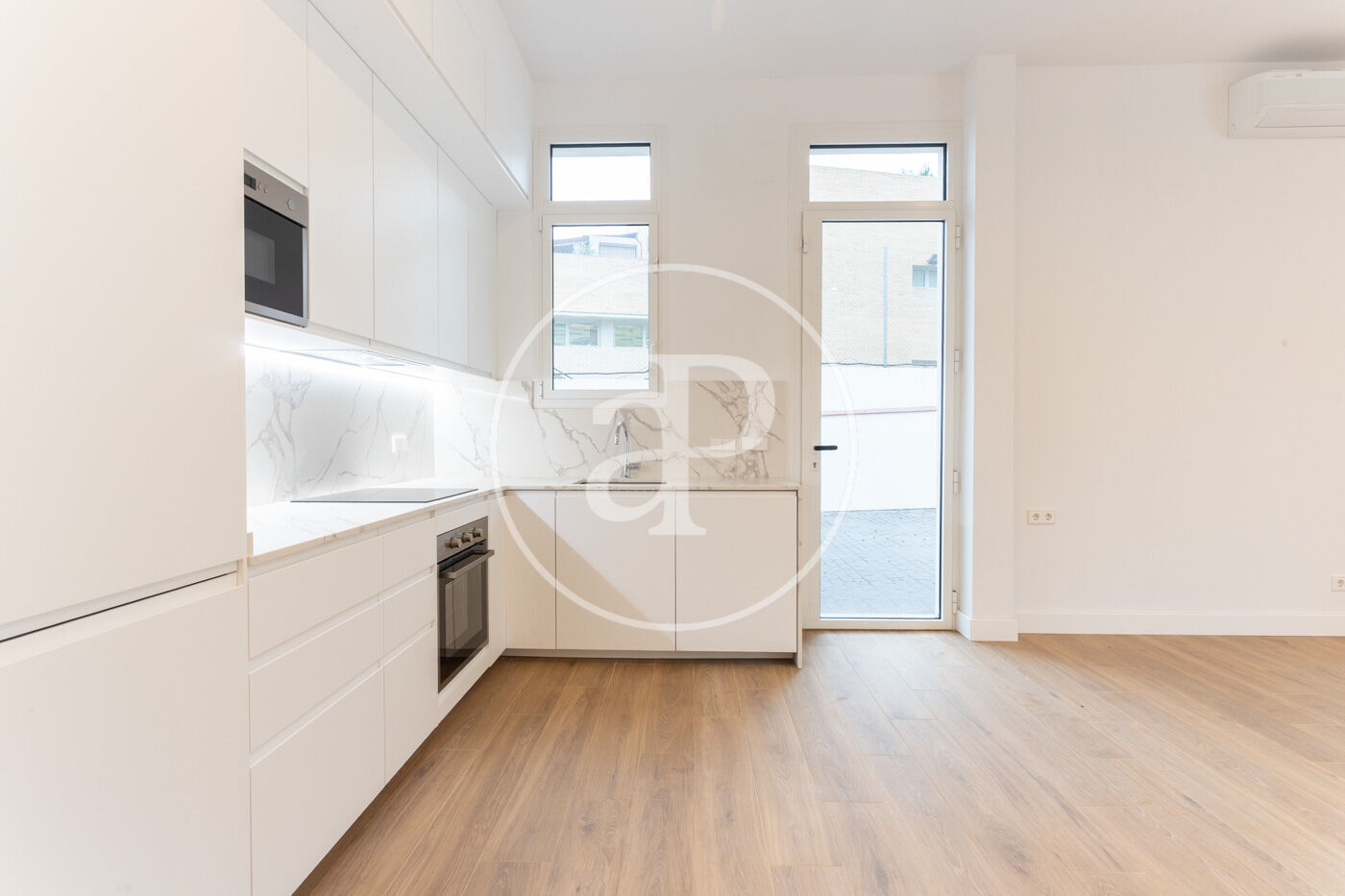 Calefacció i aire condicionat per splits, sòl porcelànic imitació parquet i fusteria d’alumini.