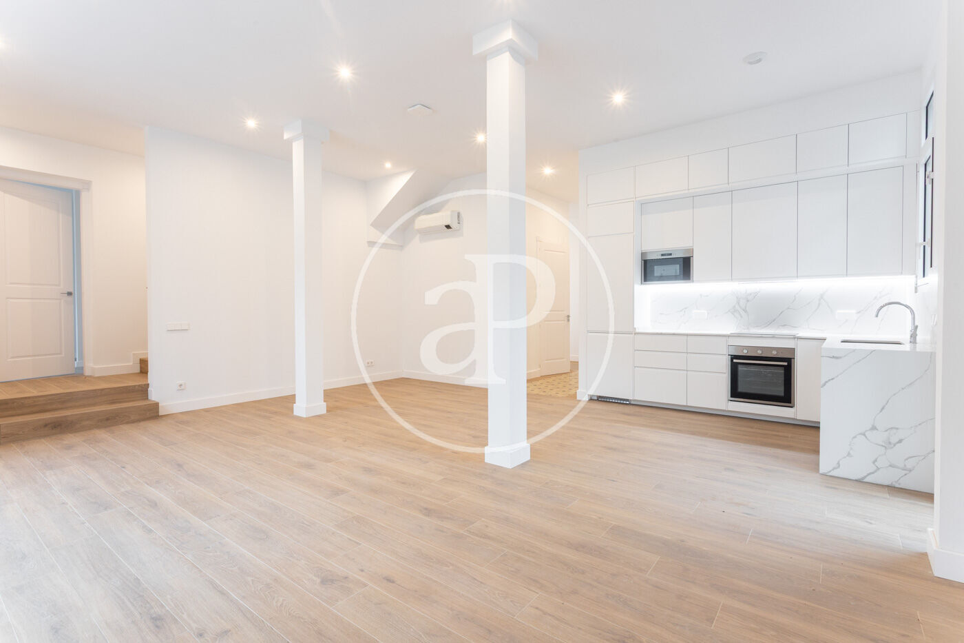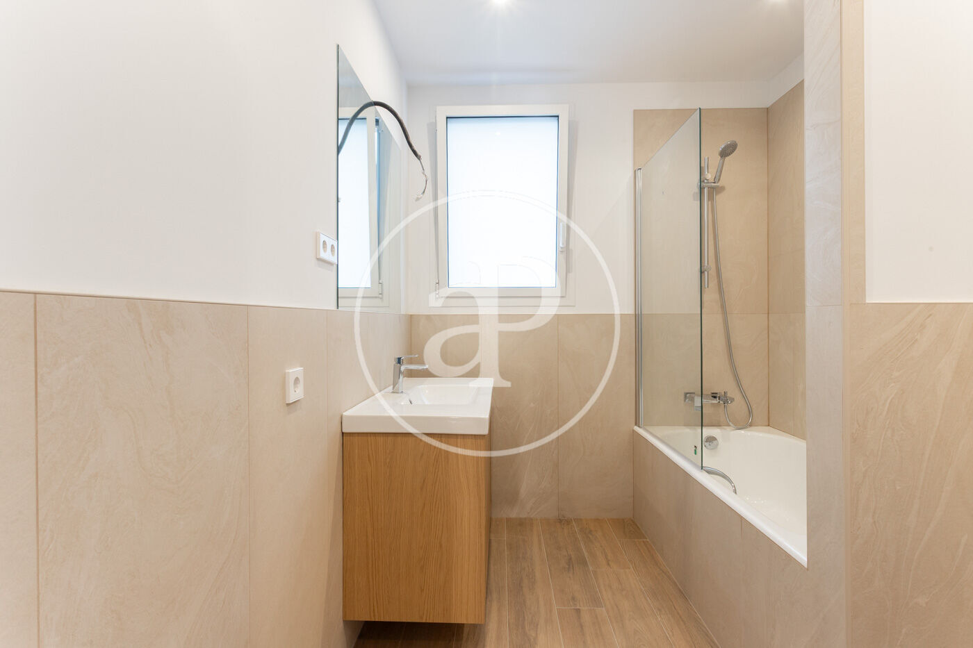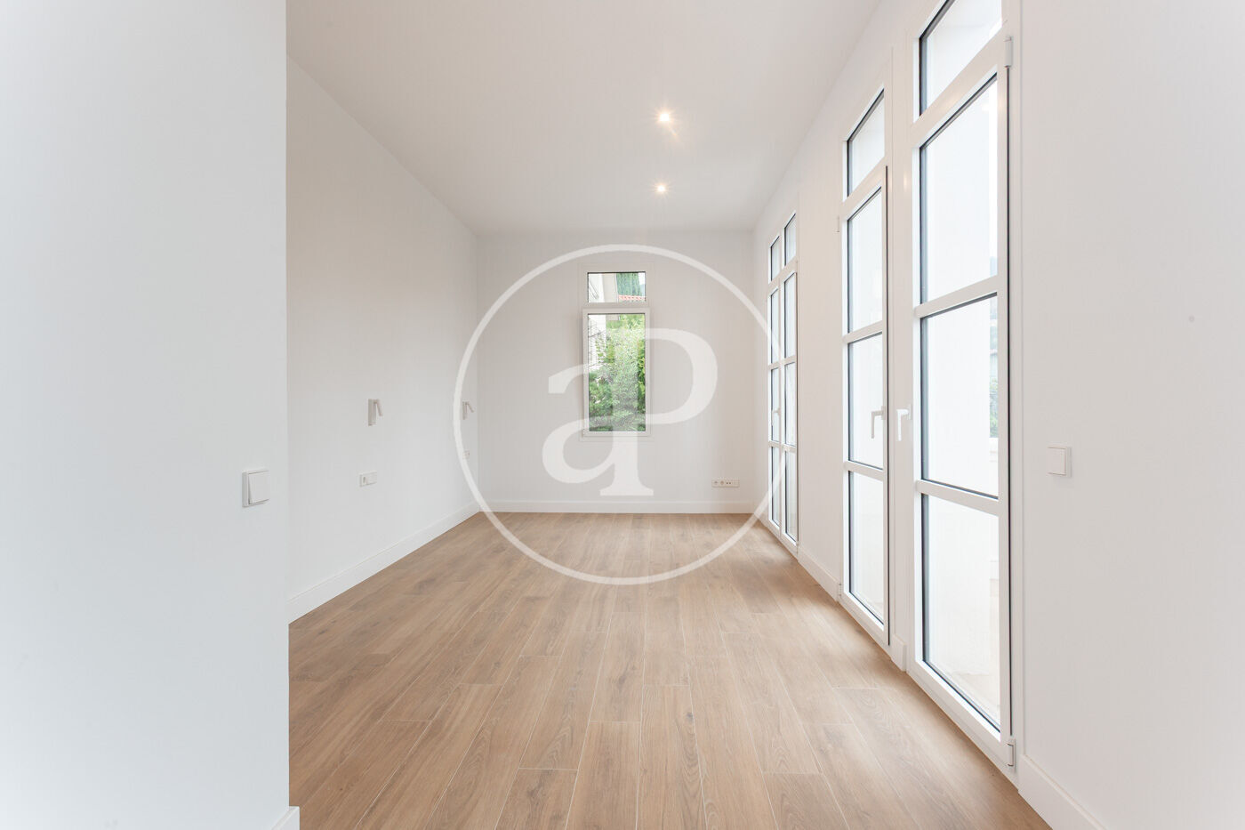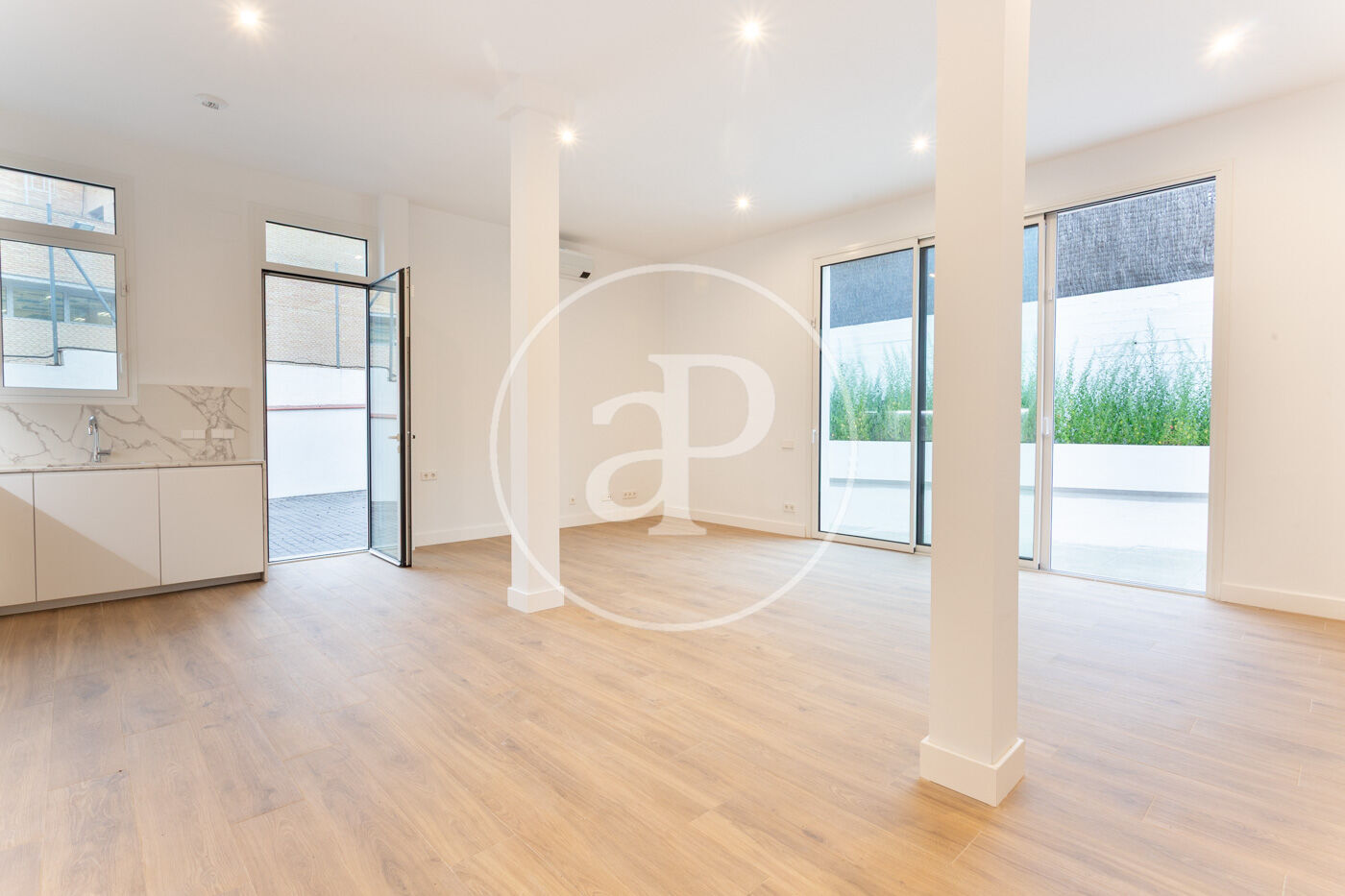 Calefacció i aire condicionat per splits, sòl porcelànic imitació parquet i fusteria d’alumini.