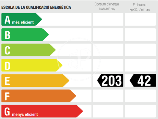 Més eficient Menys eficient Qualificació energètica Consum energia Kw h/m² any Emissions Co/m² any 203.00 42.00
