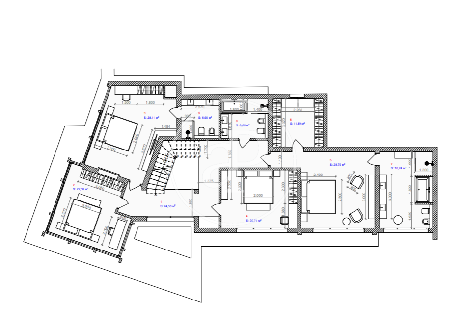 A la zona de nit, situada a la segona planta, trobem el dormitori principal en suite amb vestidor, bany privat i accés a una terrassa amb vistes al jardí i al mar, una altra junior suite i dues habitacions dobles que comparteixen un bany.