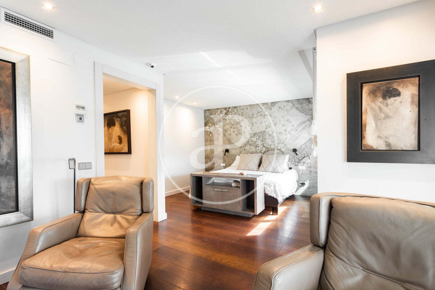 Suite principal amb bany complet, vestidor, sala de TV i accés a una terrassa privada de 11 m².