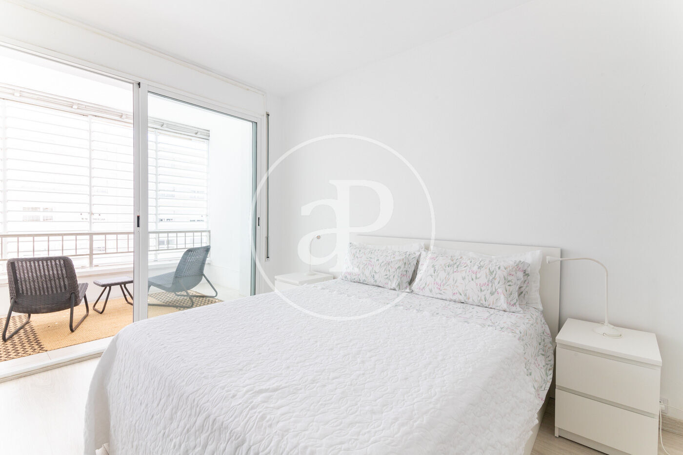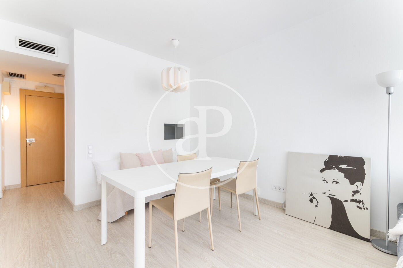És una planta 7a, tot exterior amb grans finestrals a la façana principal de l'edifici, molt lluminós i assolellat. Compta amb servei de recepció 24 hores, cafeteria, restaurant i altres serveis opcionals com a servei de neteja, bugaderia, gimnàs. Mesura *50m2 aprox.