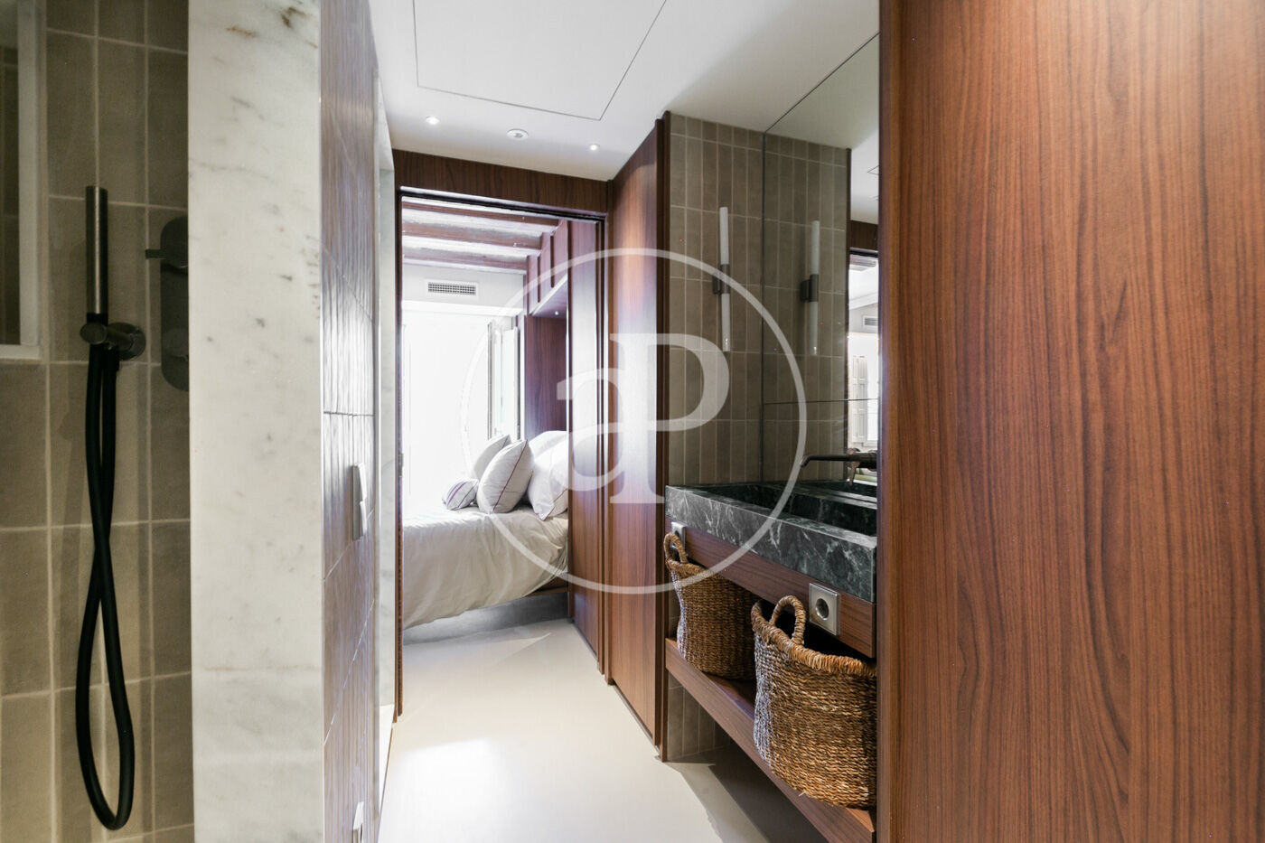 Es tracta d’un concepte d’apartaments convertibles, amb un sistema de panells corredissos que permet transformar un únic espai en un apartament amb dos dormitoris dobles en suite amb llits ocultables en armaris a mida que abasten tot l’apartament. El nucli central conté la cuina i el bany. La cuina està totalment equipada amb electrodomèstics integrats (rentavaixelles, forn, forn-microones, cafetera i nevera), aixetes Zucchetti i taulell de la marca Porcelanosa; el bany està dividit en tres peces independents amb accés doble des de cada dormitori.