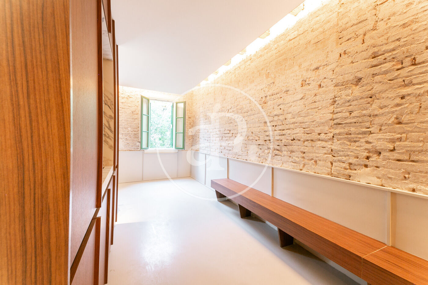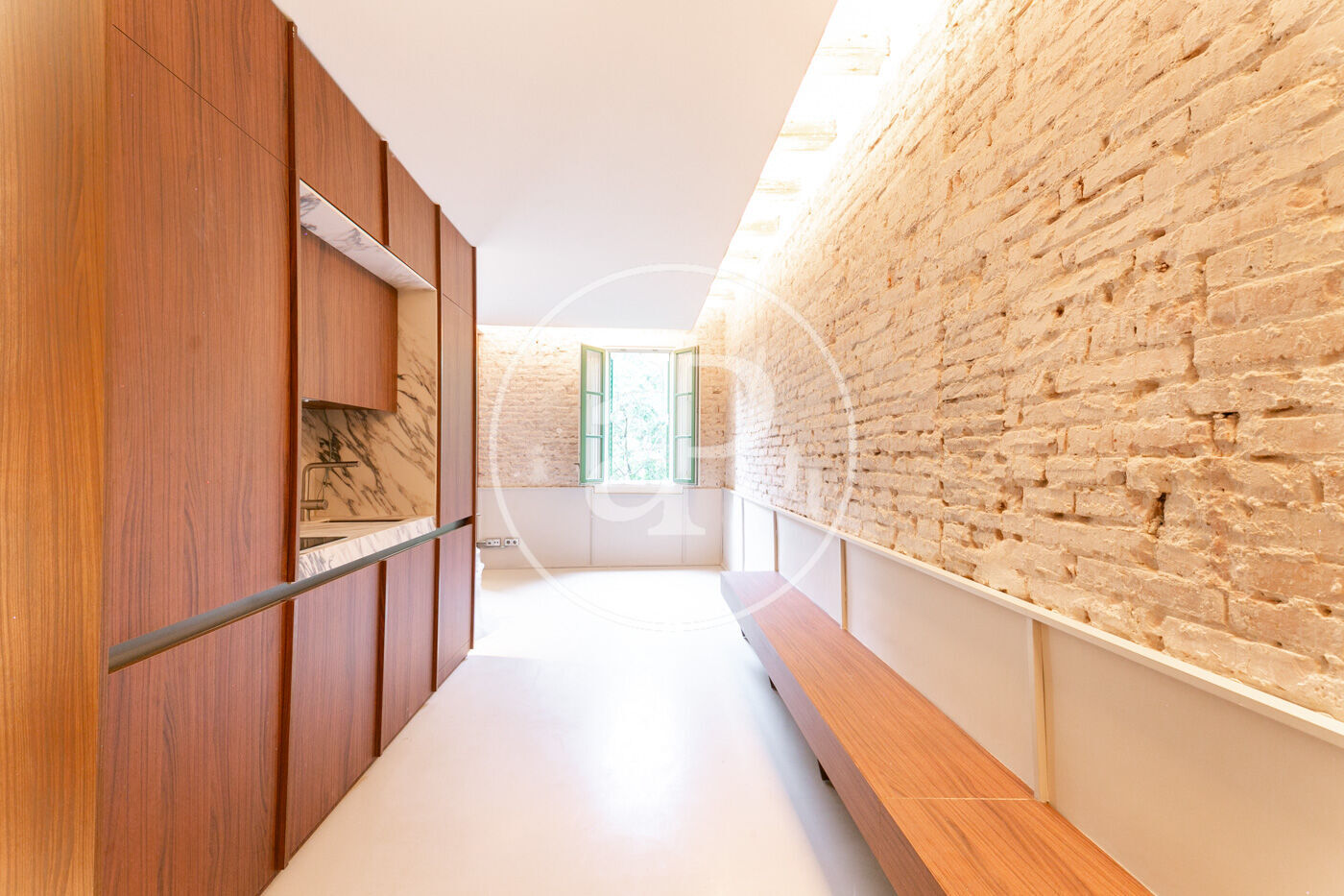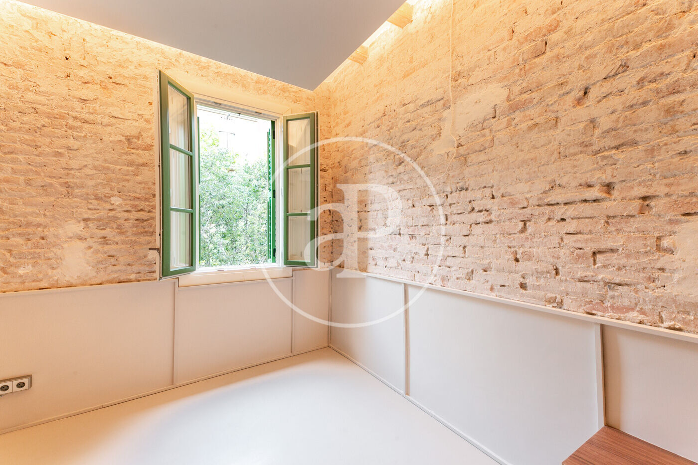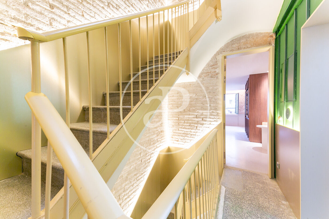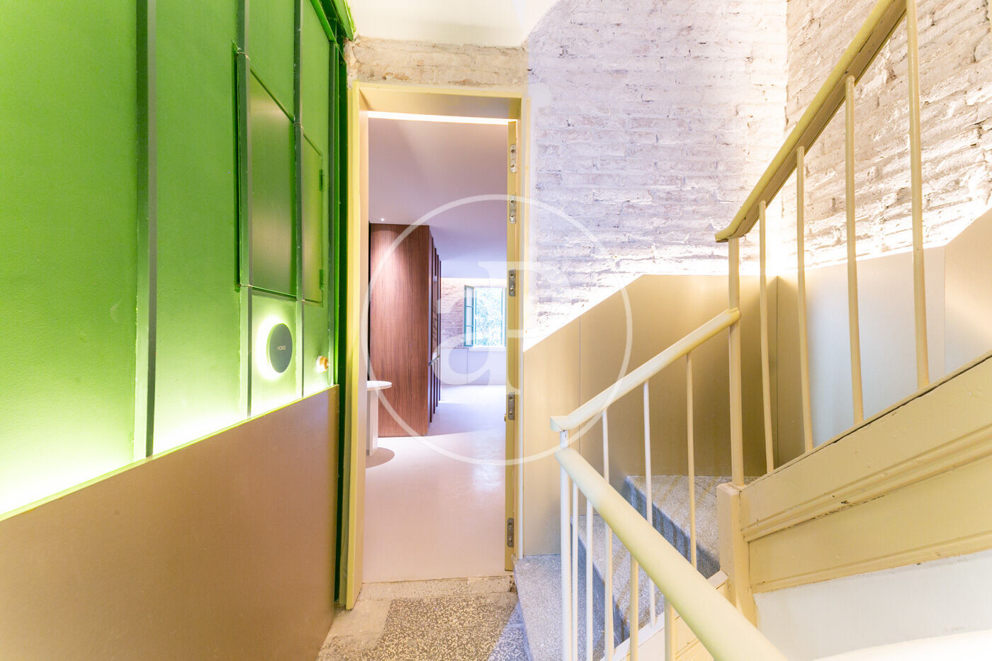 Edifici d’habitatges a l’icònic barri de Sant Antoni – Eixample de Barcelona. Finca clàssica de 1900 totalment renovada amb ascensor i zones comunitàries. Es tracta d’un edifici format per planta soterrani, planta baixa, 7 plantes pis i coberta. Un total de 12 apartaments i dos lofts que es lliuren totalment moblats i equipats, llestos per entrar-hi a viure.