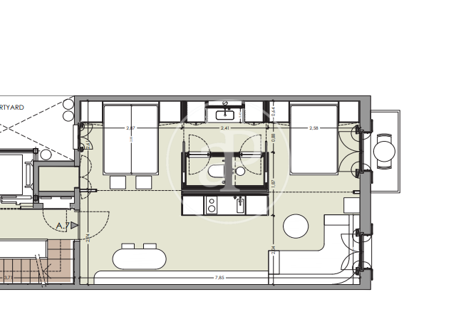 Un concepte d’apartaments convertibles amb un sistema de panells corredissos que permet transformar un únic espai en un apartament de dos dormitoris dobles en suite amb llits ocultables en armaris a mida, que ocupen tot l’ample de l’habitatge. El nucli central conté la cuina i el bany. La cuina està totalment equipada amb electrodomèstics integrats (rentavaixelles, forn, forn-microones, cafetera i frigorífic), aixeteria Zucchetti i encimera de la marca Porcelanosa; el bany està dividit en tres peces independents amb doble accés des de cada dormitori.