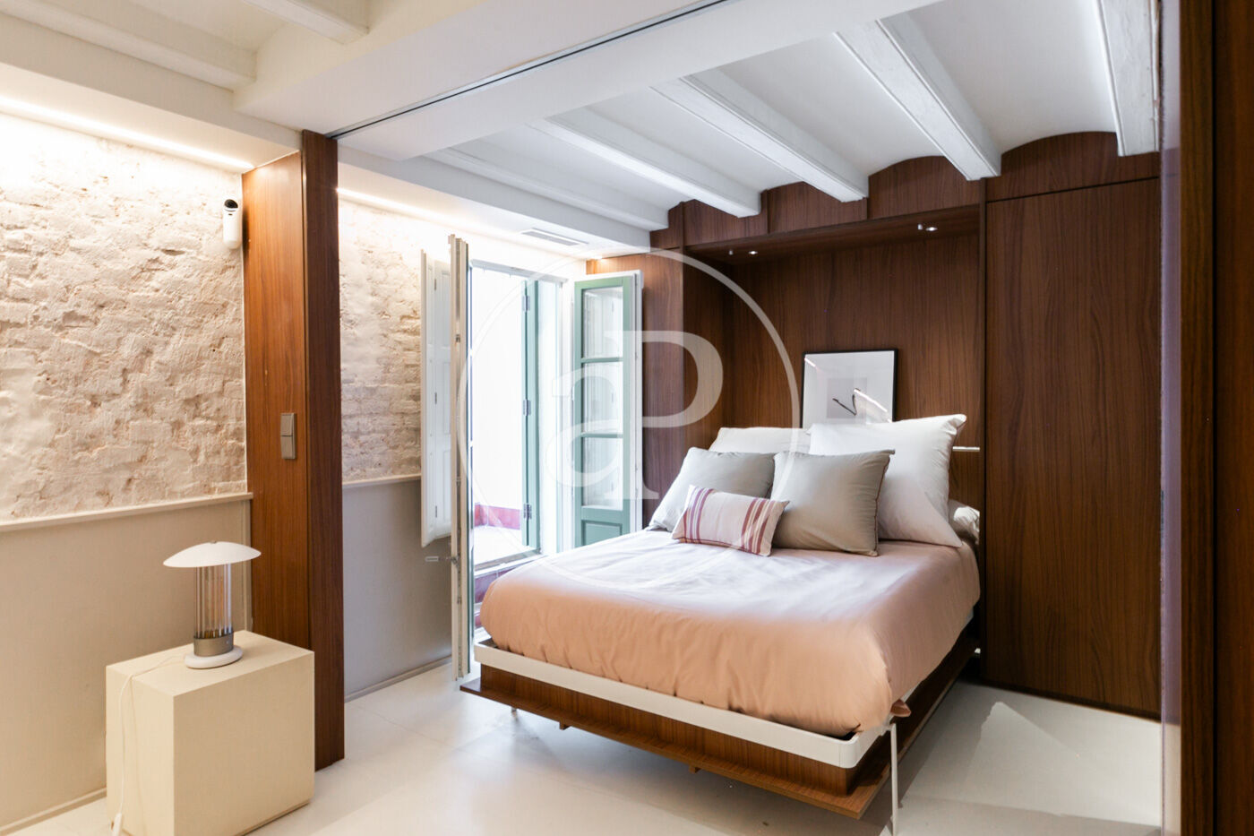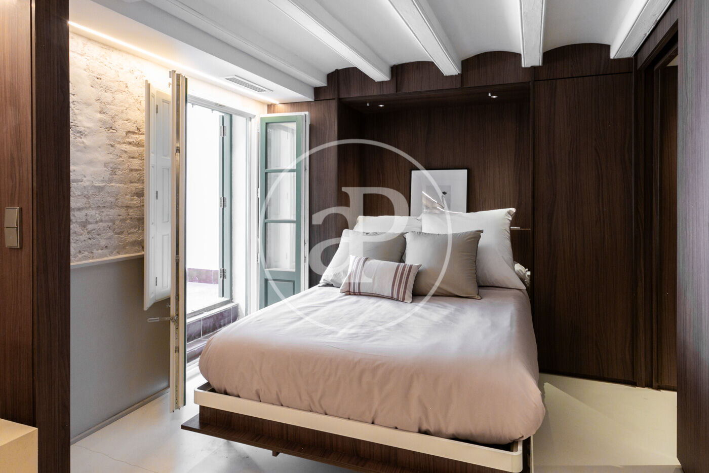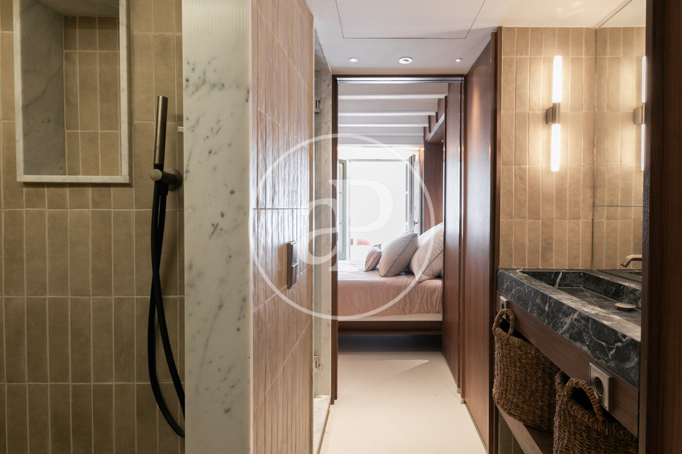 Un concepte d’apartaments convertibles dotats amb un sistema de panells corredissos que permeten transformar un únic espai en un apartament de dos dormitoris dobles en suite amb llits ocultables als armaris a mida, que van d’un extrem a l’altre de l’apartament. El nucli central conté la cuina i el bany. La cuina està totalment equipada amb electrodomèstics integrats (rentavaixelles, forn, forn-microones, cafetera i frigorífic), aixeteria Zucchetti i taulell marca Porcelanosa; el bany està dividit en tres peces independents amb accés doble des de cada dormitori.
