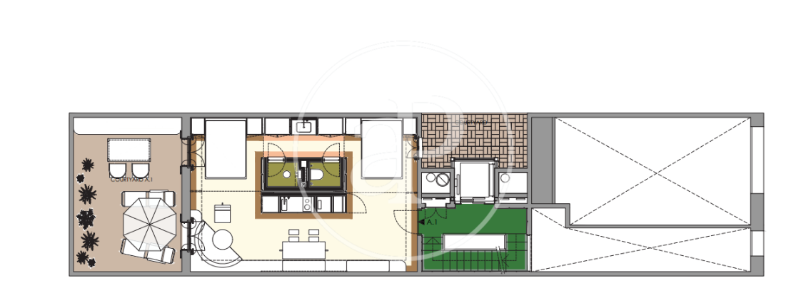 L’apartament que presentem disposa de 54 m² construïts i possibilitat d’1 o 2 dormitoris, i sortida a terrassa d’uns 20 m² orientada a pati d’illa.