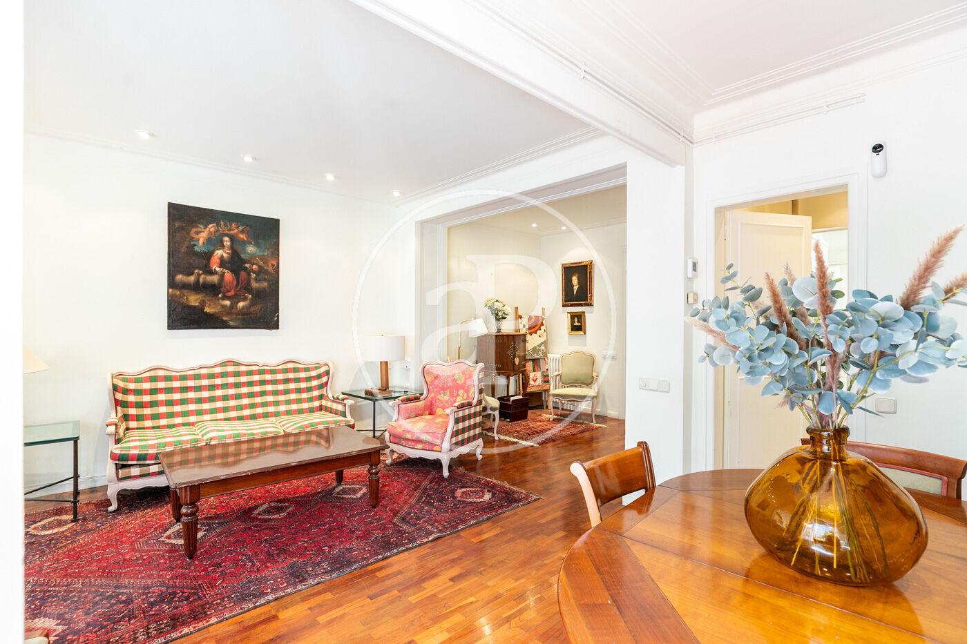 El saló-menjador és molt ampli i ple de llum natural, distribuït en tres ambients diferenciats: un menjador elegant, una lluminosa zona d’estar amb accés directe a la gran terrassa i un saló més íntim i acollidor que també connecta amb l’exterior, creant una atmosfera càlida i versàtil. Preciosos terres de fusta i una il·luminació molt acurada que generen un ambient molt acollidor.