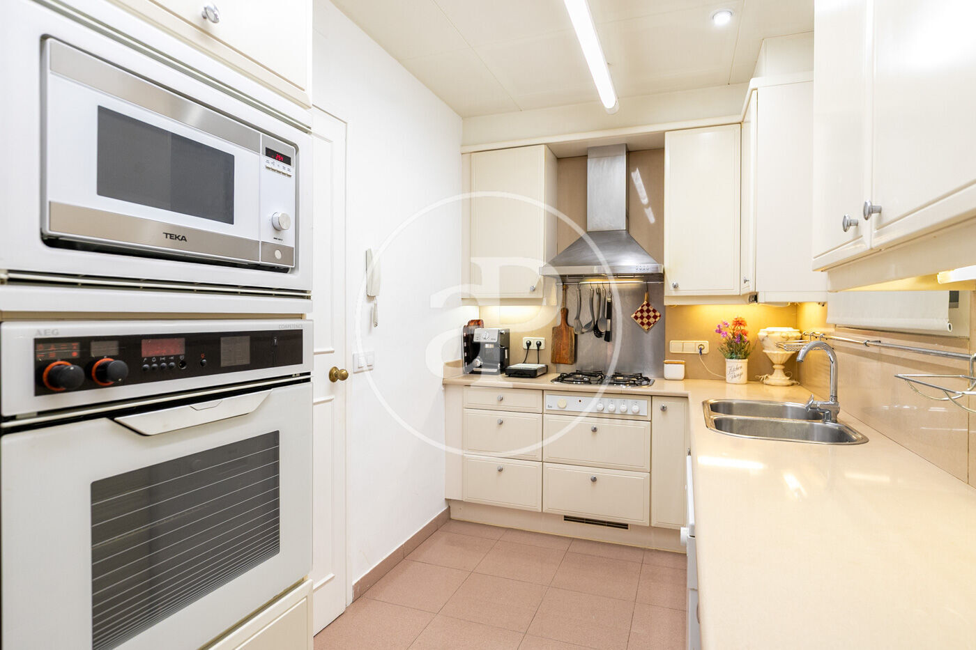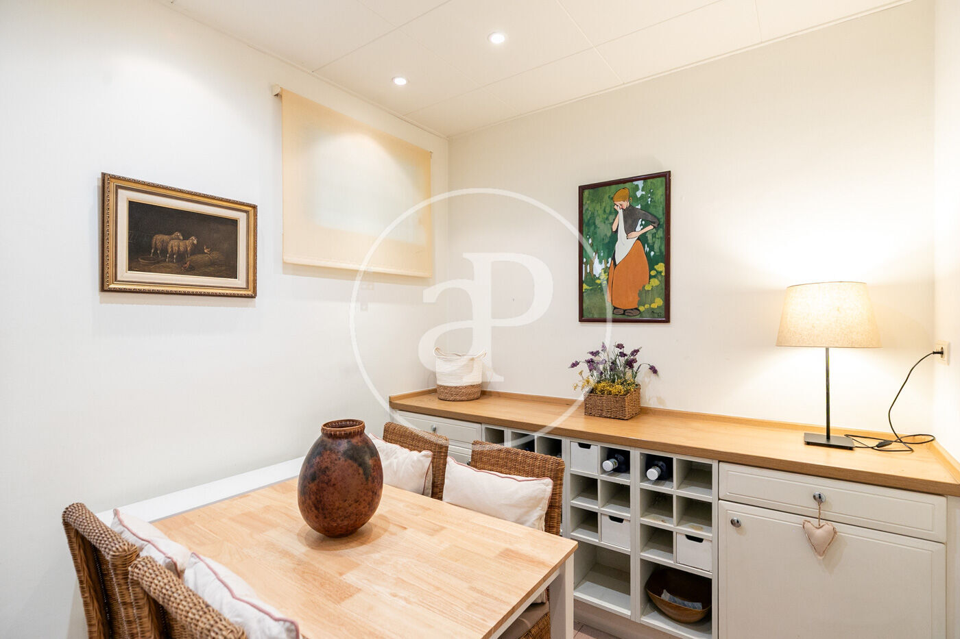 A la zona de dia, hi trobem la cuina independent amb una zona d’aigües equipada amb rentadora i assecadora, més un pati amb una galeria i un accés office amb una petita sala de menjador amb un ambient molt provençal, però alhora ben comunicada amb el saló-menjador.
