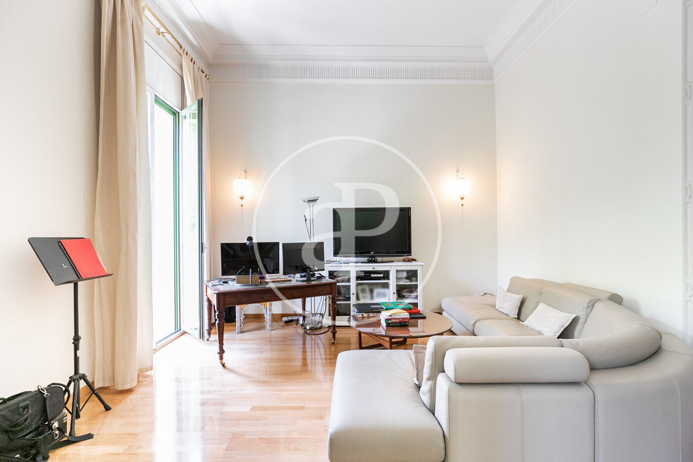 La gran feina de disseny de la reforma realitzada aprofita al màxim la llum natural a totes les estances, donant una sensació d'amplitud a tots els espais, amb sostres de 4.7m d'alçada, convertint aquest pis en una peça única a la zona alta de Barcelona.